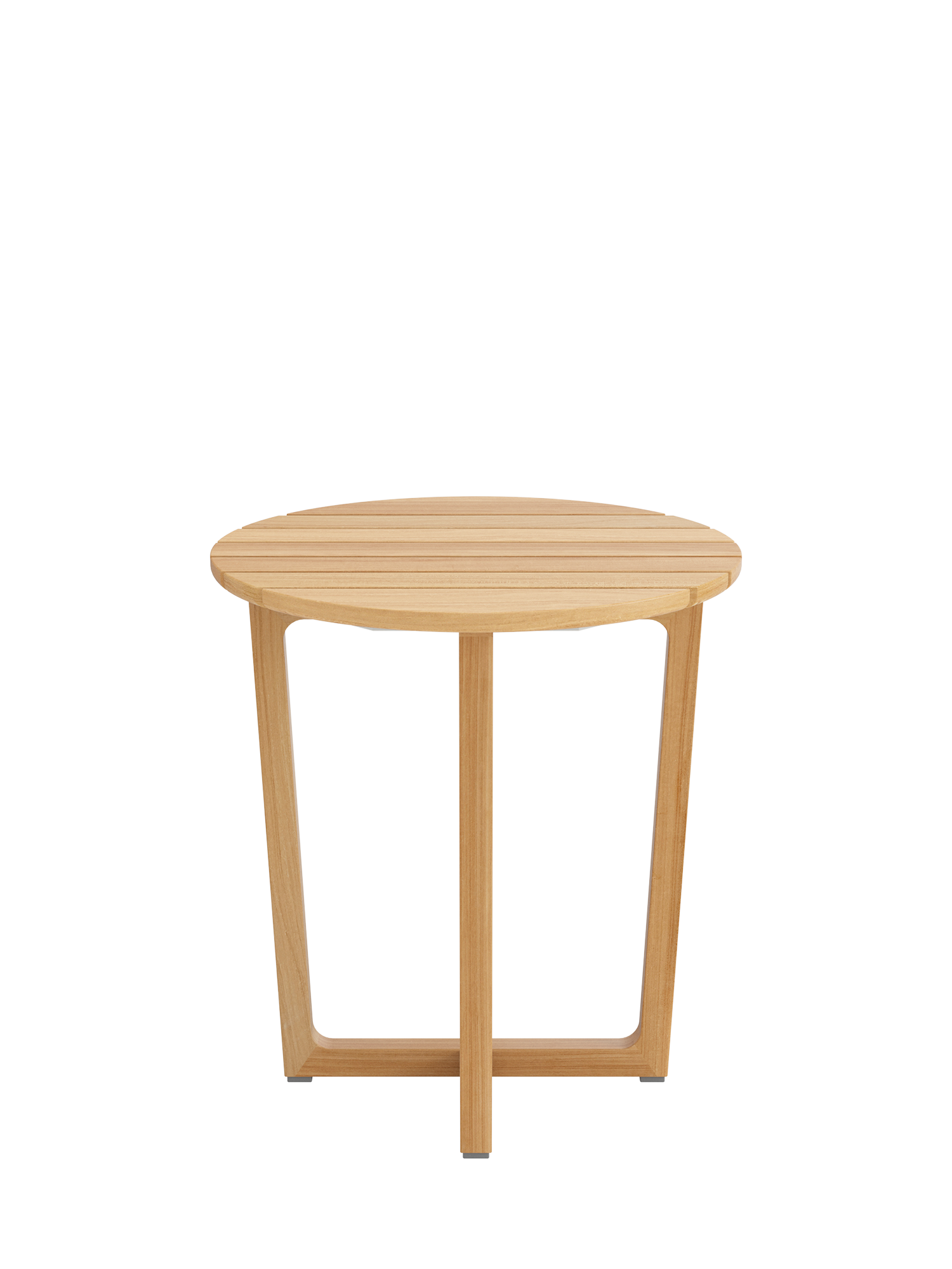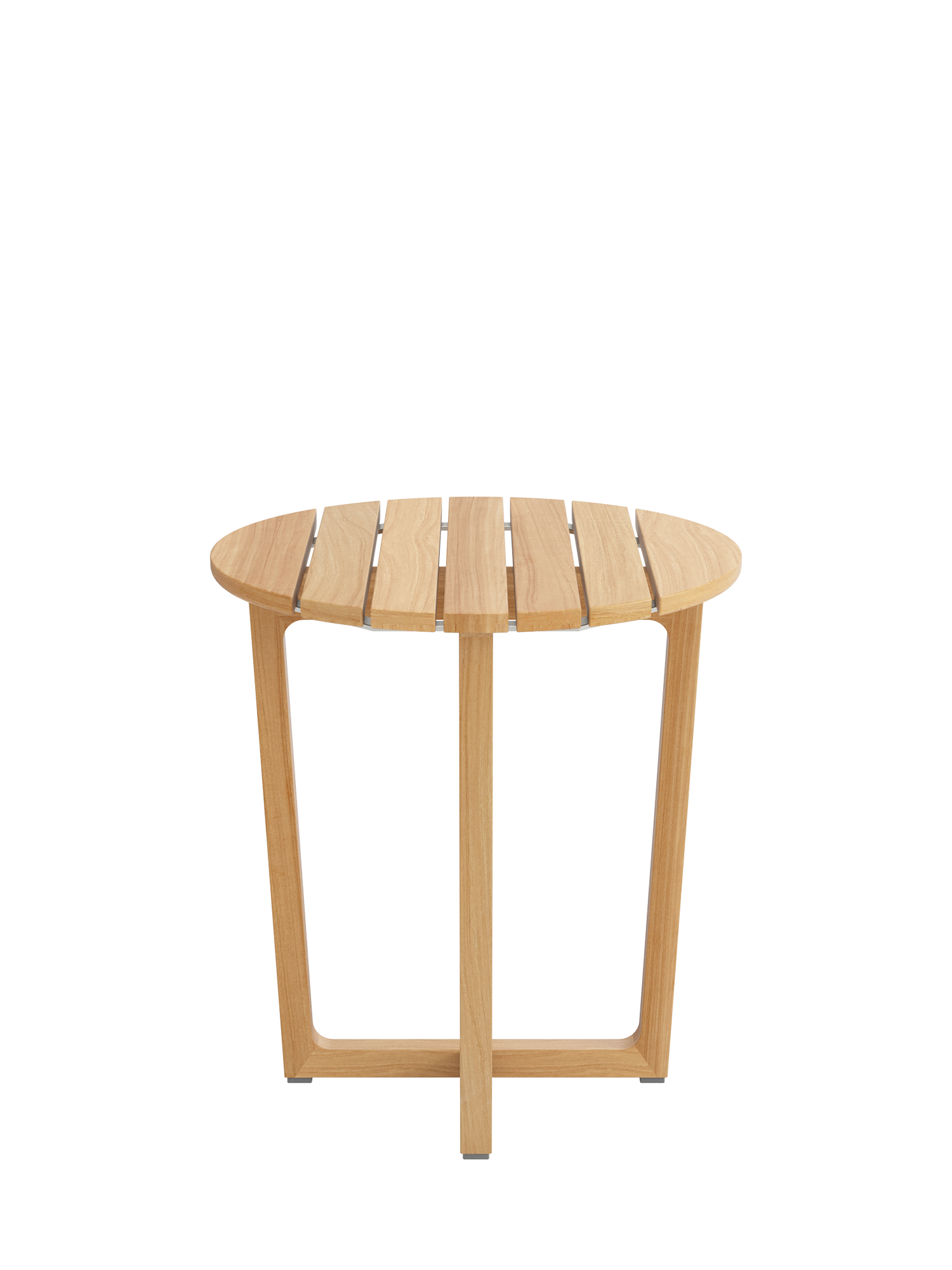 Teakholzwangen und eine an der Unterseite sanft gerundete Platte aus hochwertigen Teakleisten prägen das Design der Benton Beistelltische. Sie sind schnell dazugestellt und halten Snacks und Lektüre direkt neben der Sitzgruppe bereit.