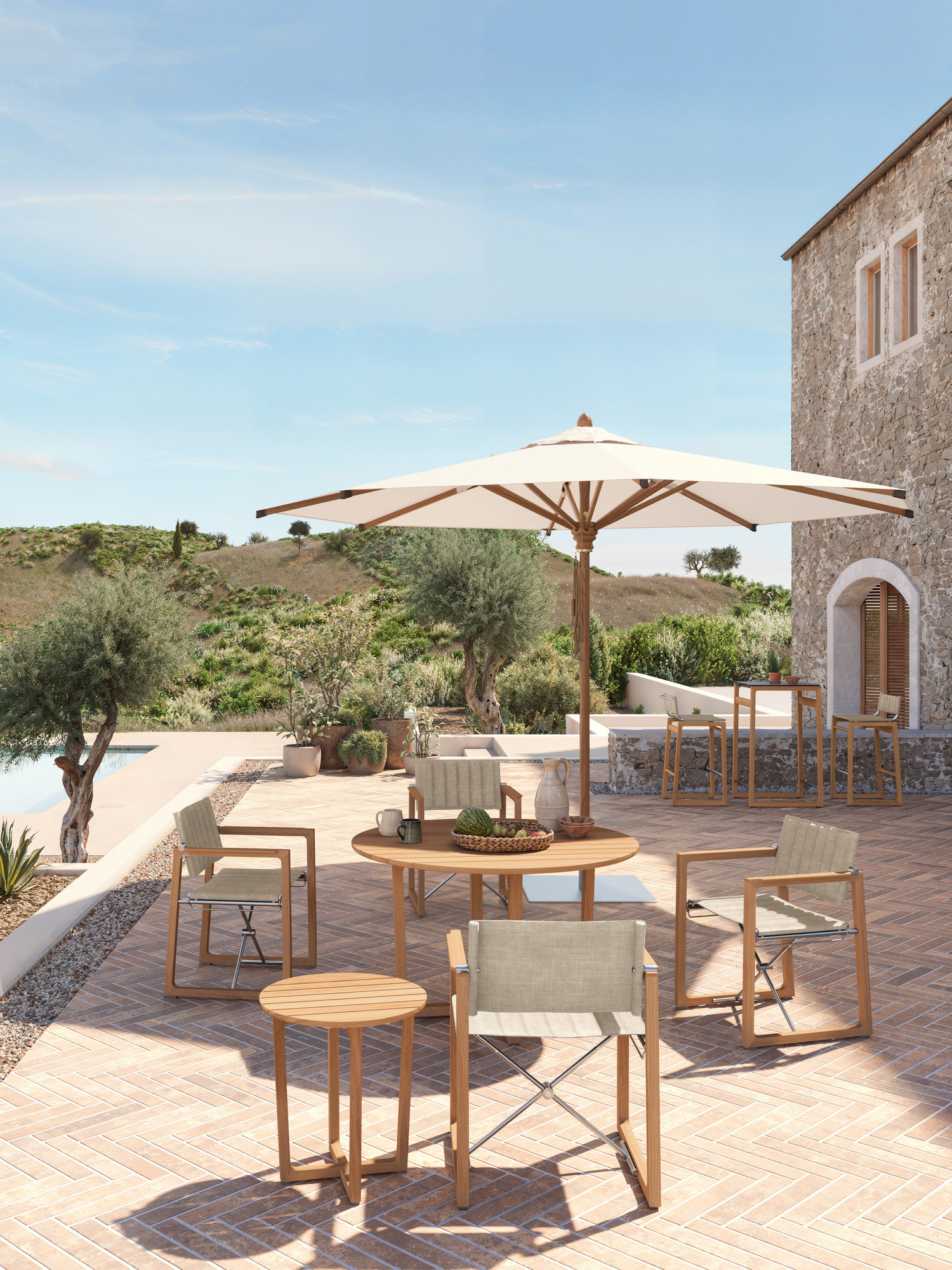 Die runden Tische bestehen aus massivem und aufwendig verarbeitetem Plantagenteakholz und sind in zwei Grössen erhältlich. Mit ihrer leichten und modernen Formgebung passen sie nicht nur zu den Lounge Möbeln der Benton Serie, sondern lassen sich harmonisch auch mit weiteren Teakserien sowie mit Bänken oder Liegen kombinieren.