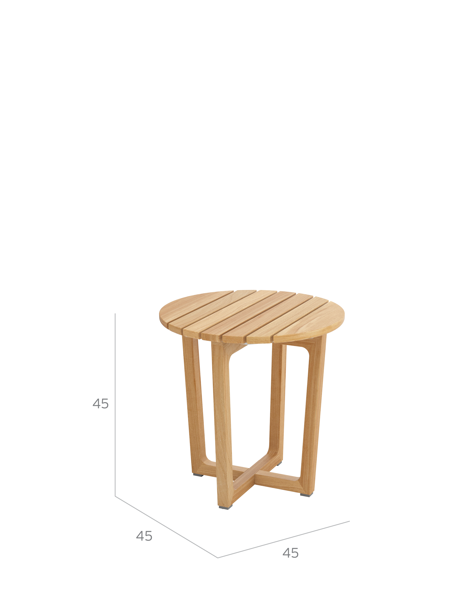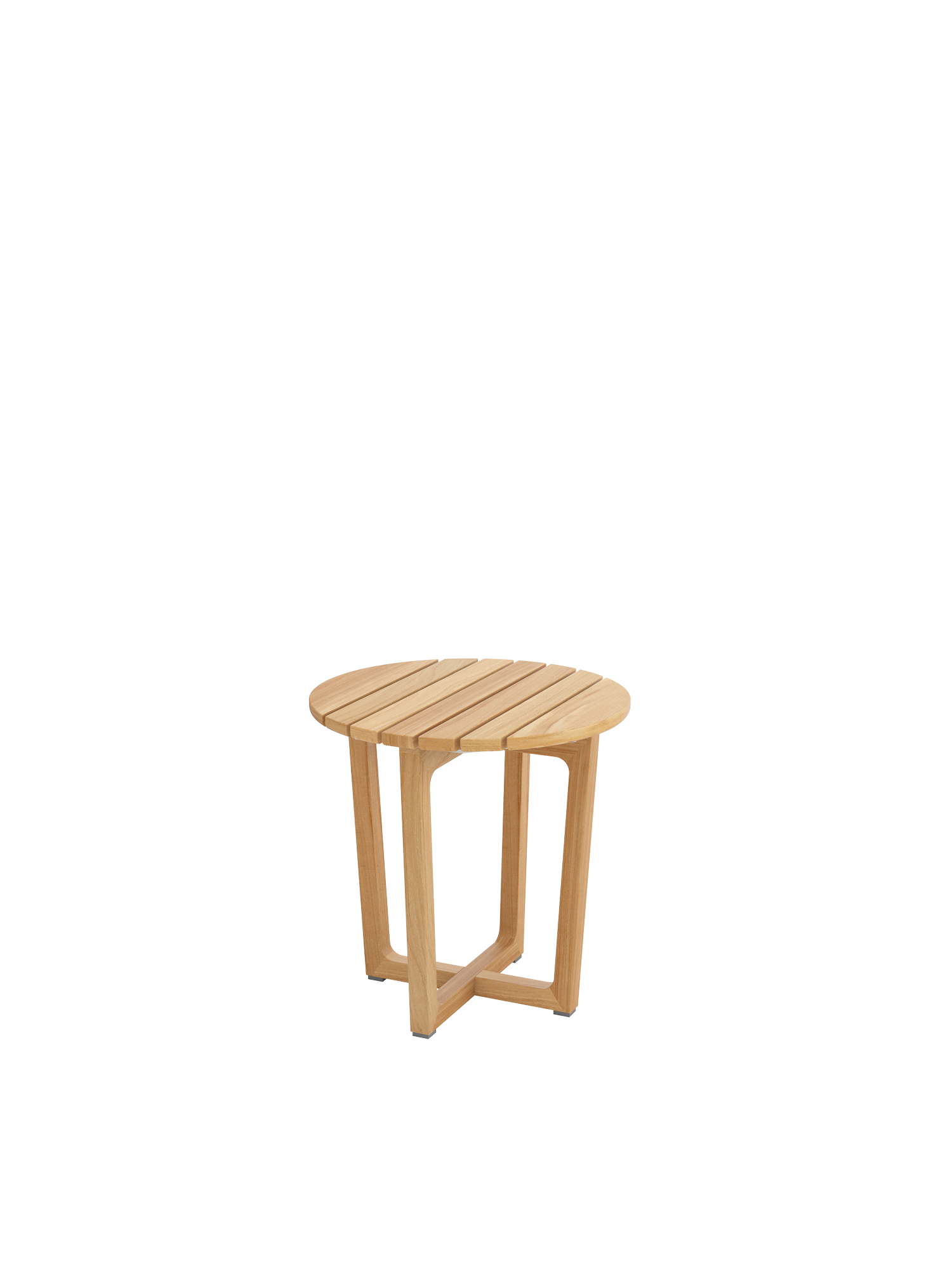 Teakholzwangen und eine an der Unterseite sanft gerundete Platte aus hochwertigen Teakleisten prägen das Design der Benton Beistelltische. Sie sind schnell dazugestellt und halten Snacks und Lektüre direkt neben der Sitzgruppe bereit.