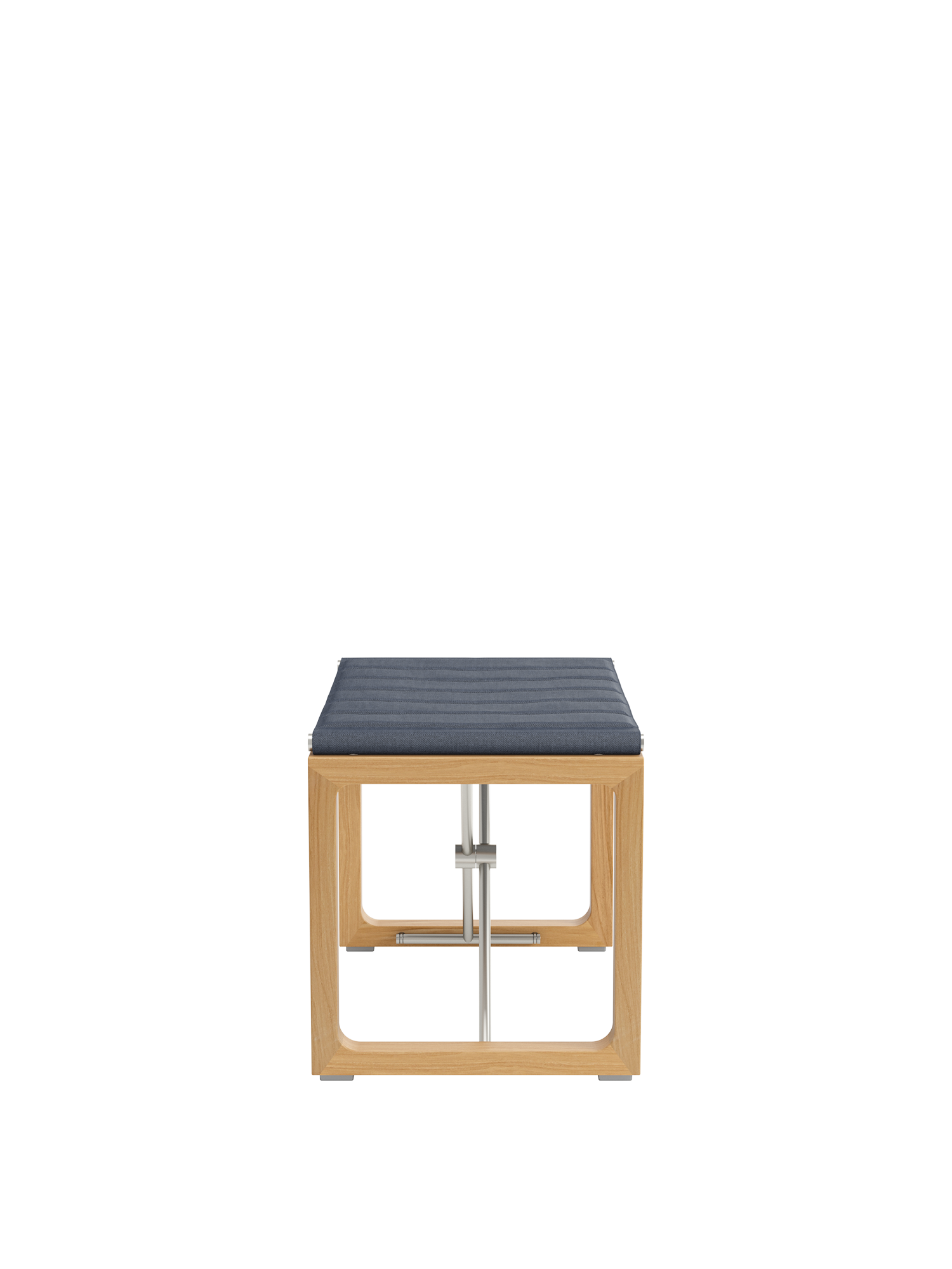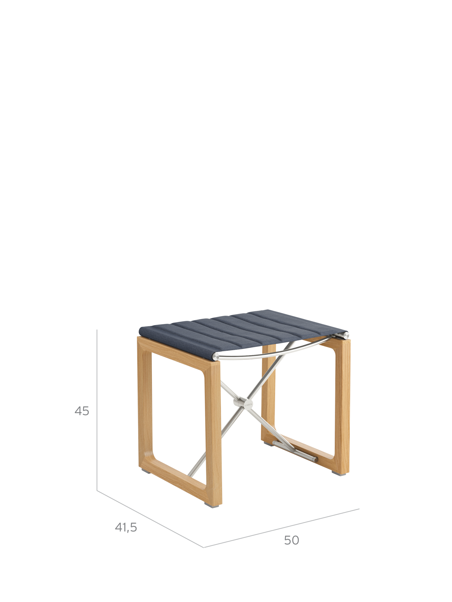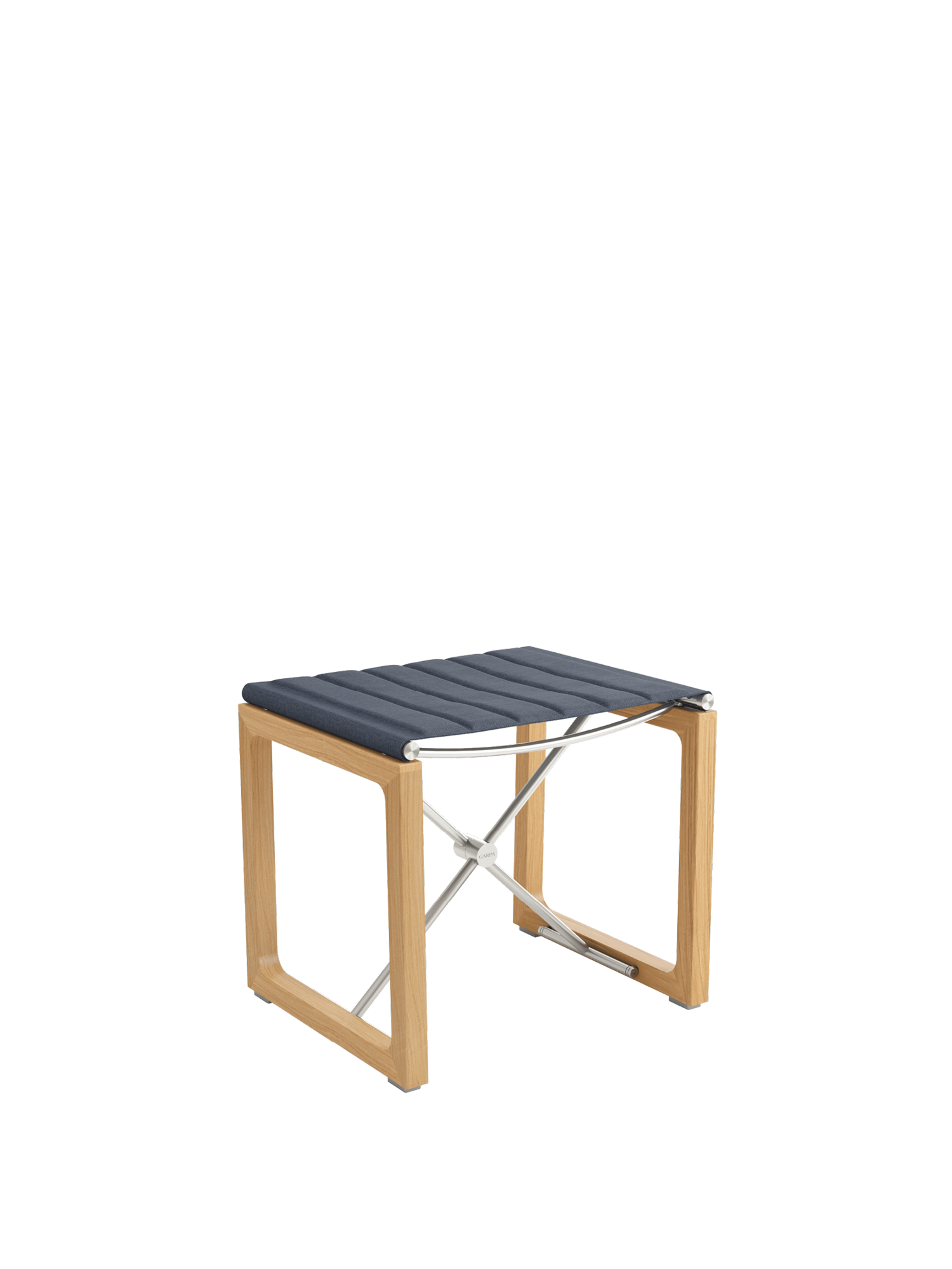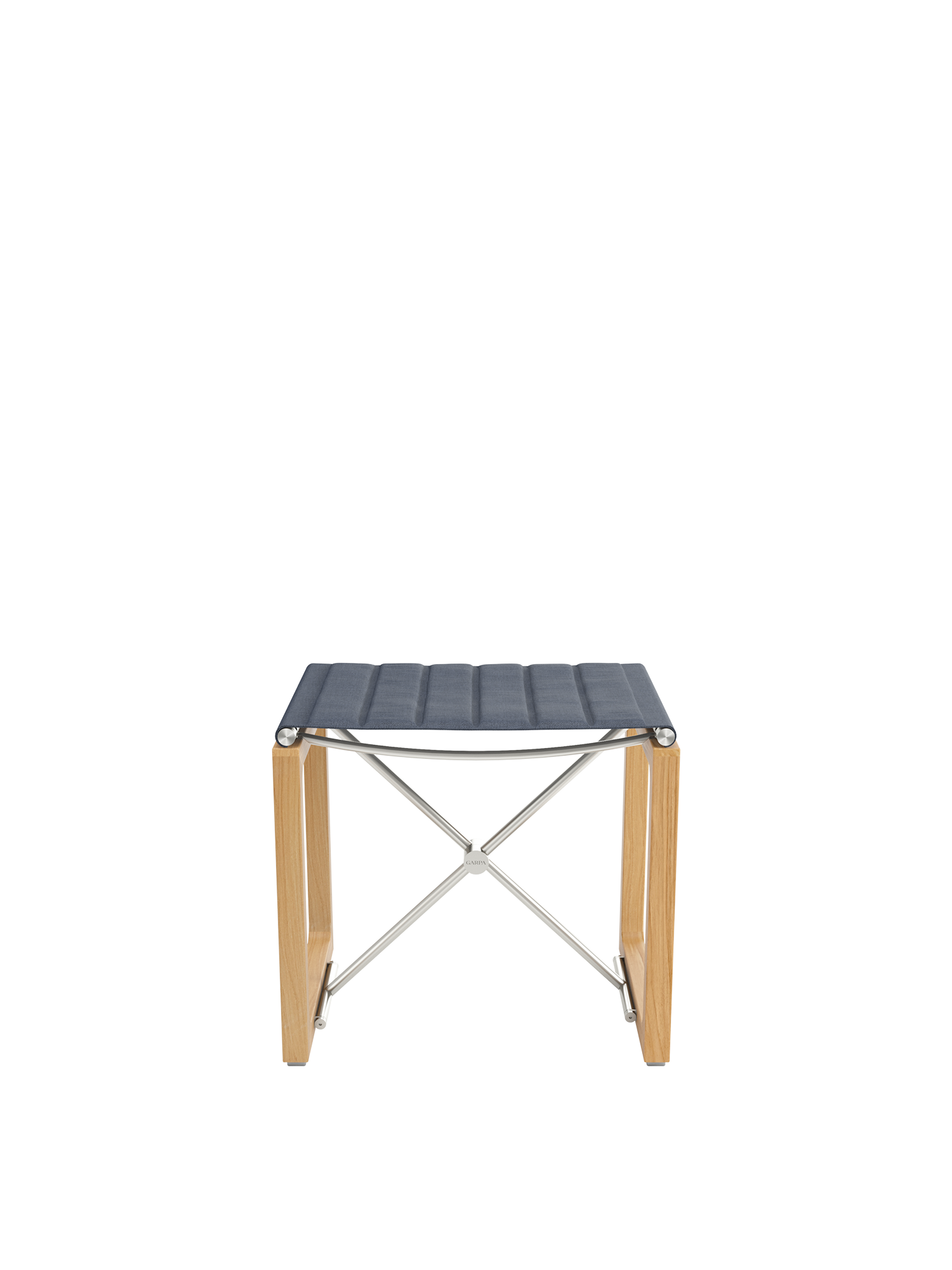 Der Hocker zur Benton Serie verlängert den Armlehnstuhl und entspannt angenehm die Beine. Die Bespannung seiner Sitzfläche aus schnell trocknendem Polymergewebe in den Farbtönen Steingrau oder Rauchblau ist besonders pflegeleicht.