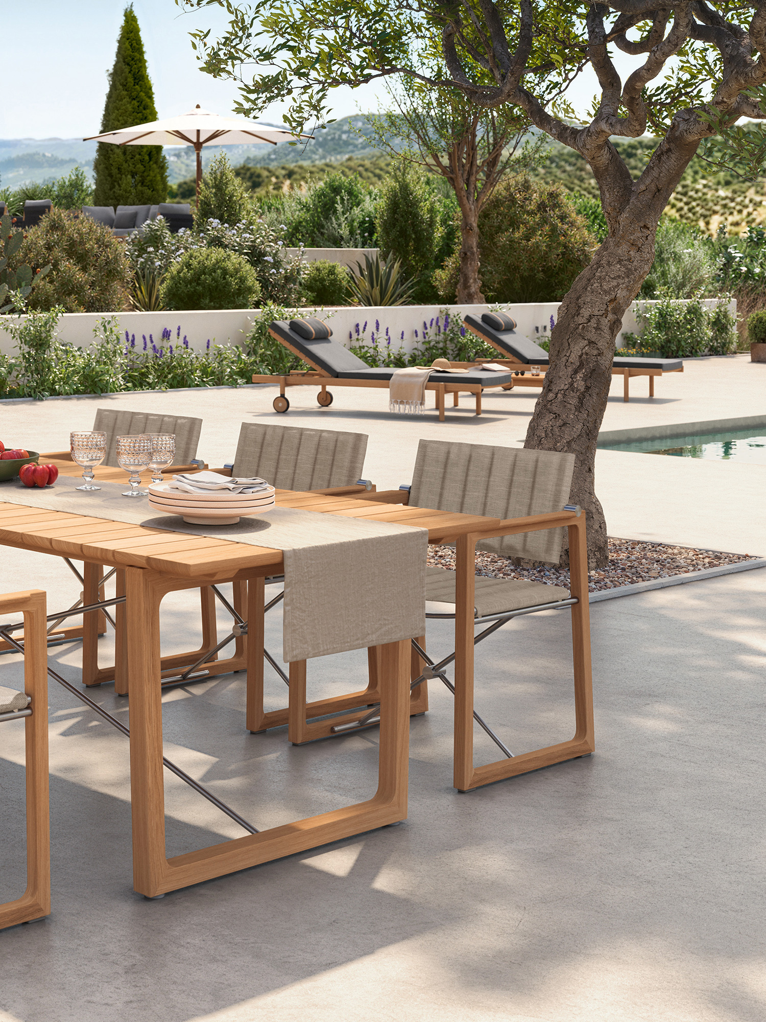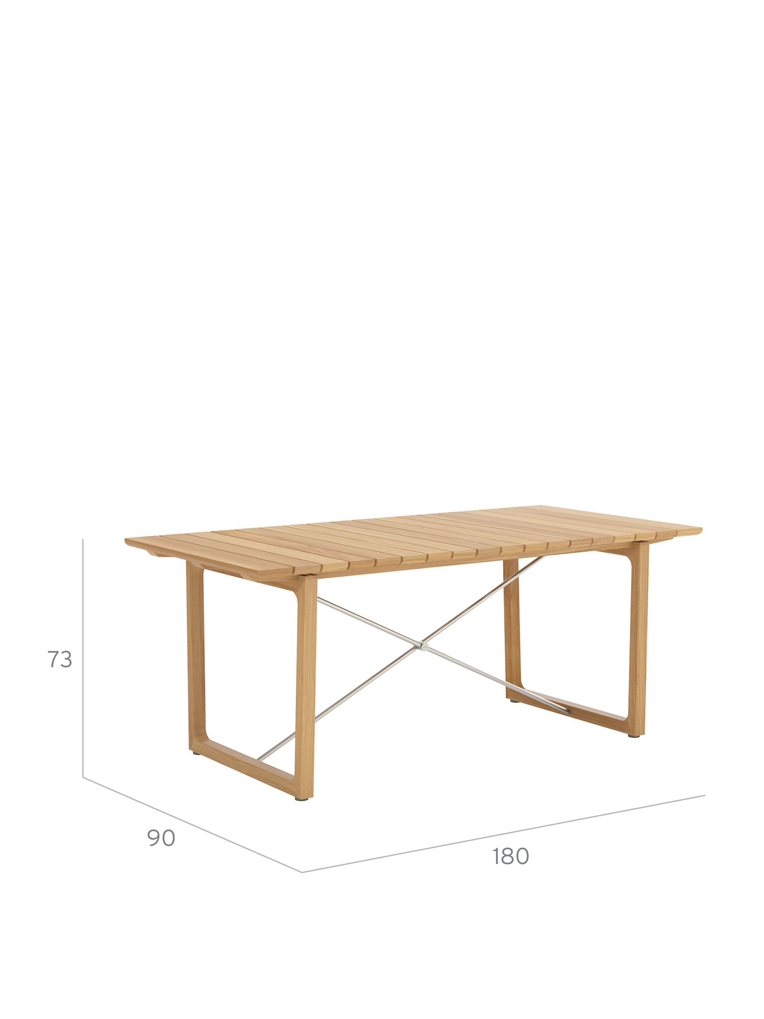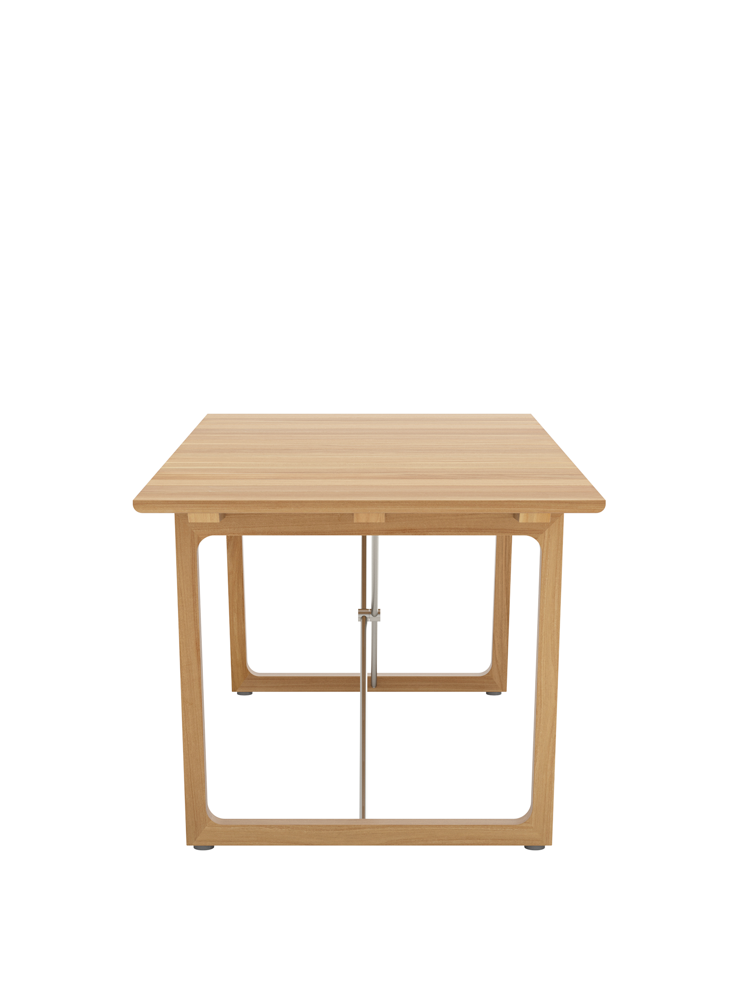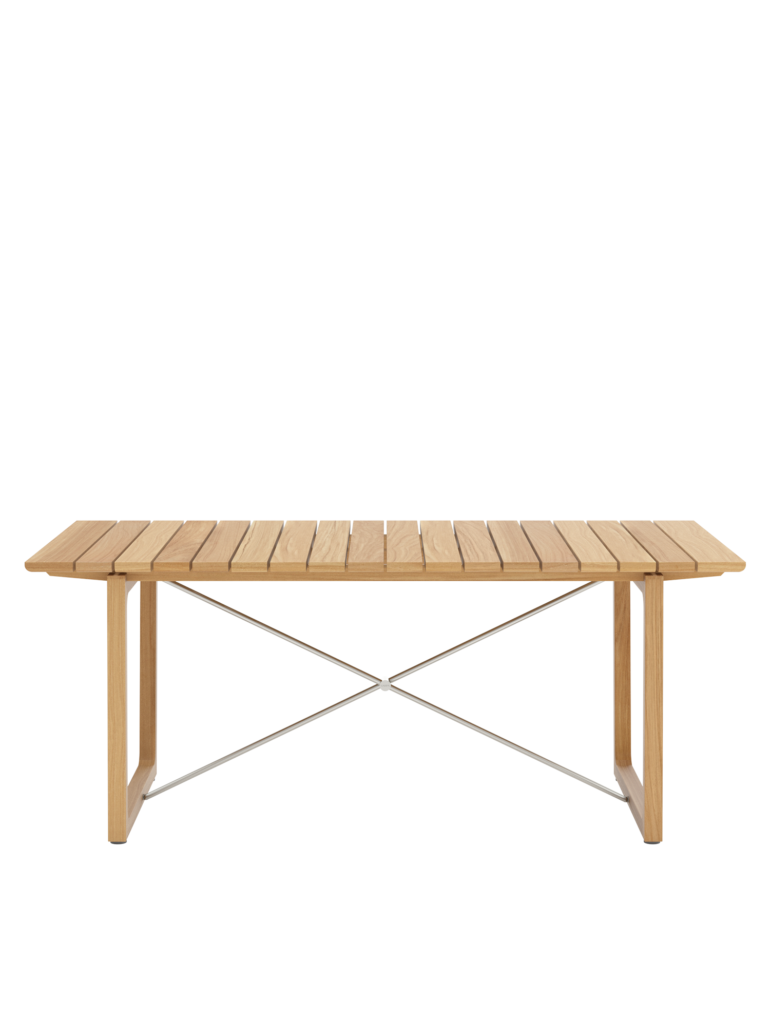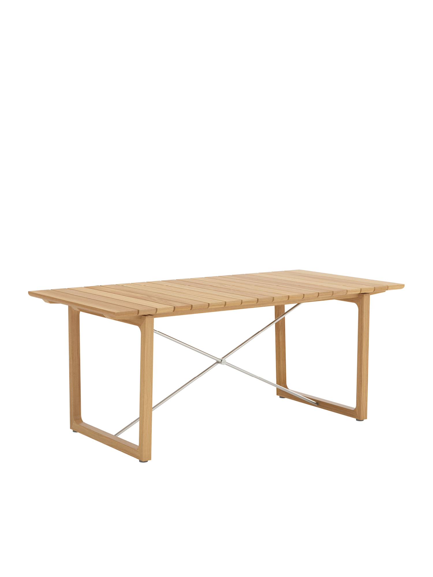 Teakholzwangen und Edelstahlkreuz prägen das Design der rechteckigen Benton Tische, deren Leisten an der Unterseite geschmeidig gerundet sind, was optisch und haptisch für einen angenehmen Effekt sorgt. Die eleganten Tische aus massivem und aufwendig verarbeitetem Plantagenteakholz sind in zwei verschiedenen Grössen erhältlich.