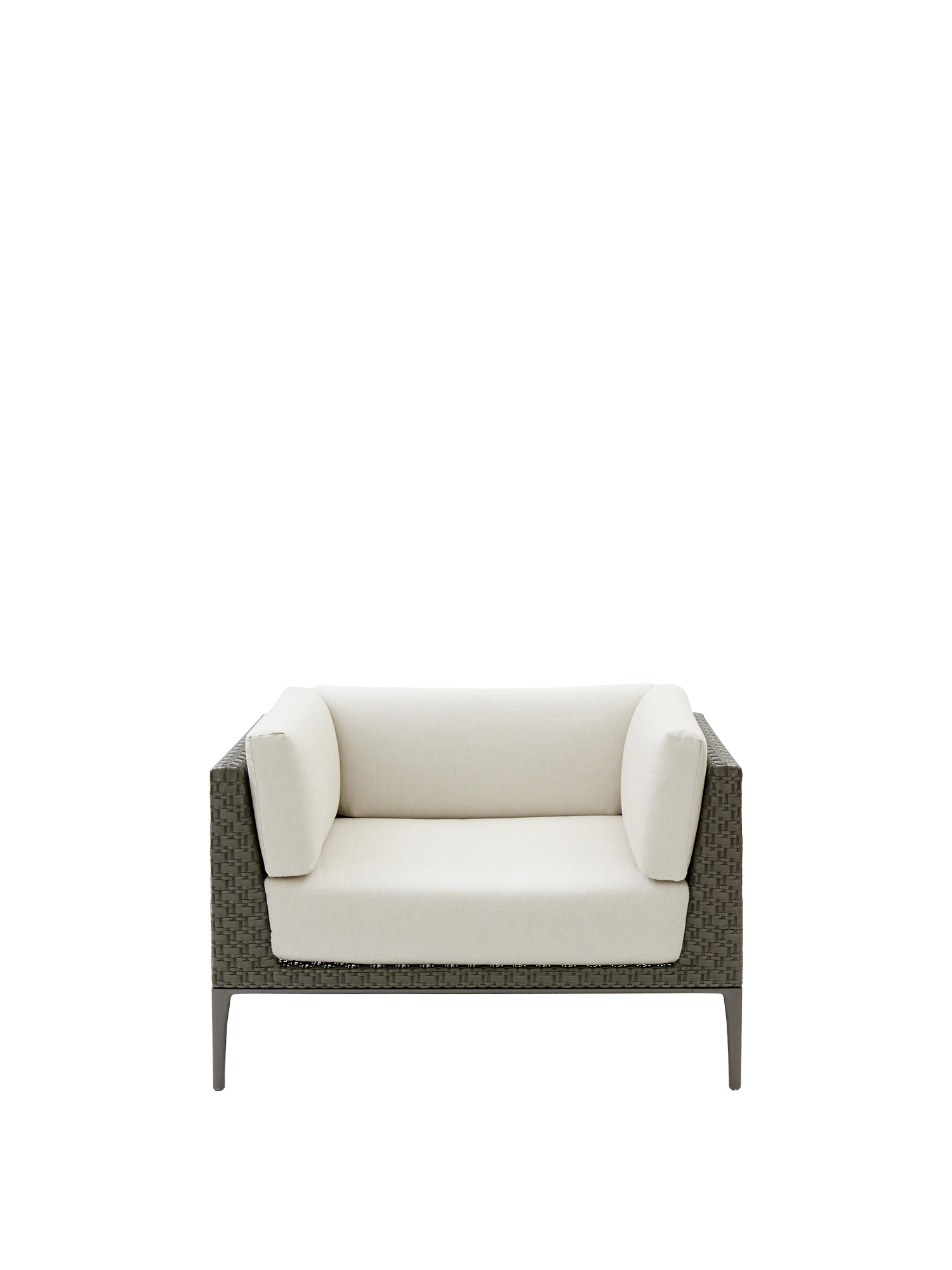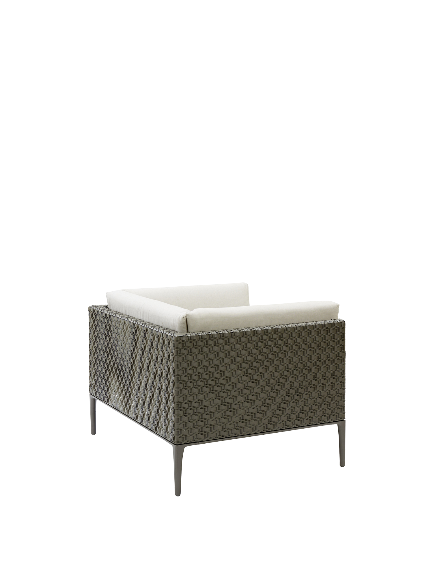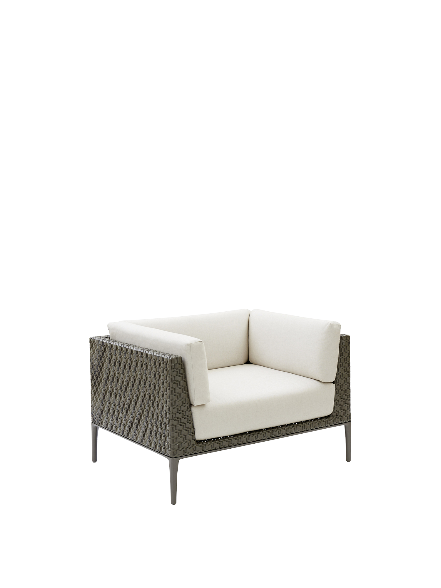 Camps Bay etabliert das Wohnzimmer als Freiraum: Ob weitläufige Terrasse oder intime Nische – die unauffällig zu fixierenden Module sind offen für viele Konstellationen. Dazu gesellt sich der bequeme Sessel als edler Solitär. Für die geräumigen Loungemöbel werden wetterfeste Kunststofffasern von Hand auf pulverbeschichtete Aluminiumgestelle geflochten.