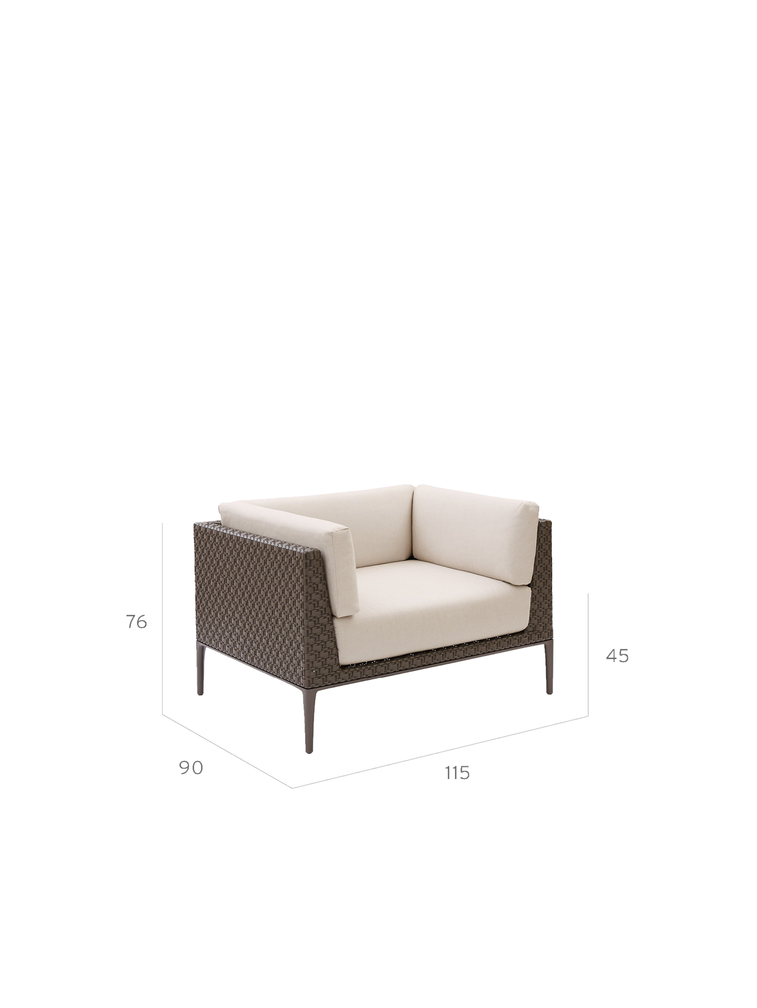 Das attraktive Geflechtmuster der Möbel wiederholt sich an den Kanten der passenden Tische zur Serie. Sie sind wahlweise mit einer Oberfläche aus Teak oder opakem Sicherheitsglas, durch das ein grafisches Muster schimmert, erhältlich. Rechteckig füllen sie den Platz in der Mitte einer Sitzgruppe, quadratisch können sie als Ecklösung dienen, und 37 cm schmal eignen sie sich als praktischer Anstelltisch. Zur Auswahl der Tische gelangen Sie unter "Weitere Produkte der Serie" weiter unten auf dieser Seite.