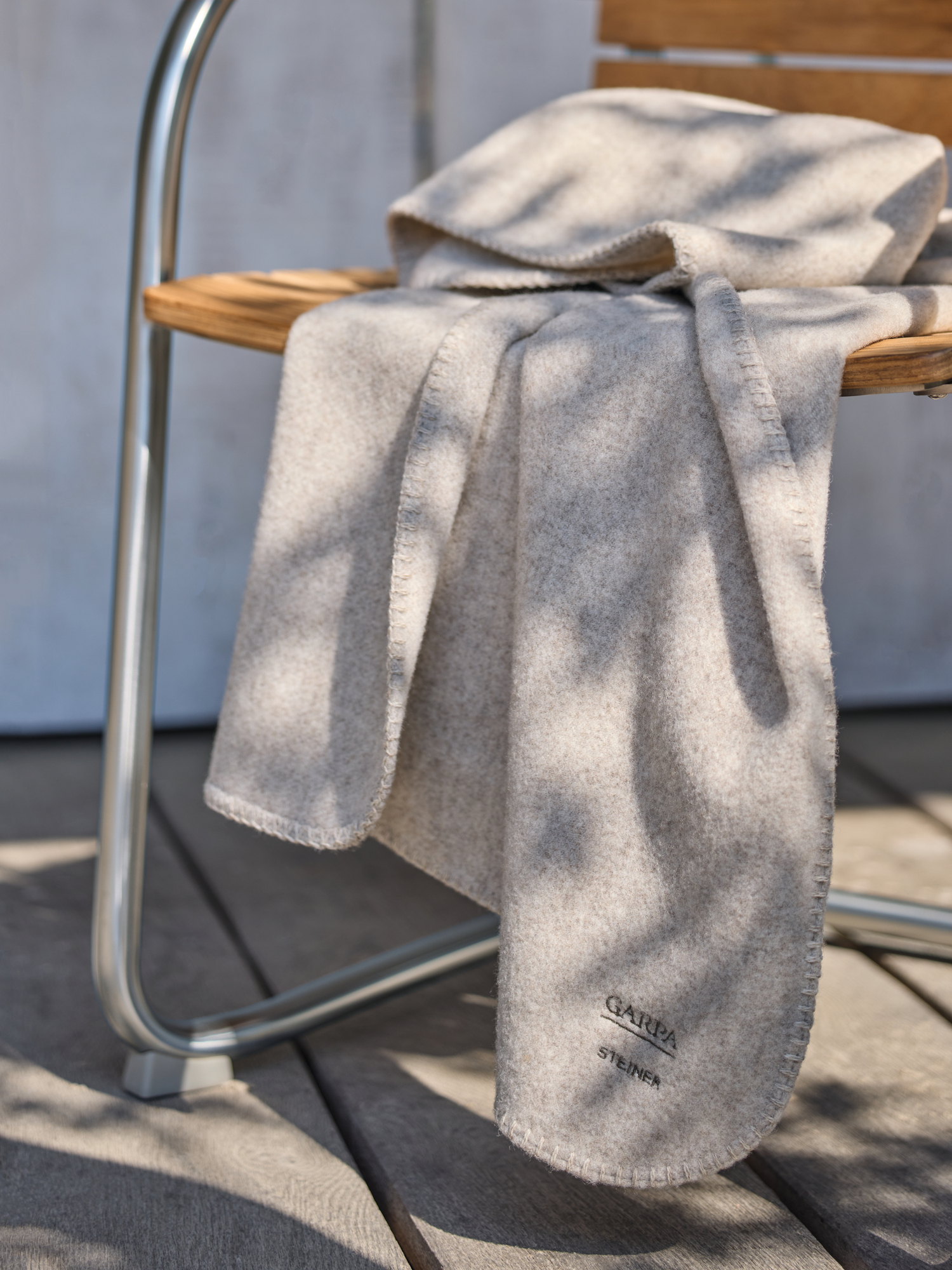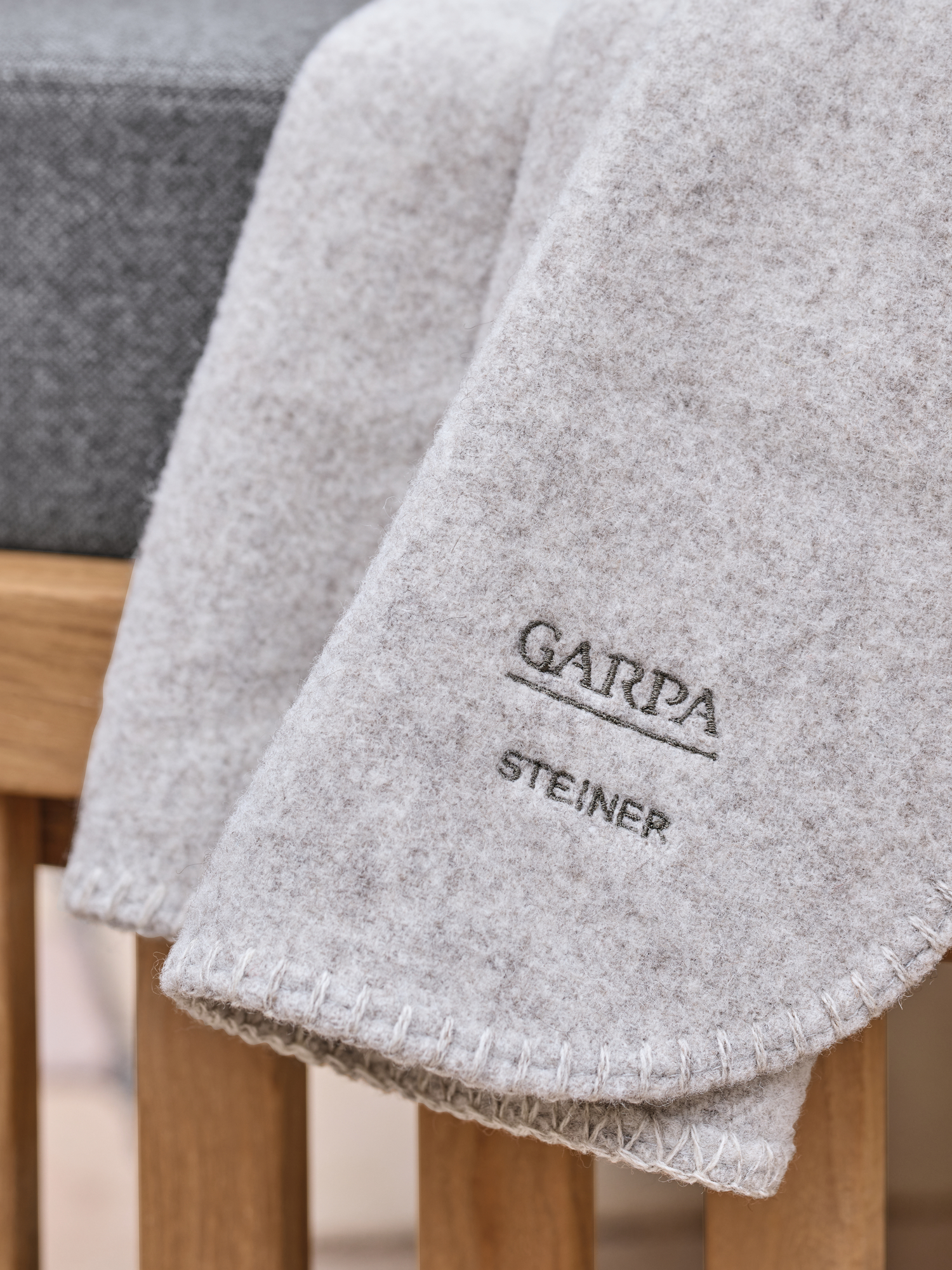 In Österreich von Steiner gefertigt, einem seit 1888 bestehenden Familienunternehmen für die Lodenherstellung, zeichnet sich das Plaid durch isolierende Wollfasern von Merinoschafen aus, die nur einmal pro Jahr in Handarbeit geschoren werden. Das Plaid kann bei bis zu 30° gewaschen werden.