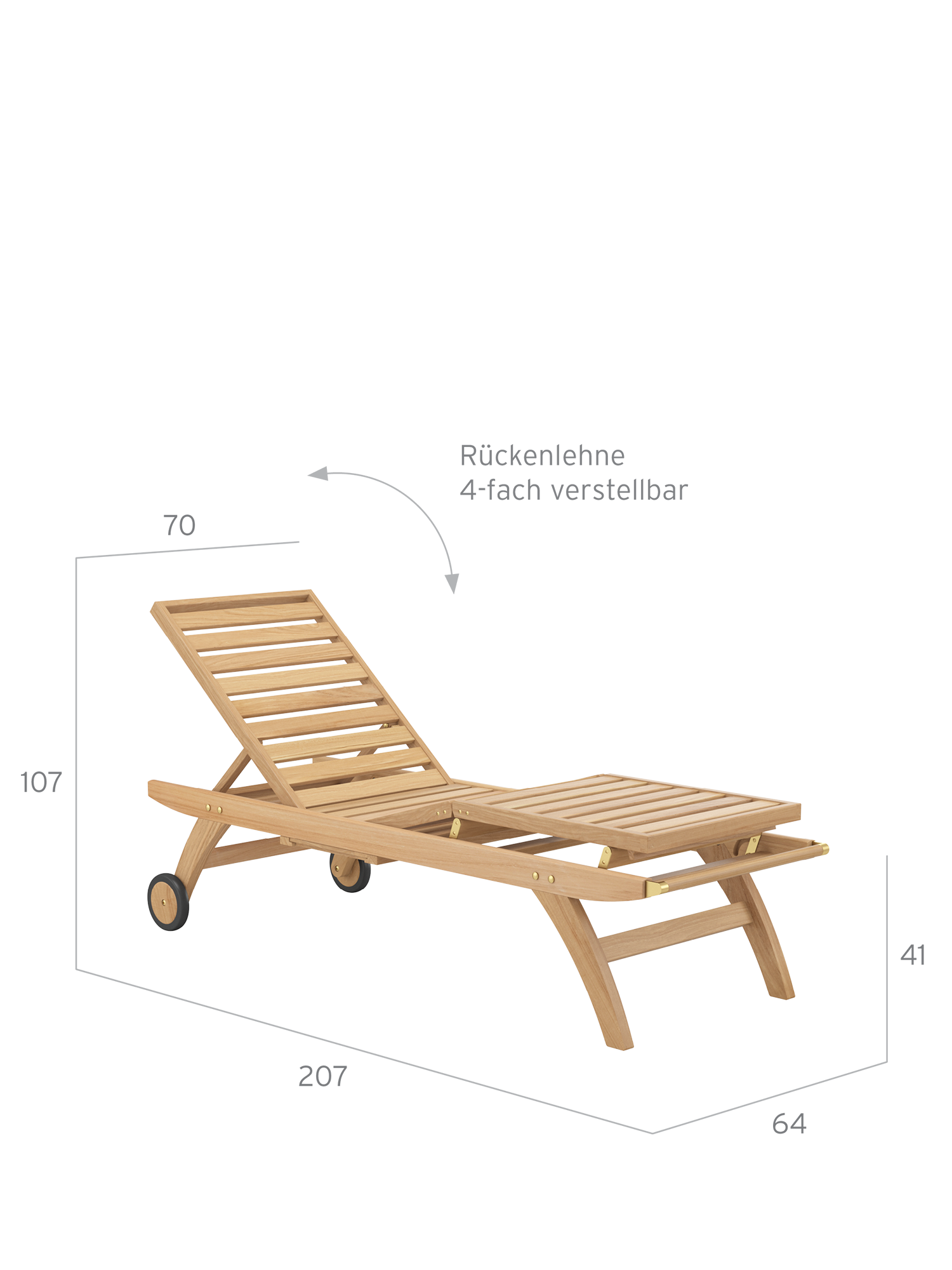Die Rückenlehne der Liege lässt sich vierfach verstellen, zum Sonnenbaden auch in eine ganz flache Position.