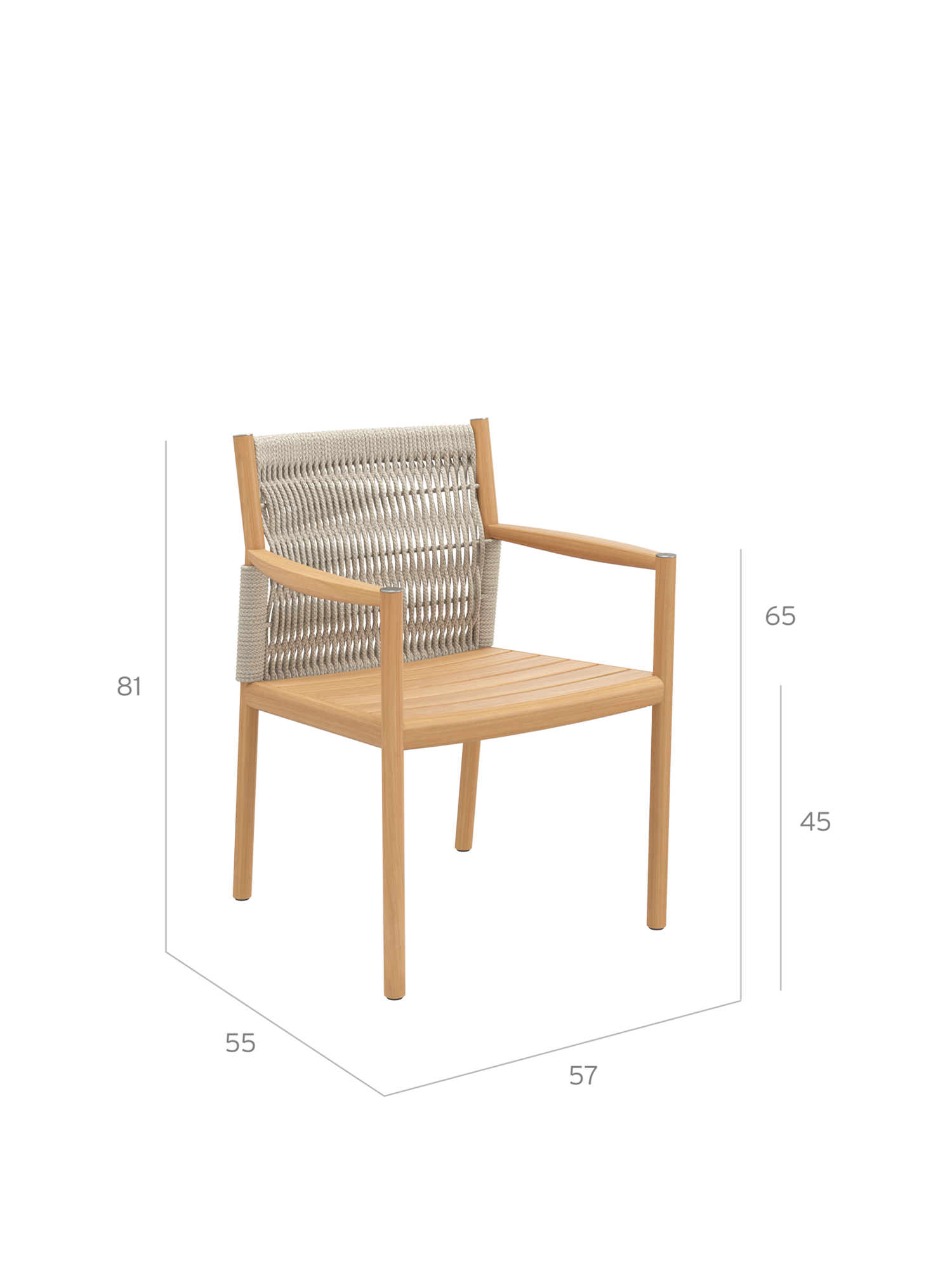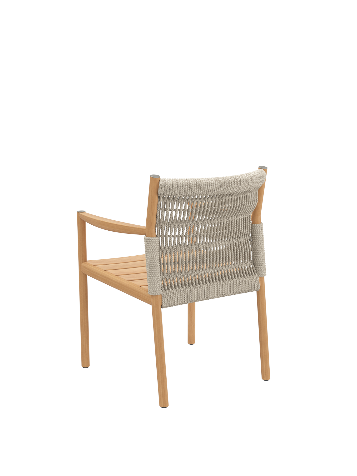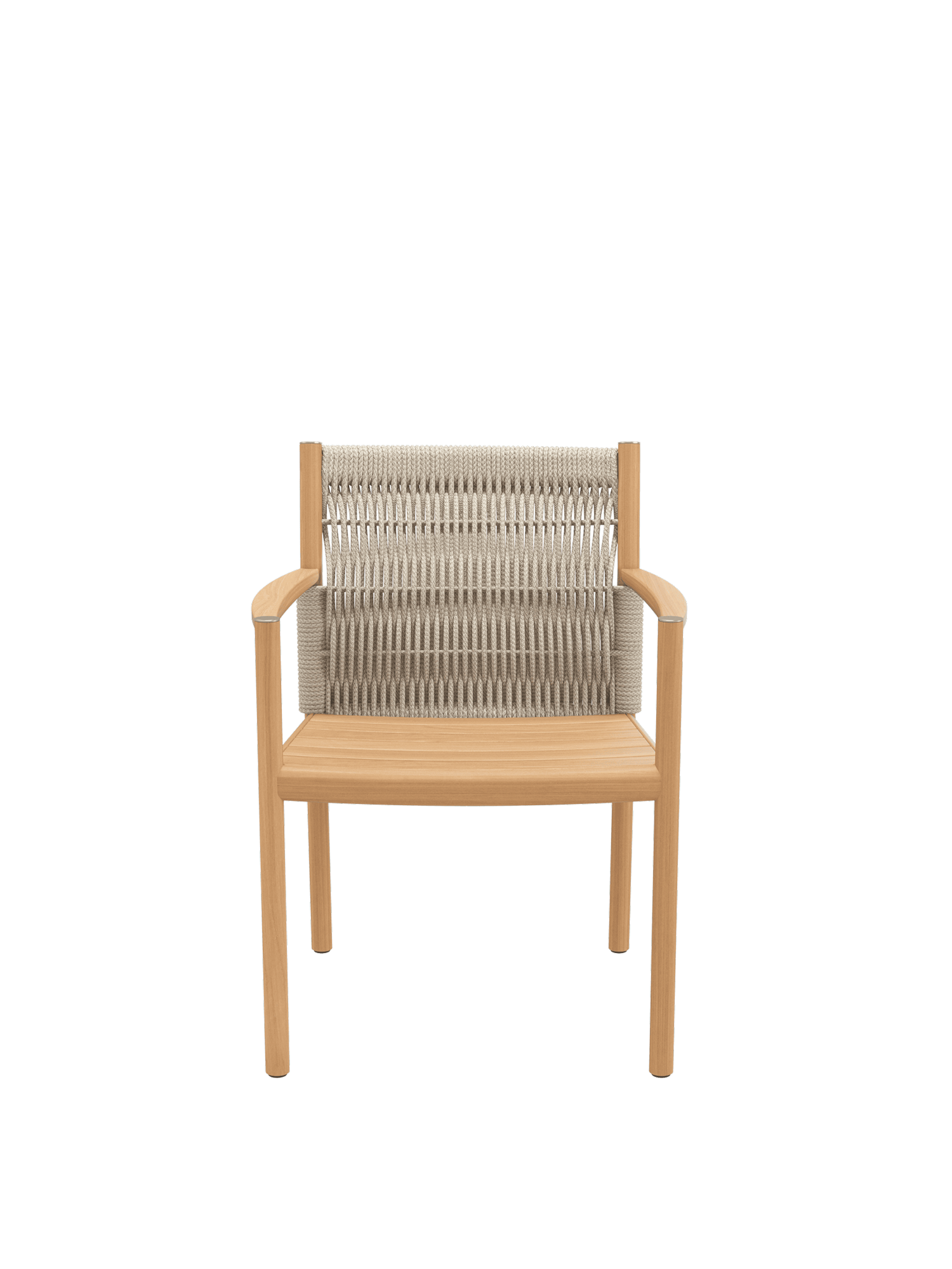 Im unverwechselbaren Design der behaglichen Cavo Kollektion laden die komfortablen Armlehnstühle zu Tisch. Gedrechseltes Plantagenteak bildet die elegante Basis für eine ergonomisch geformte Sitzfläche und sanft gerundete Armlehnen. Die hohe Rückenlehne der Dining Stühle aus anschmiegsamem Kordelgeflecht im Farbton Beige bietet Geborgenheit an langer Tafel oder in kleiner Runde. Feine Edelstahldetails setzen einen vertrauten Akzent. Optional erhältliche Auflagen in verschiedenen Dessins sorgen zusätzlich für Entspannung.