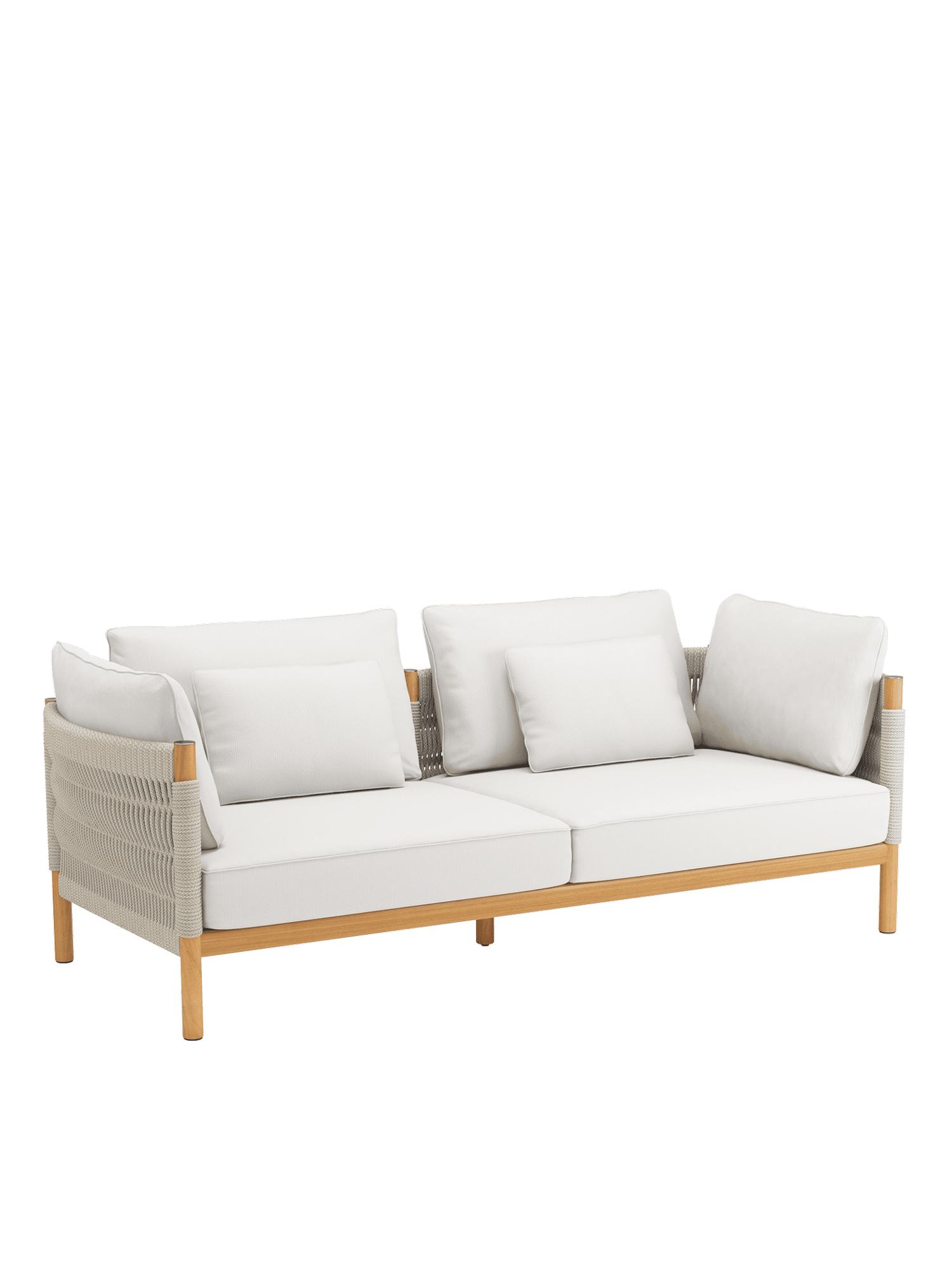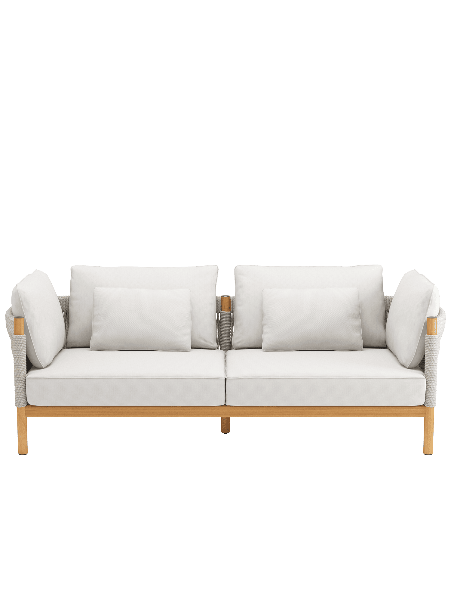 Einladend weiche Polster vollenden den Komfort der Möbel. Zum Lieferumfang des grosszügigen Sofas der Serie gehören zwei Zusatzkissen im Dessin "Woven Sand" im Format 50 x 35 cm. Optional erhältliche Zierkissen im Format 50 x 45 cm finden Sie unter "Zubehör" weiter unten auf dieser Seite.