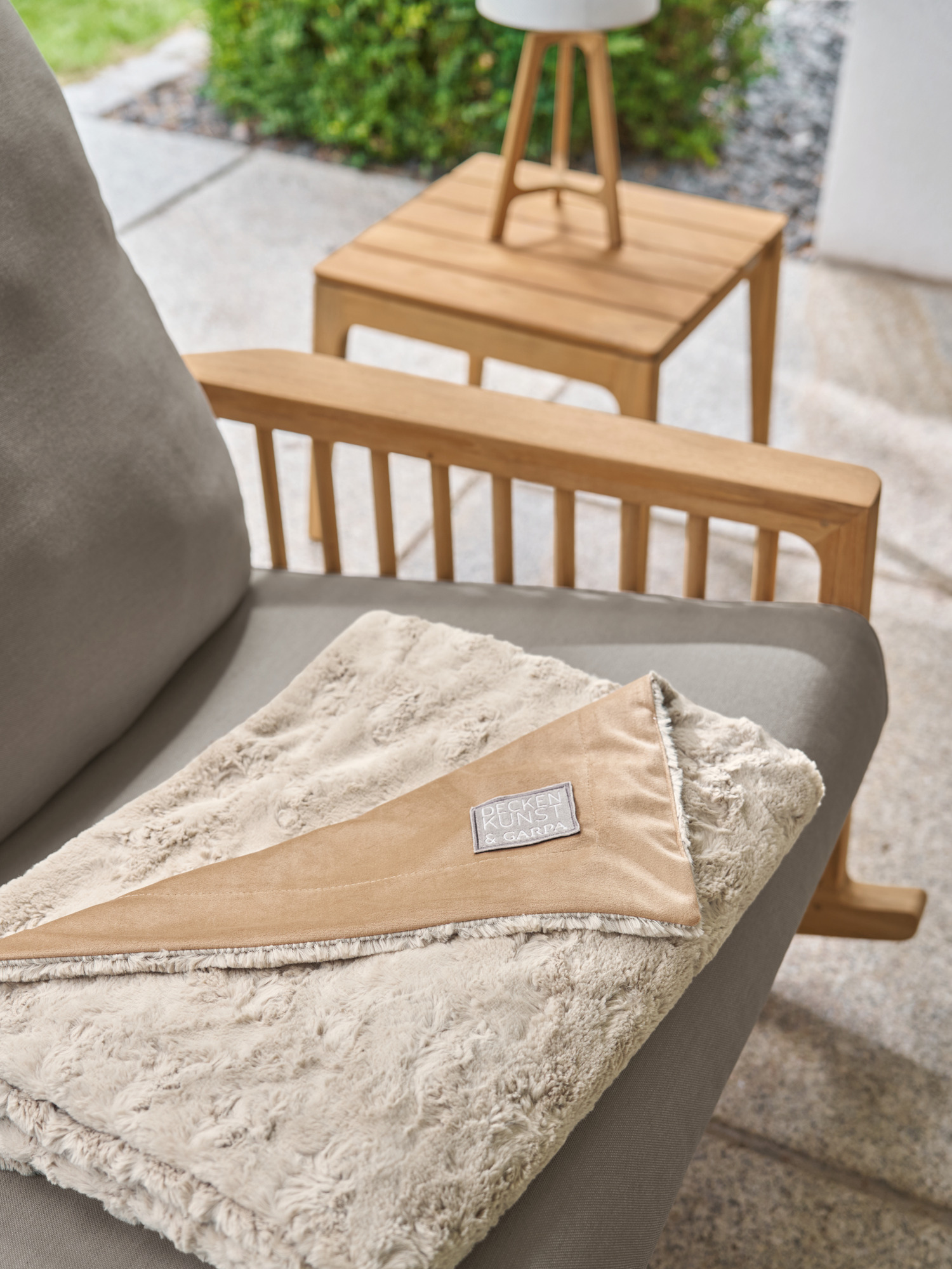 Das besonders anschmiegsame Plaid aus Fellimitat im grosszügigen Format wärmt an kühlen Herbstabenden im Freien ebenso wie auf dem Sofa im Wohnzimmer.
