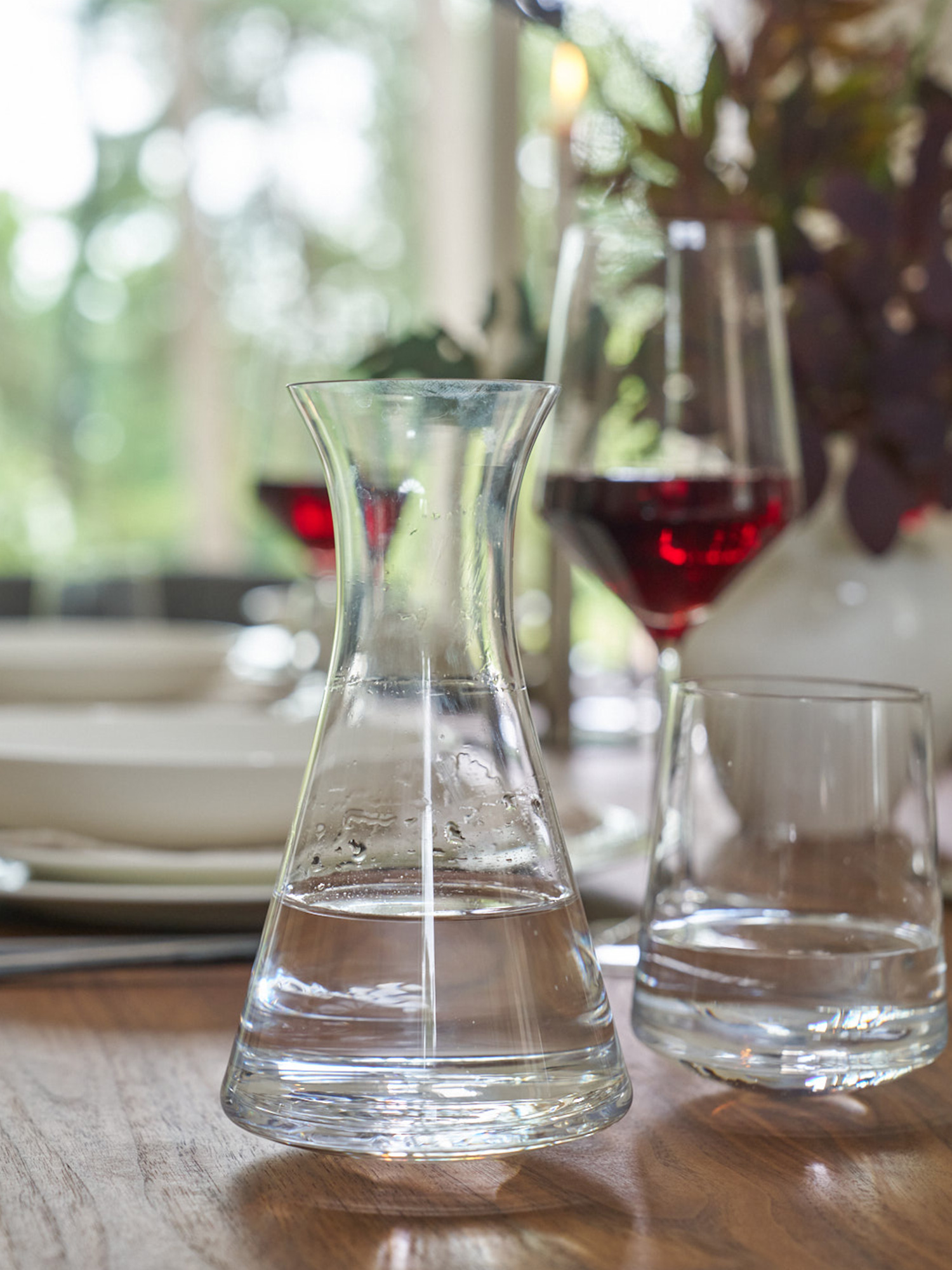Die unverwechselbaren Claris Gläser und Karaffen kombinieren traditionelle Handwerkskunst mit einem zeitgemässen Design. Mundgeblasen in einer Mailänder Manufaktur, entstehen die ungewöhnlichen Glasobjekte in aufwendiger Handarbeit. Das hochwertige Kristallglas wirkt schwerelos, der gewölbte Boden verleiht der Kollektion eine innere Dynamik, die sie bei jeder Berührung sanft in Bewegung versetzt, und ihr gleichzeitig Halt gibt. Betont schlichte Gläser mit und ohne Stiel sowie ausdrucksvolle Karaffen in zwei Grössen lassen sich miteinander kombinieren oder vollenden auch unabhängig voneinander jedes Tafelbild.