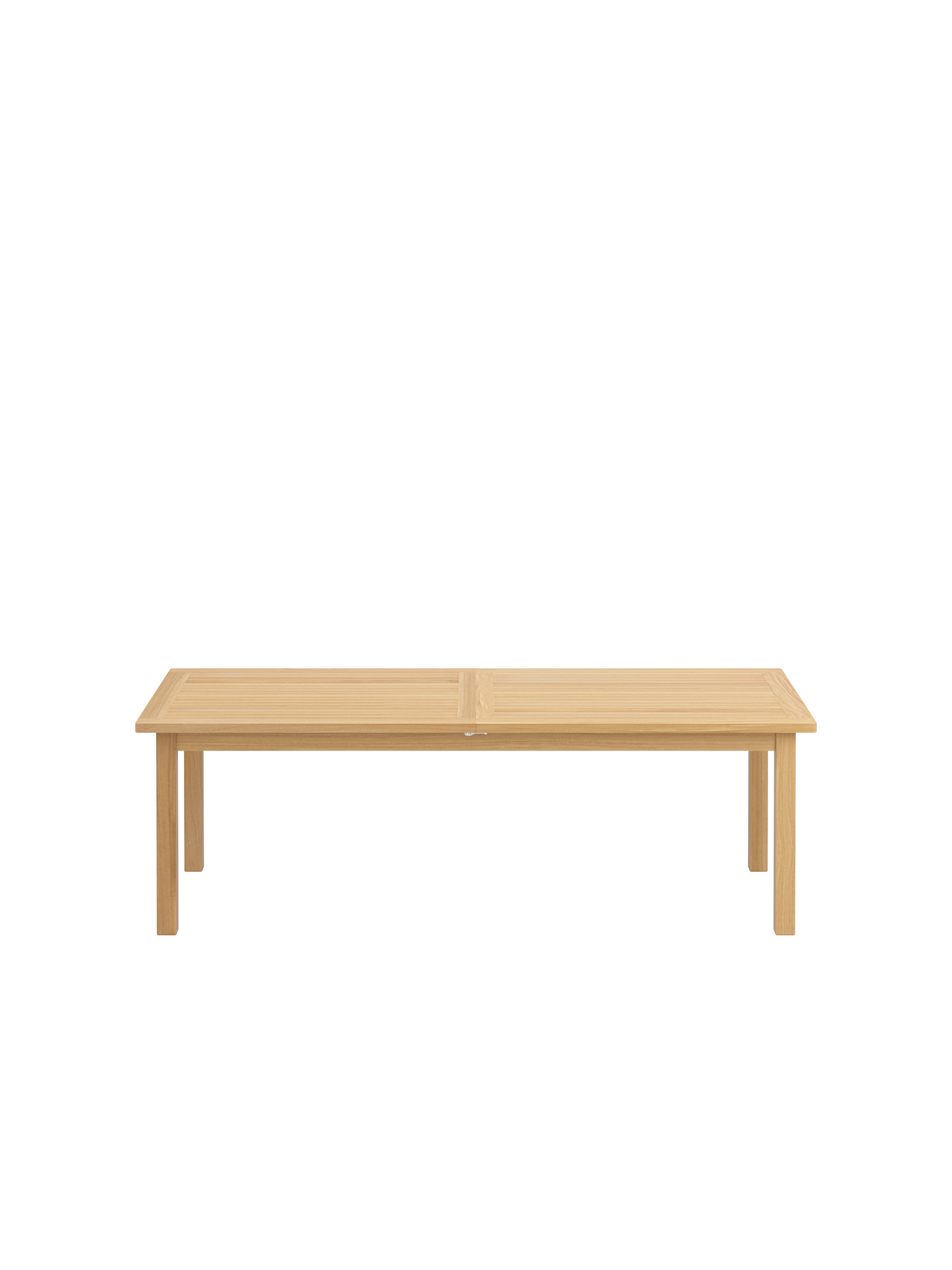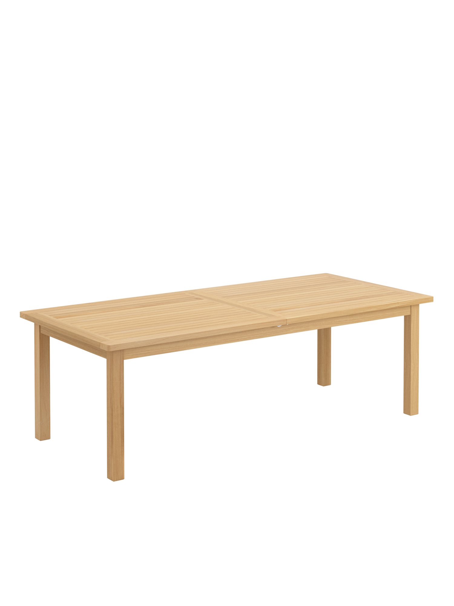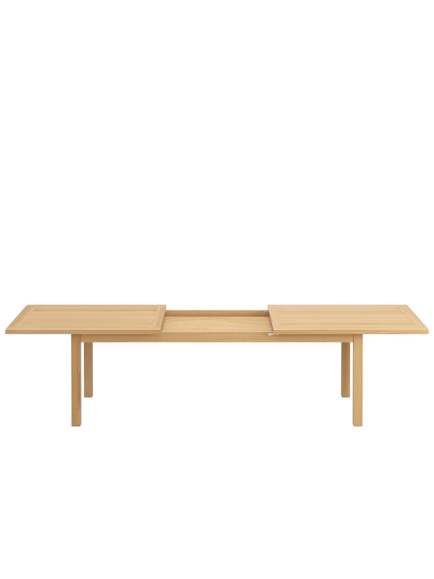 Bei allen Teak Ausziehtischen lässt sich das Mittelteil leichtgängig klappen. Wird es nicht benötigt, lagert es im Tisch. Beim Cornwall Tisch sind wartungsfreie Aluminiumteile aufwändig in das massive Teakholz eingearbeitet und halten so den Mechanismus zuverlässig in Form.