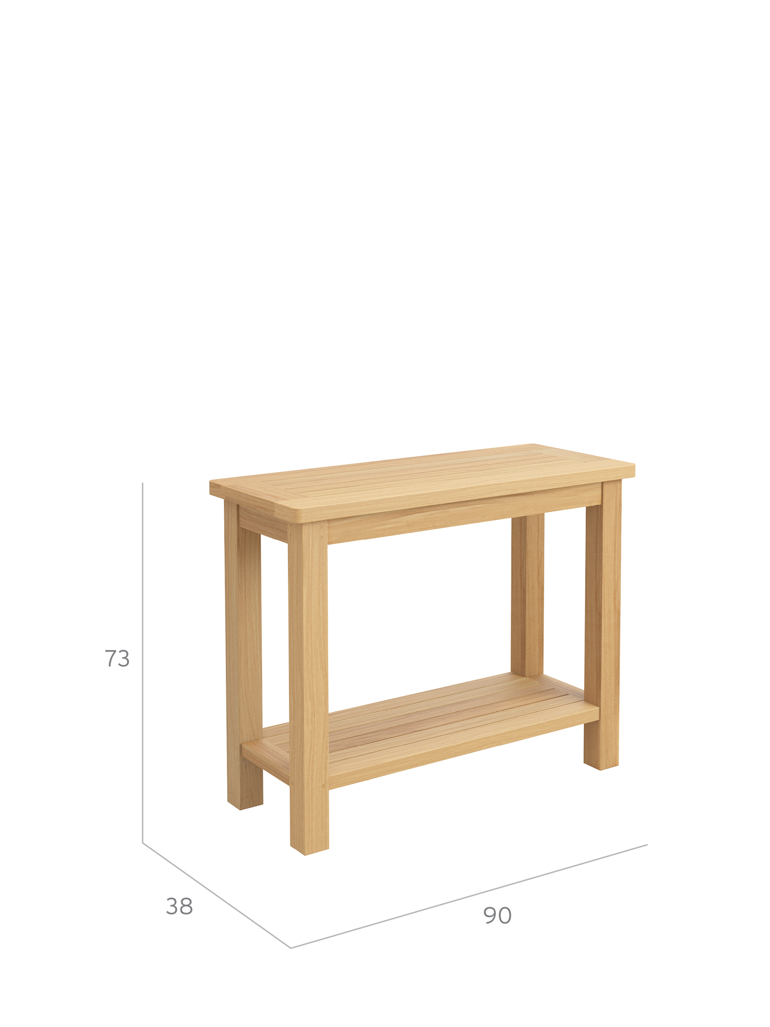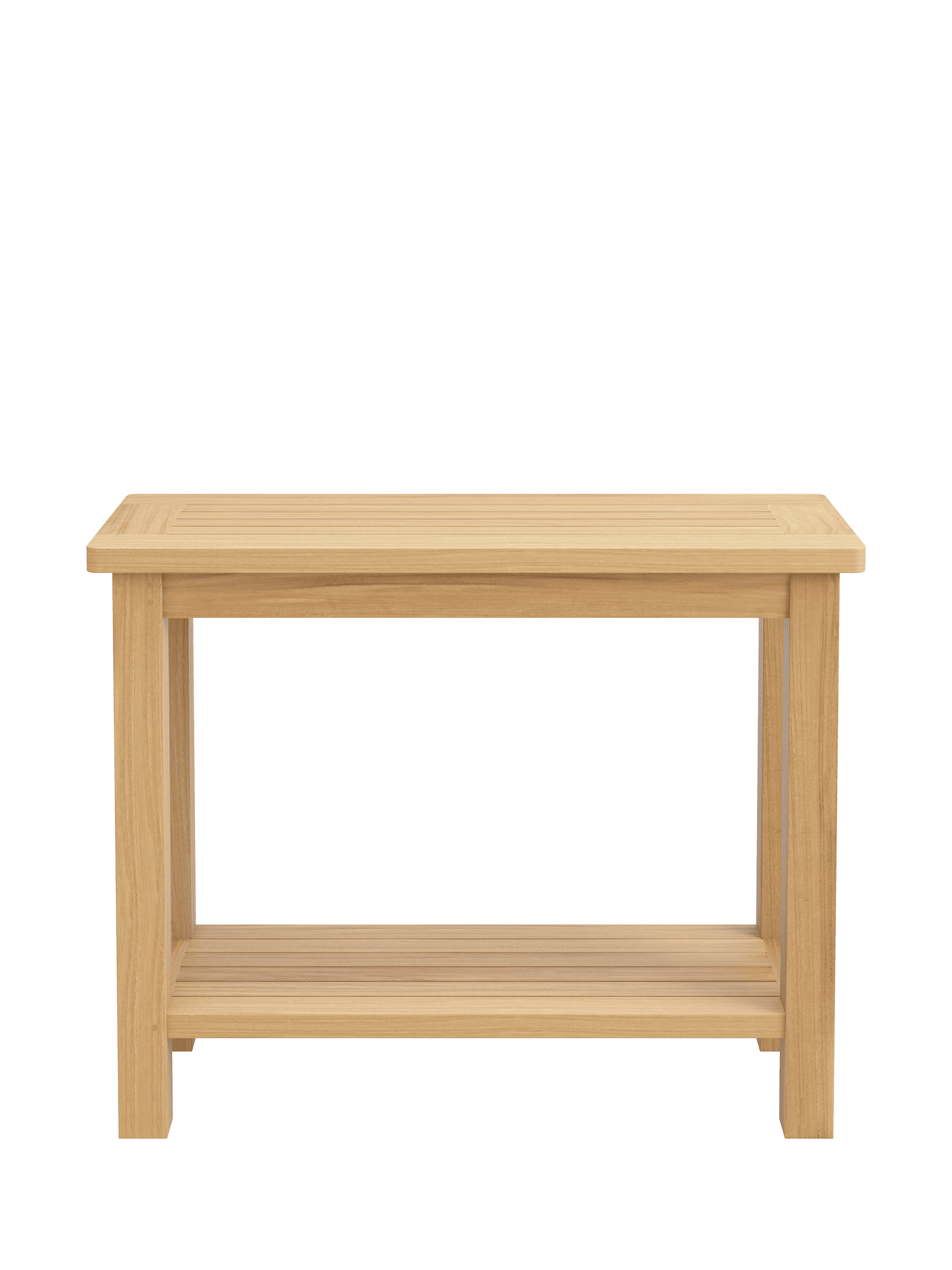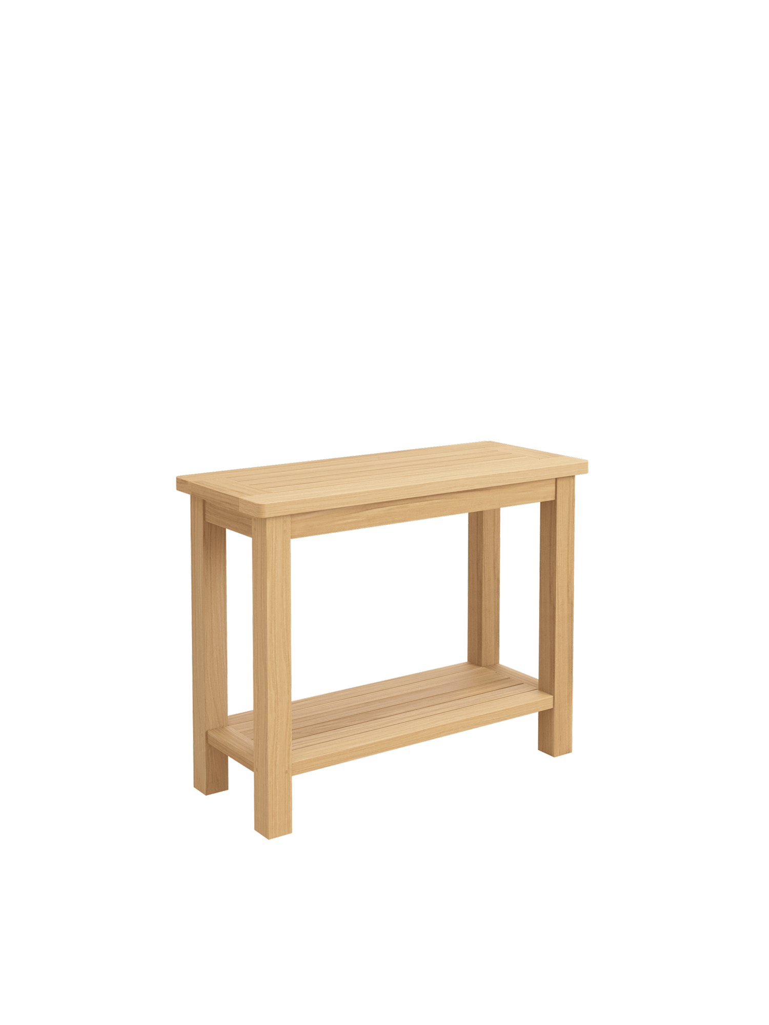 Der Konsoltisch aus Teak bietet auf zwei Ebenen Platz für Geschirr oder Accessoires. Mit ihm lässt sich auch elegant ein Cornwall Esstisch verlängern, denn er hat exakt die gleiche Höhe.