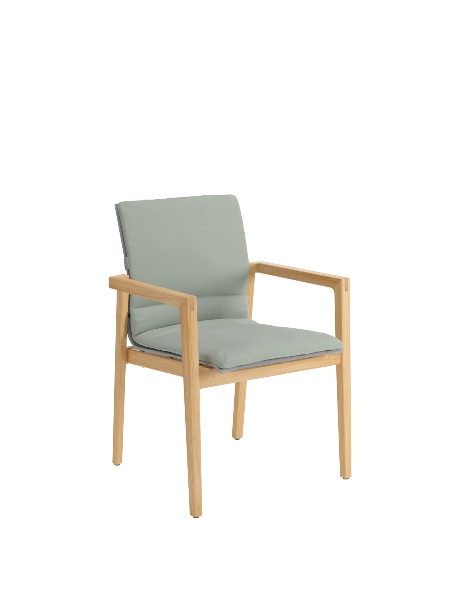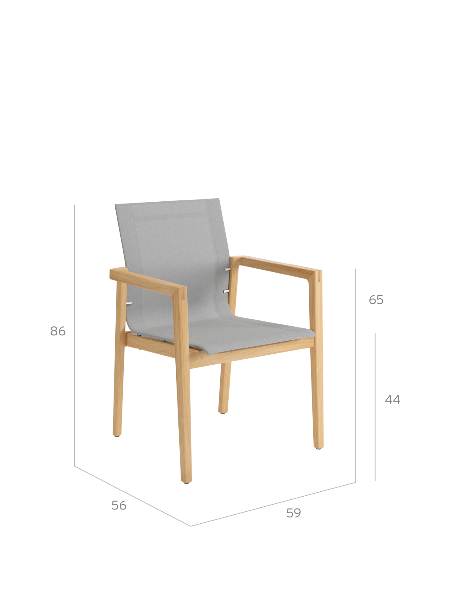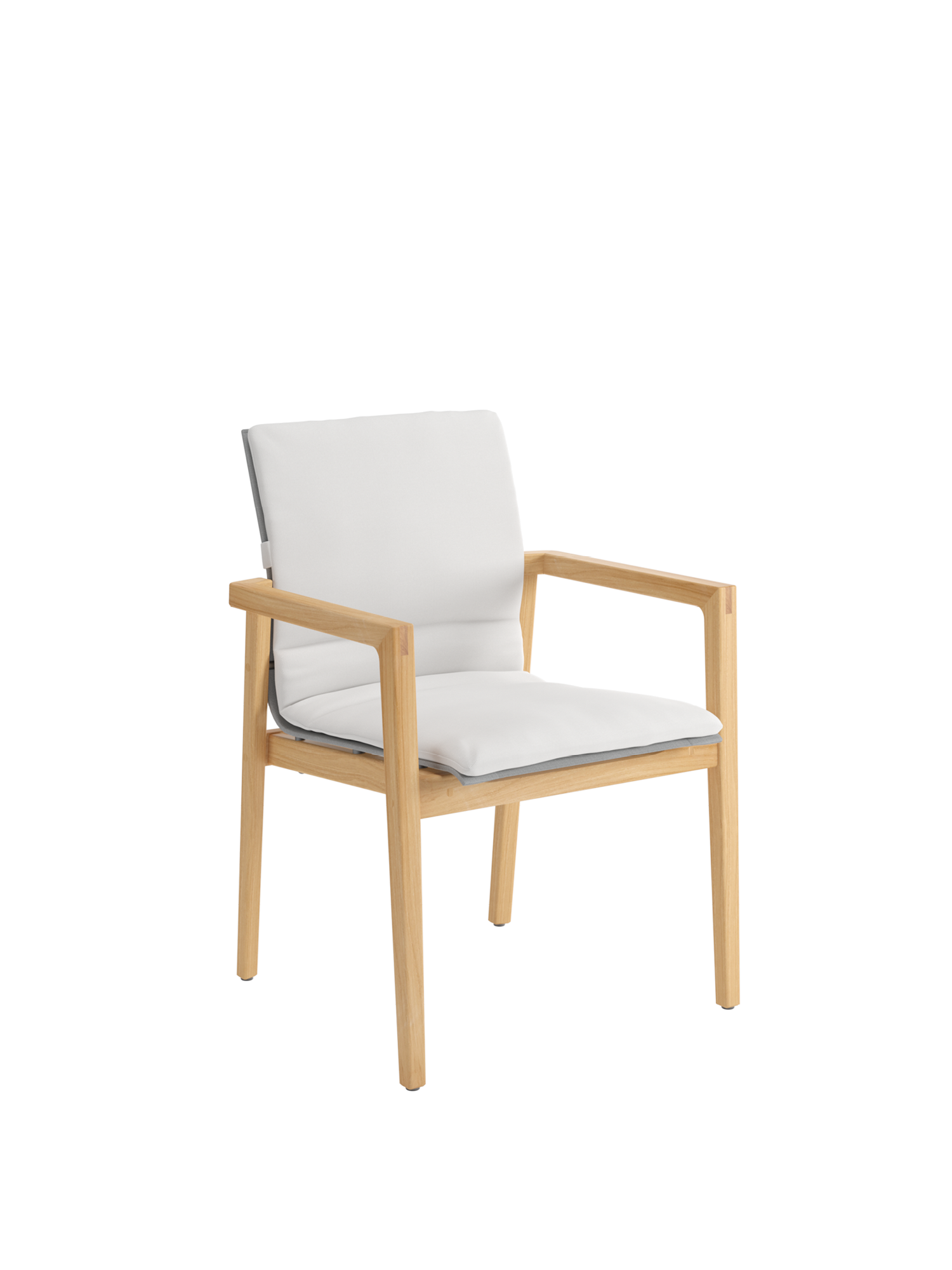 Auf der sonnengefluteten Terrasse kombinieren klassisches Teak und modernes Gewebe ihre Vorzüge: Derry Armlehnstühle mit grafisch anmutender Silhouette versprechen ein erhebendes Gefühl.