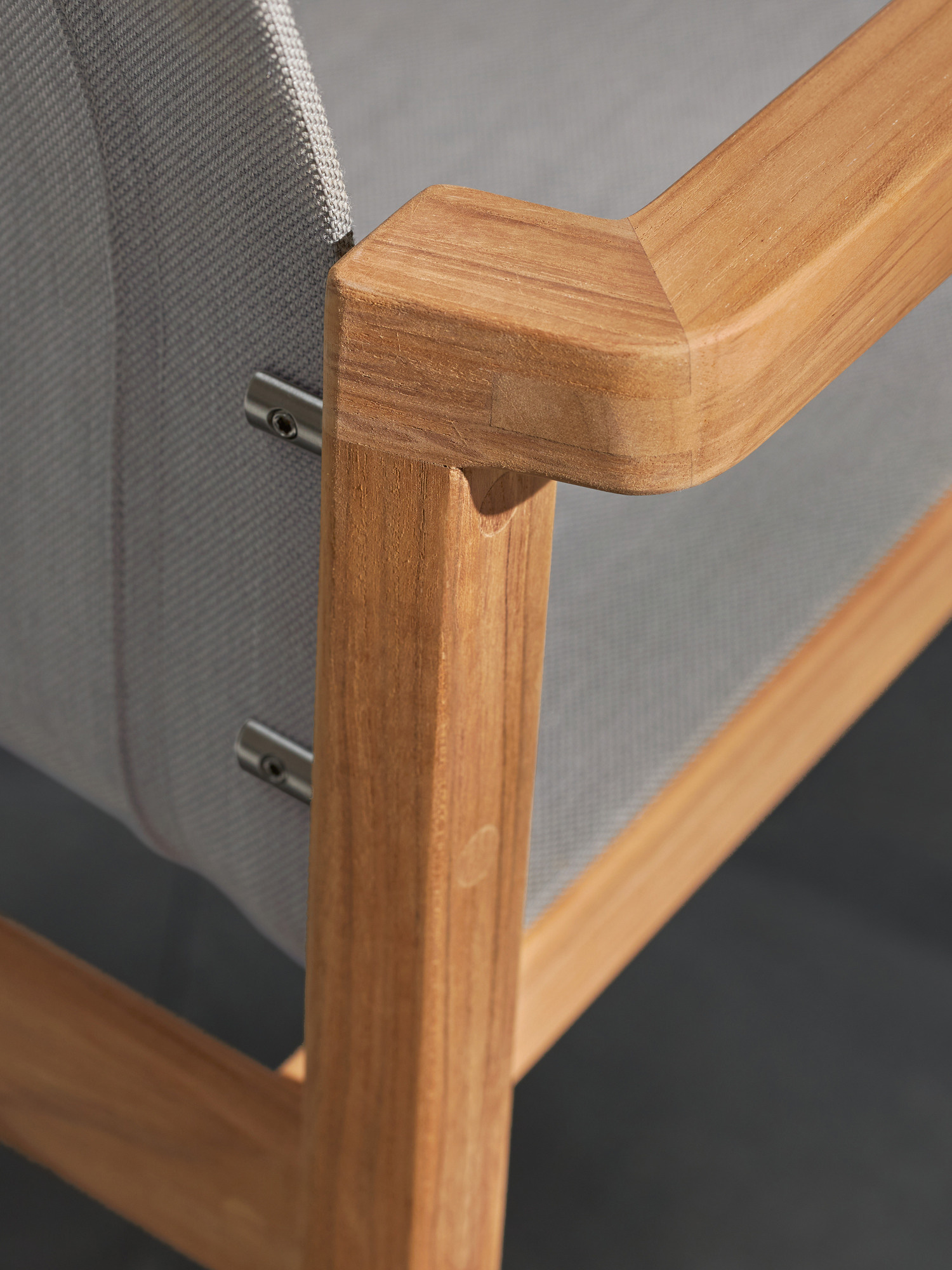 Hochwertiges Teakholz, UV-beständiges Polymergewebe und Edelstahlverbindungen widerstehen allen Anfechtungen durch Sonne, Regen, Poolwasser oder Frost. Damit sind die Armlehnstühle äusserst leicht zu pflegen.