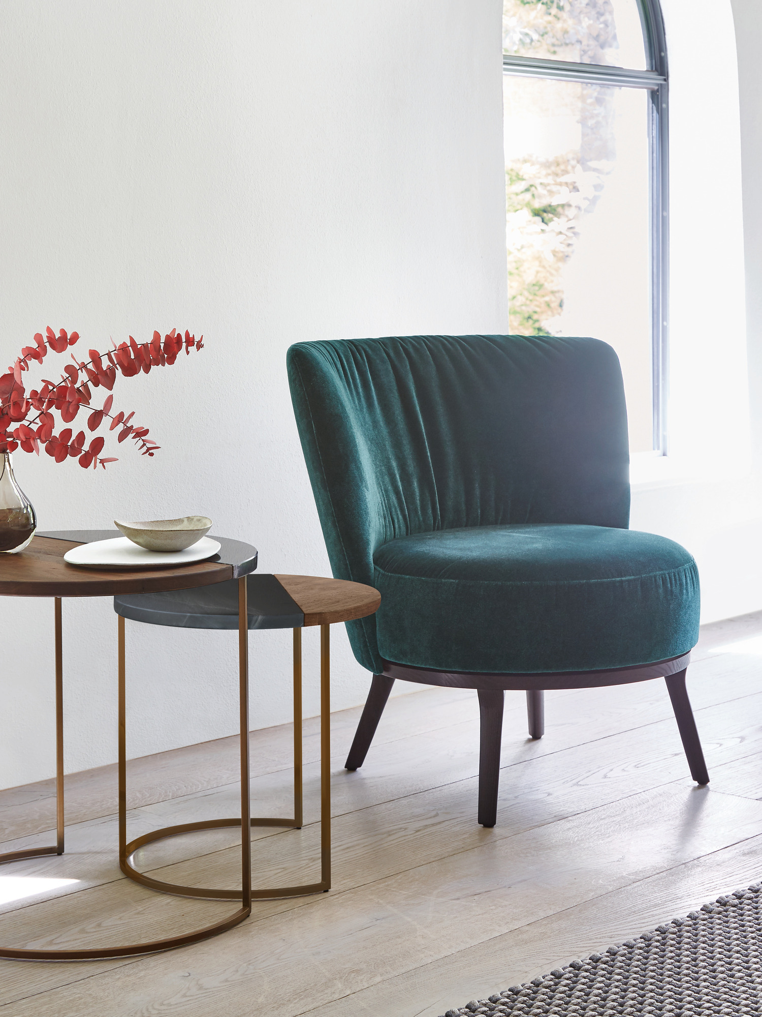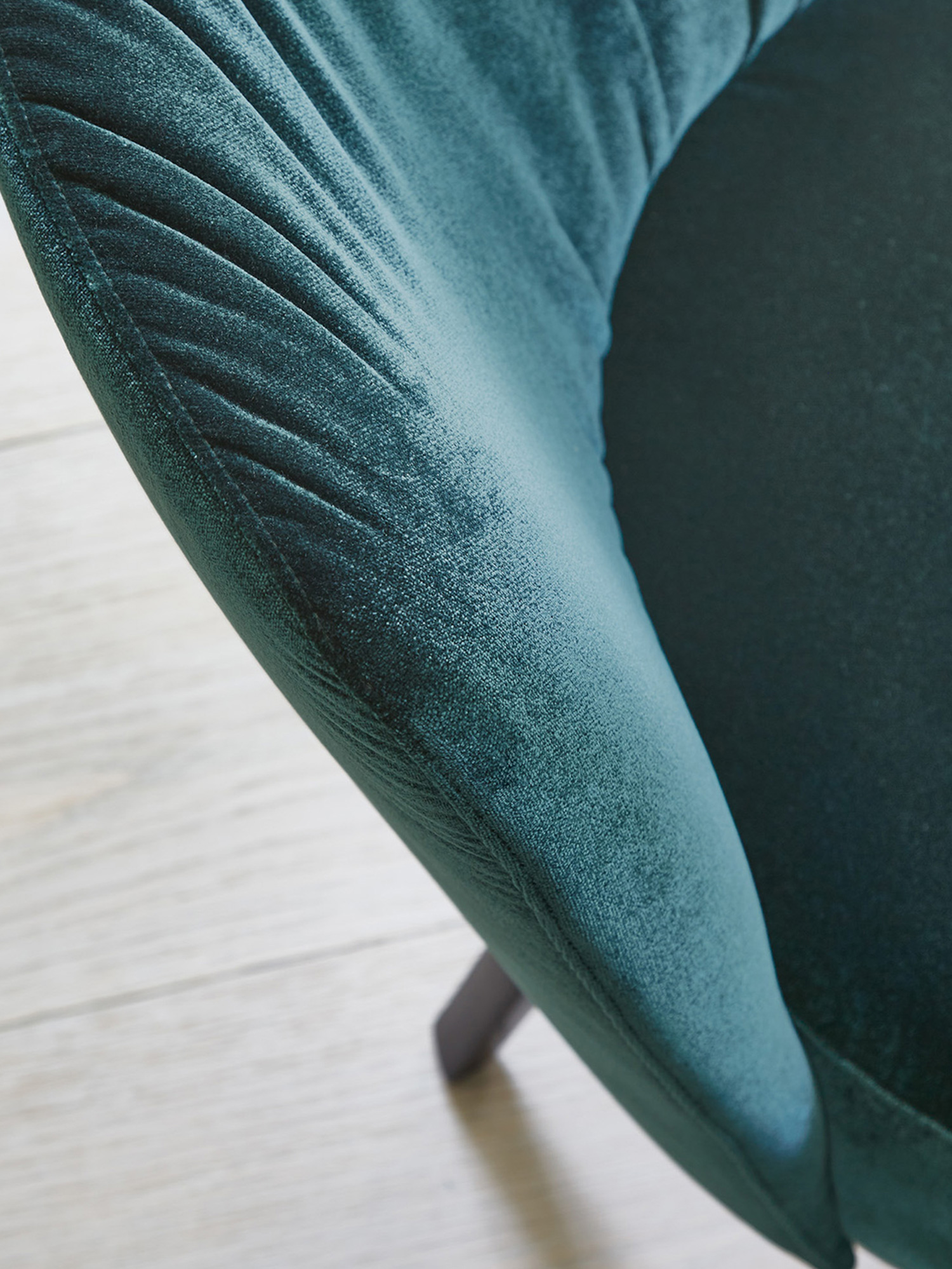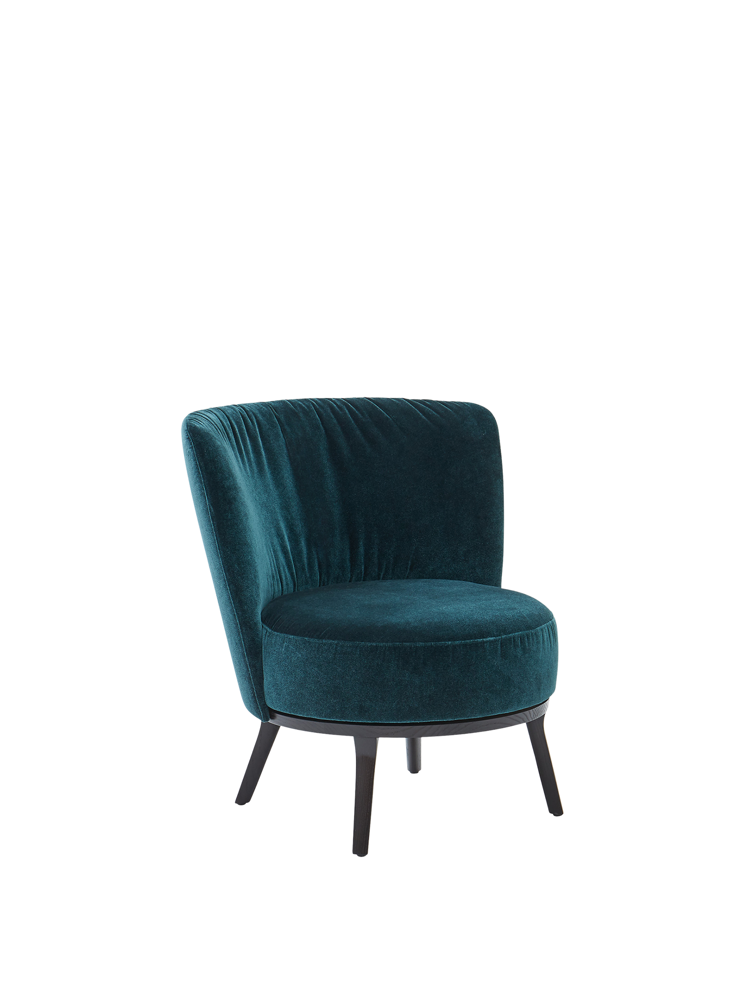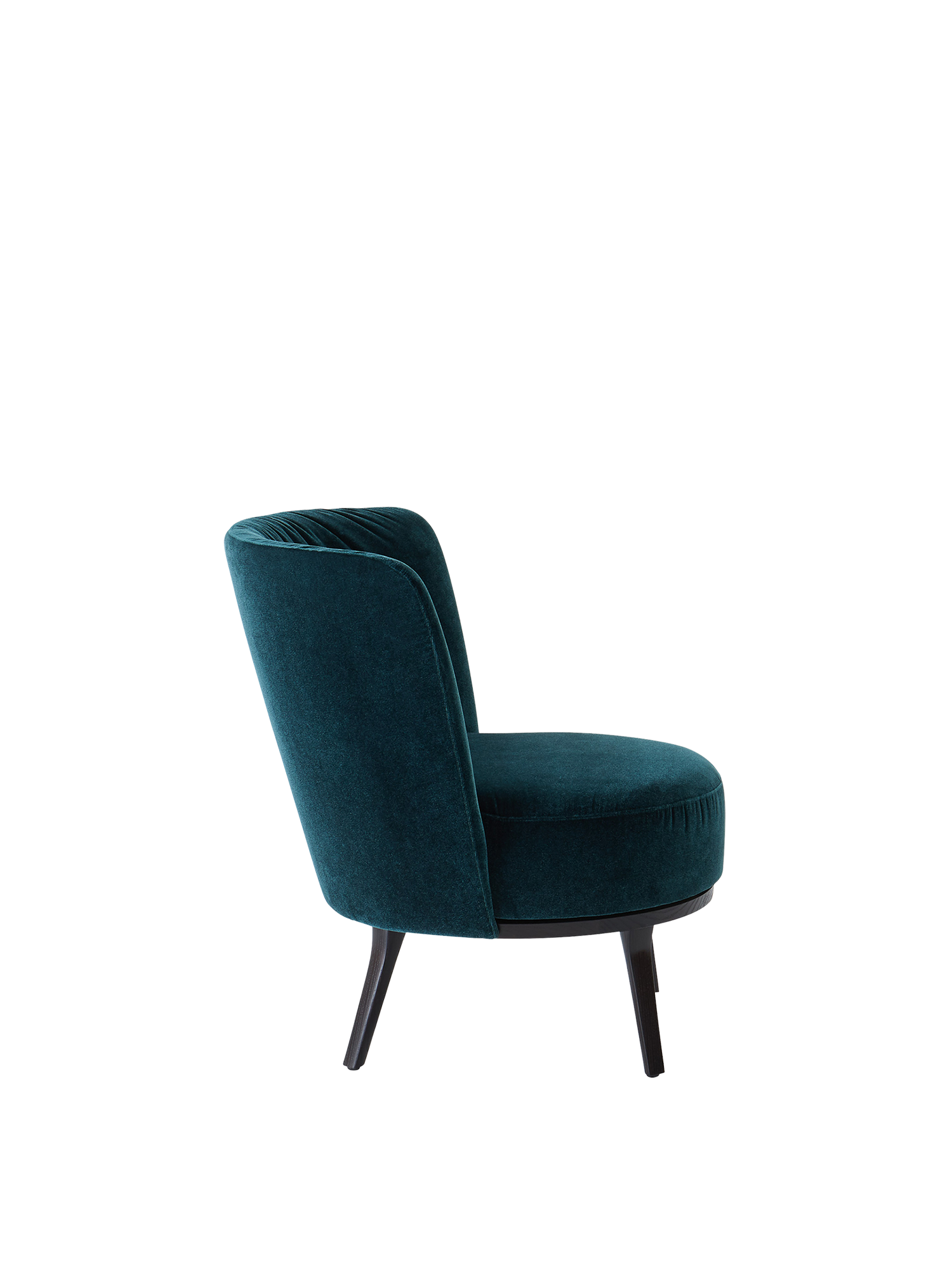 Dieser Clubsessel ist ein Kleinod: Grazil genug, um in jeder Umgebung zu glänzen, und so bequem gepolstert, dass Momente zu Stunden werden dürfen. Sein changierendes Blaugrün ist das eines Solitärs – dazu passt die Manufakturqualität unseres Partners, den Bielefelder Werkstätten, in denen er in Handarbeit entsteht. Die Einheit aus Sitzfläche und Rückenlehne ist sanft auf dem Untergestell aus wengefarben gebeizter Esche drehbar.