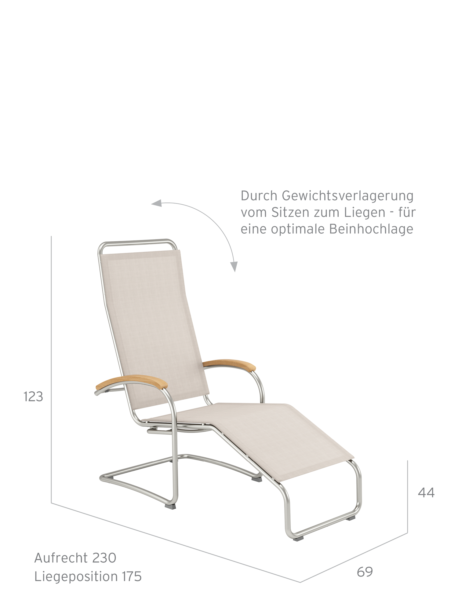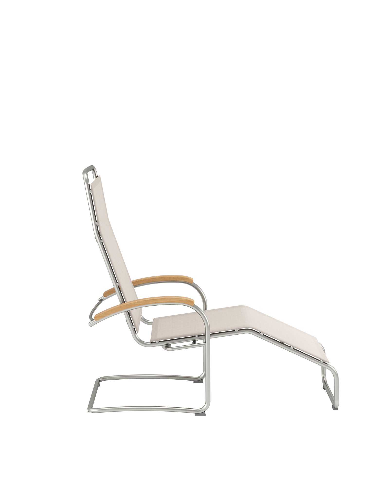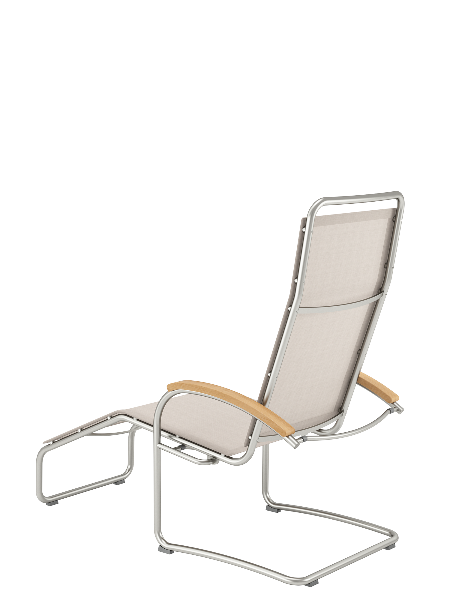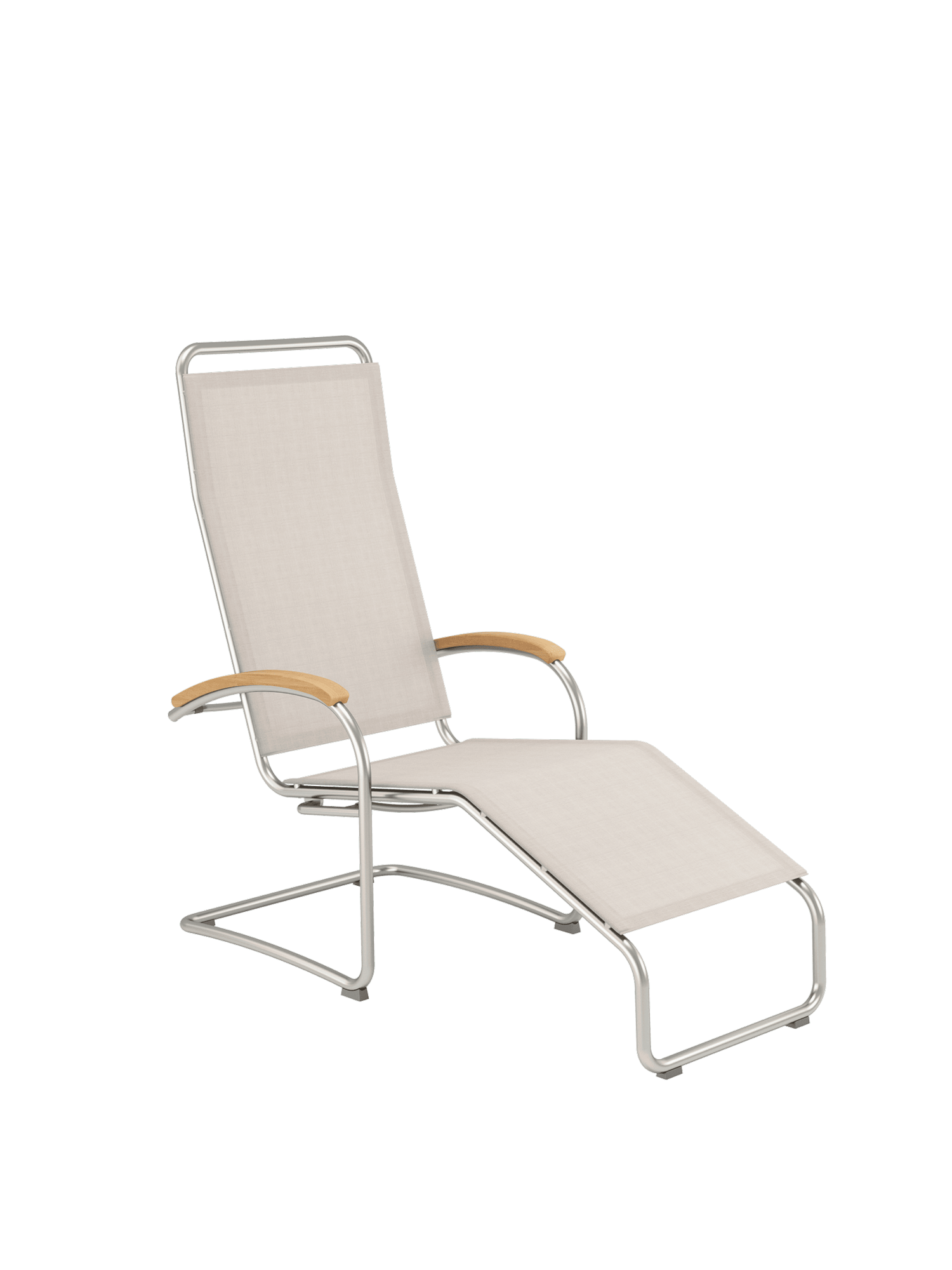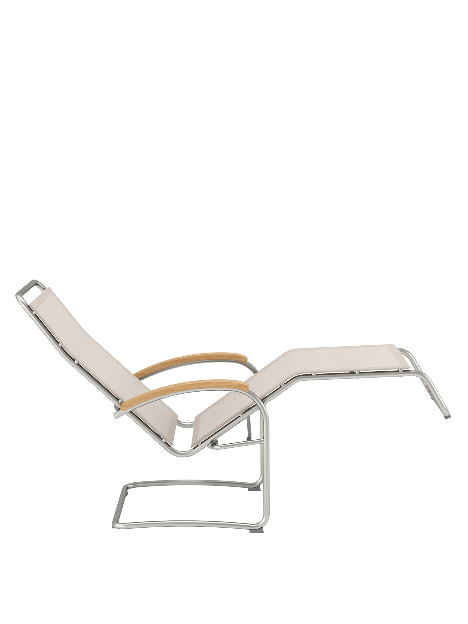Elegant metal and high-quality polymer sling complement each other perfectly in the Bauhaus inspired lounge chair, and create its lightweight appearance. Thanks to its ergonomic adaptability, it is comfortable with or without upholstery. The fabric is distinguished by a pleasantly natural feel. Its natural colour tone, a mixture between soft brown and pale beige, contributes to the elegance of the furniture. The tubular frame made of stainless steel is a match for all weather.