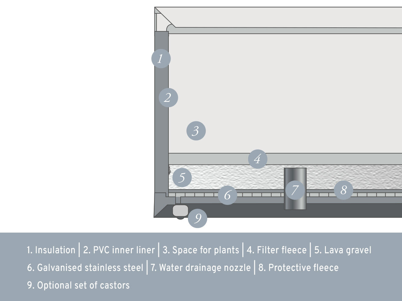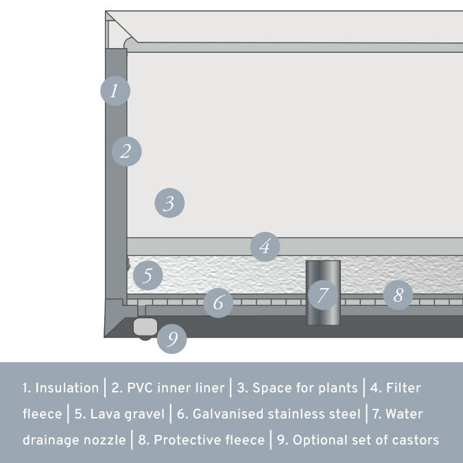 The high functionality of the weather-resistant planters becomes clear in cross-section: