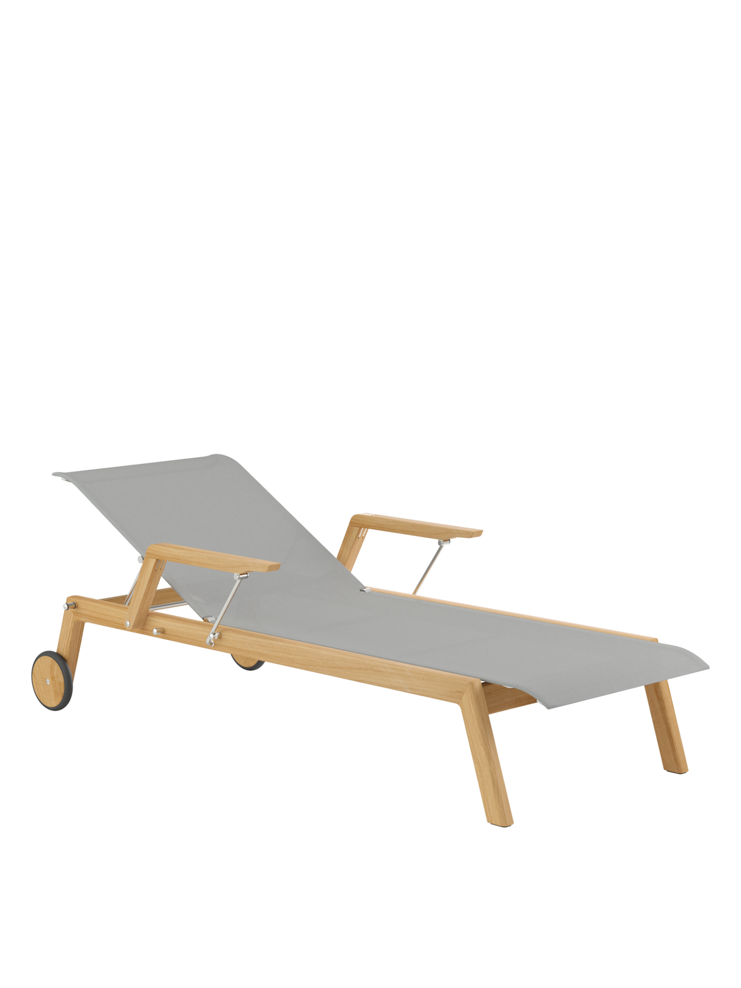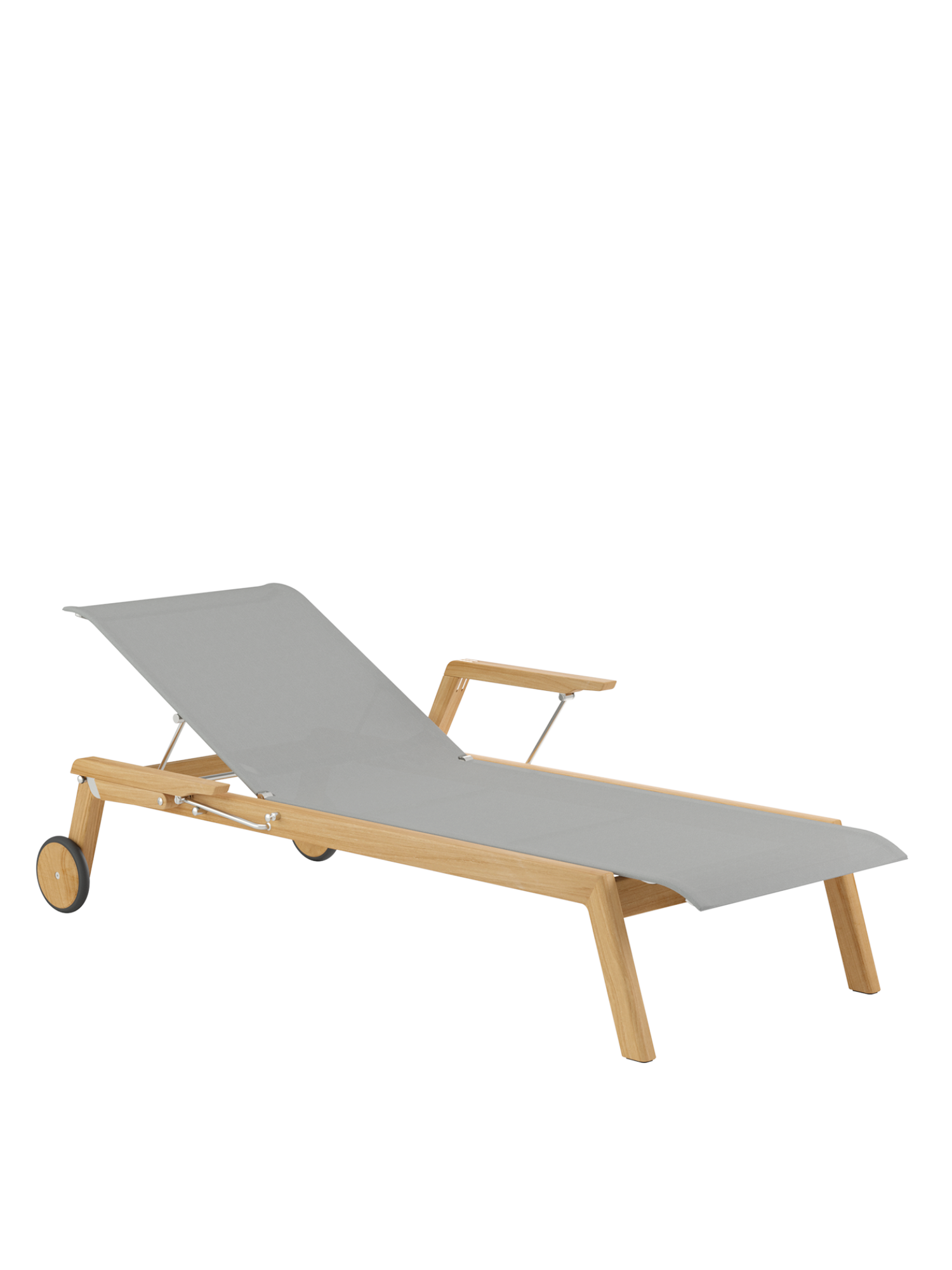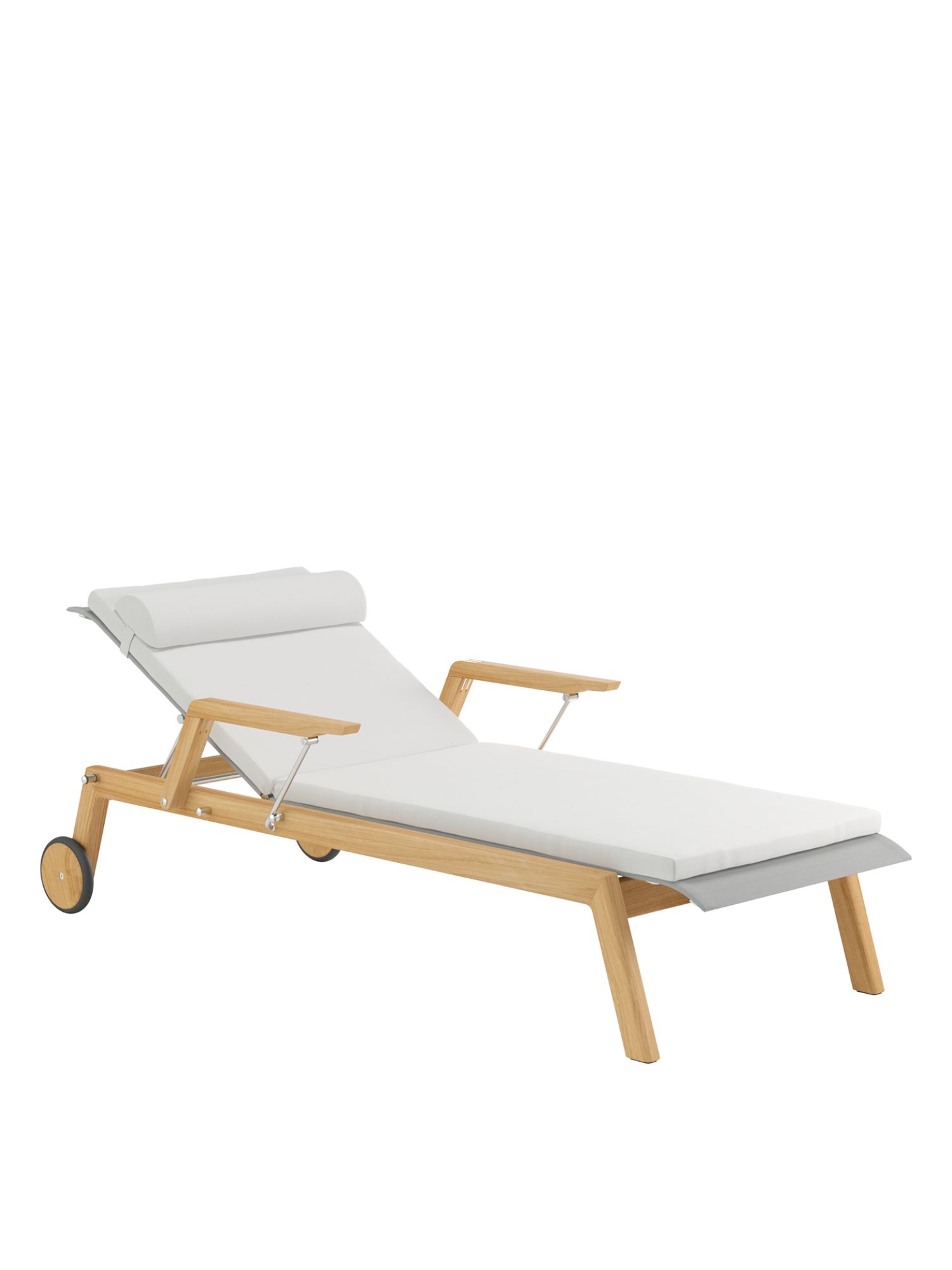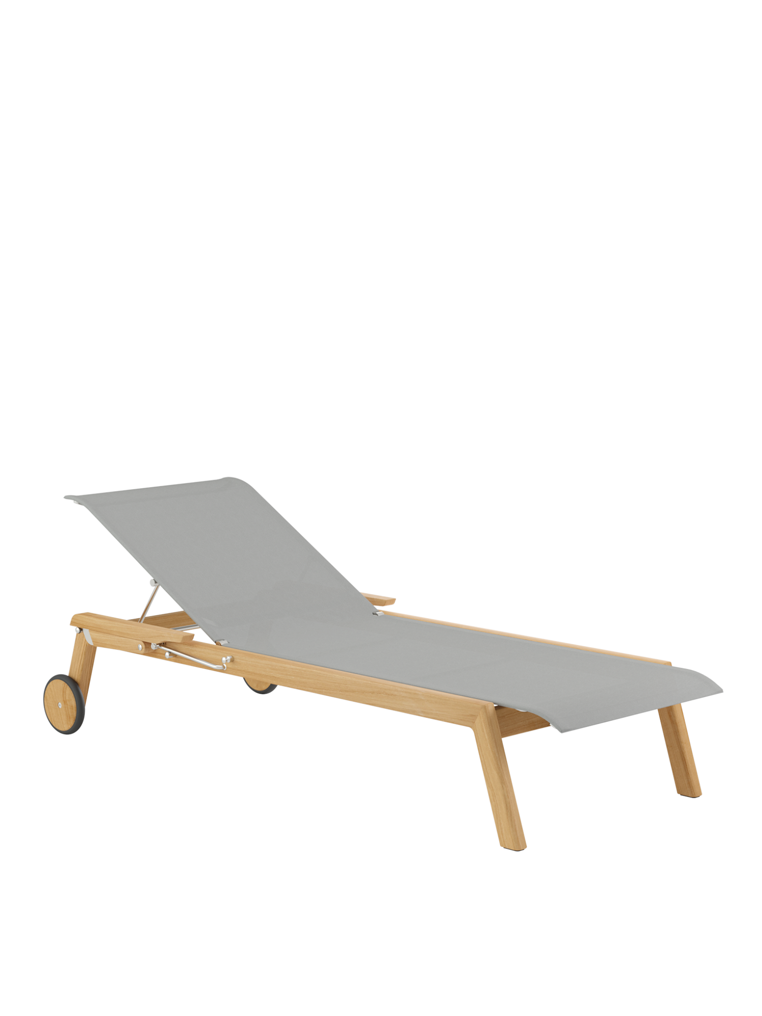 Clean, smoothly rounded edges characterise the teak frame, and the polymer covering is held in elements made of brushed stainless steel. Minimalist aesthetic meets maximum comfort.