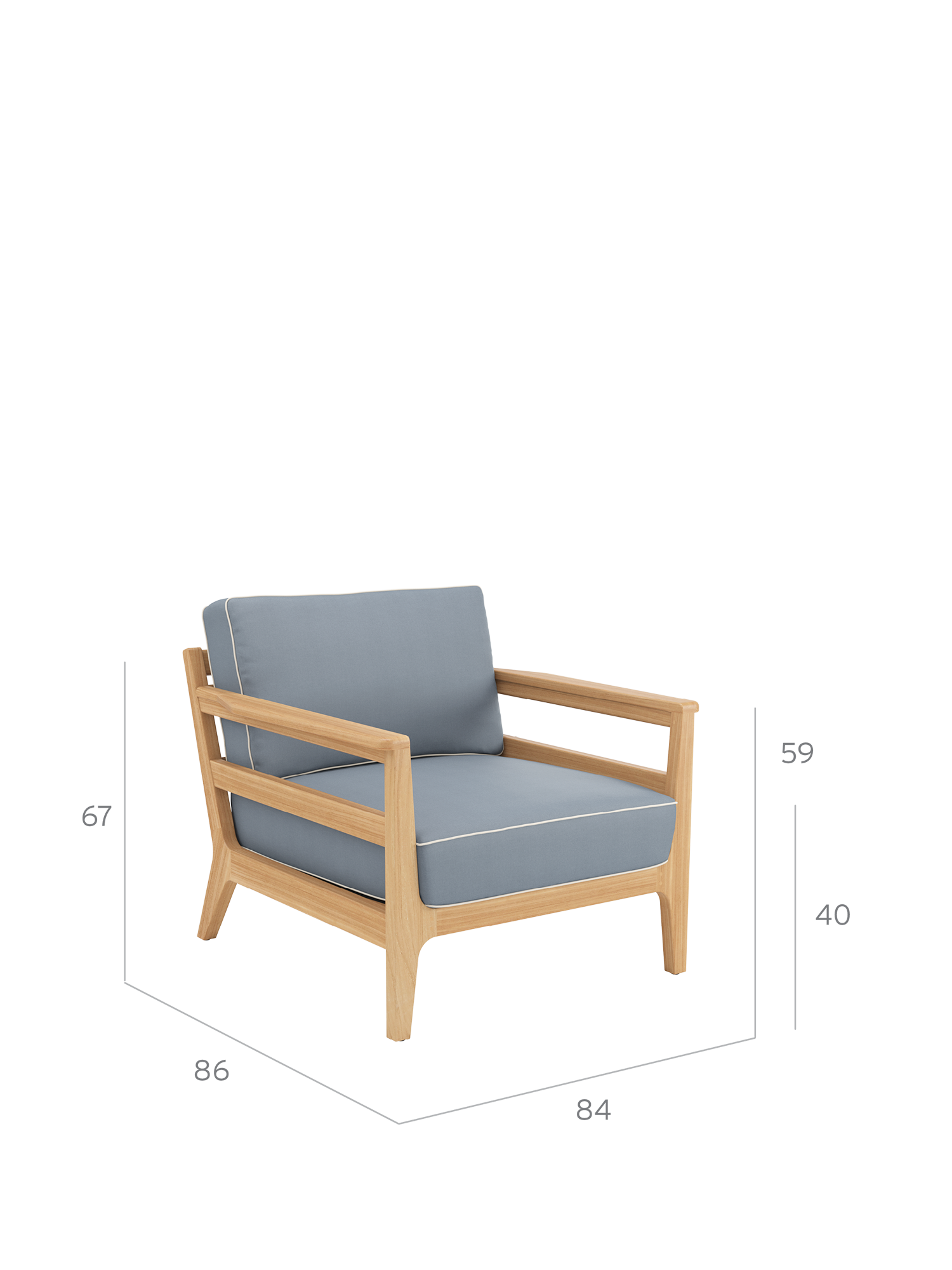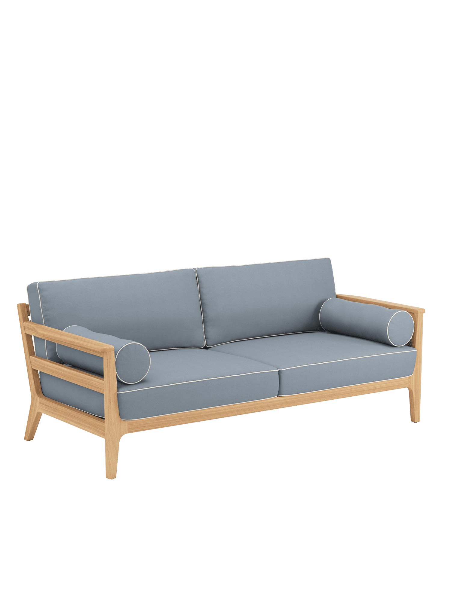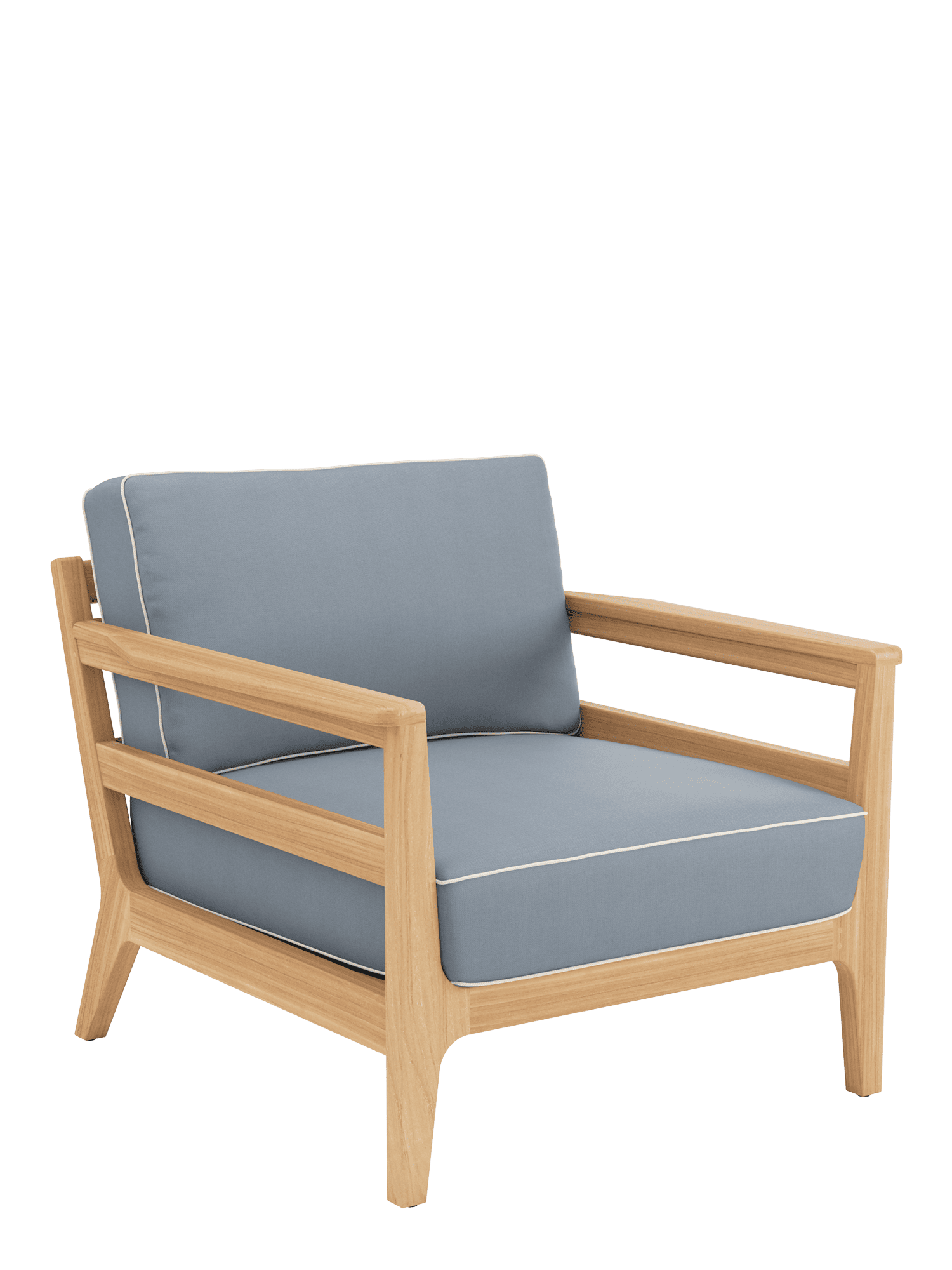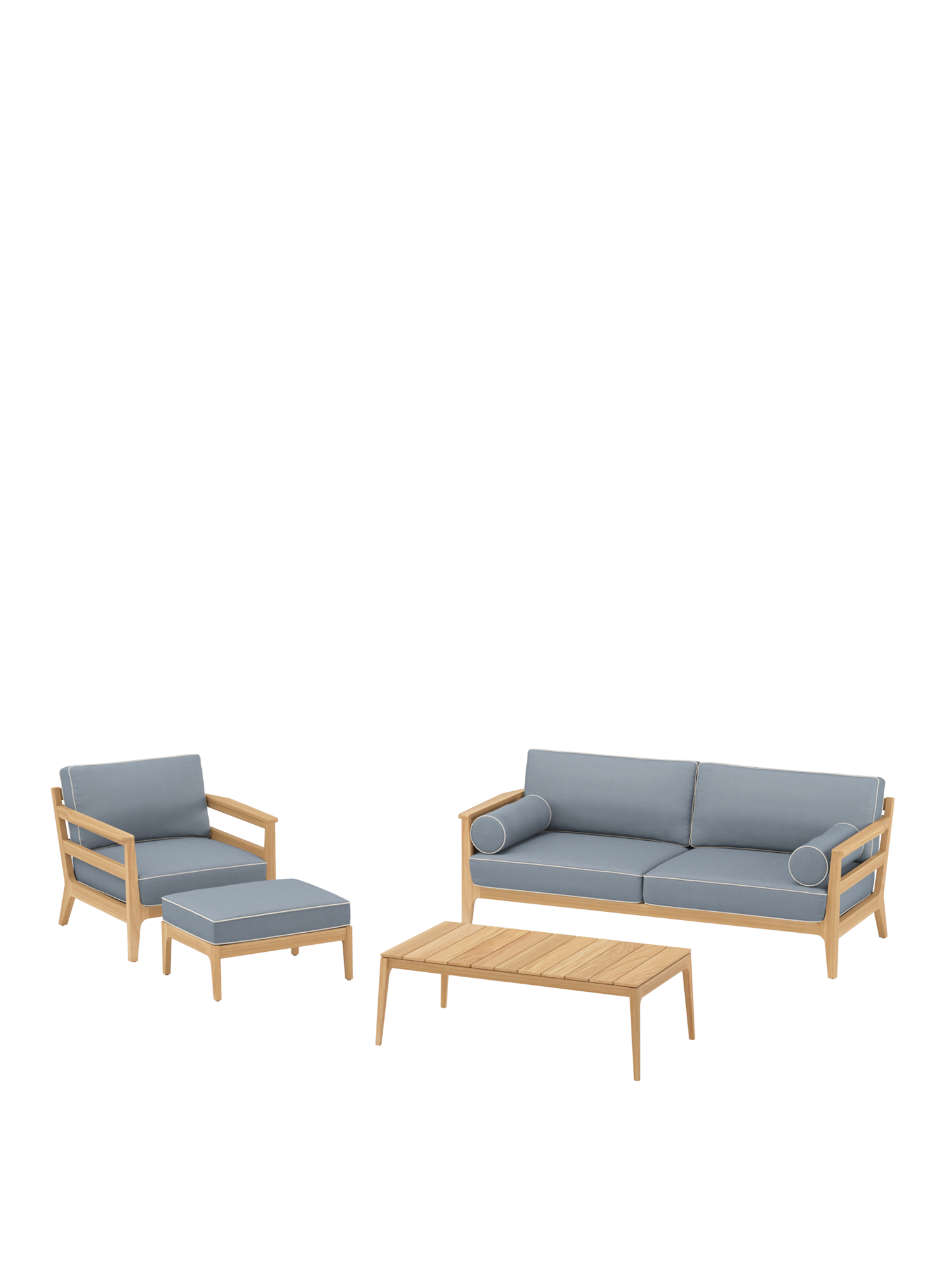 The upholstered furniture of the Newhaven collection, with frames made of high-quality teak wood, is sumptuously inviting – irrespective of its surroundings. Whether placed in the garden, on the terrace or in the conservatory, elaborate piping is a striking feature of the upholstery and always attracts attention. The coffee table makes a highly practical centrepiece for the lounge group.