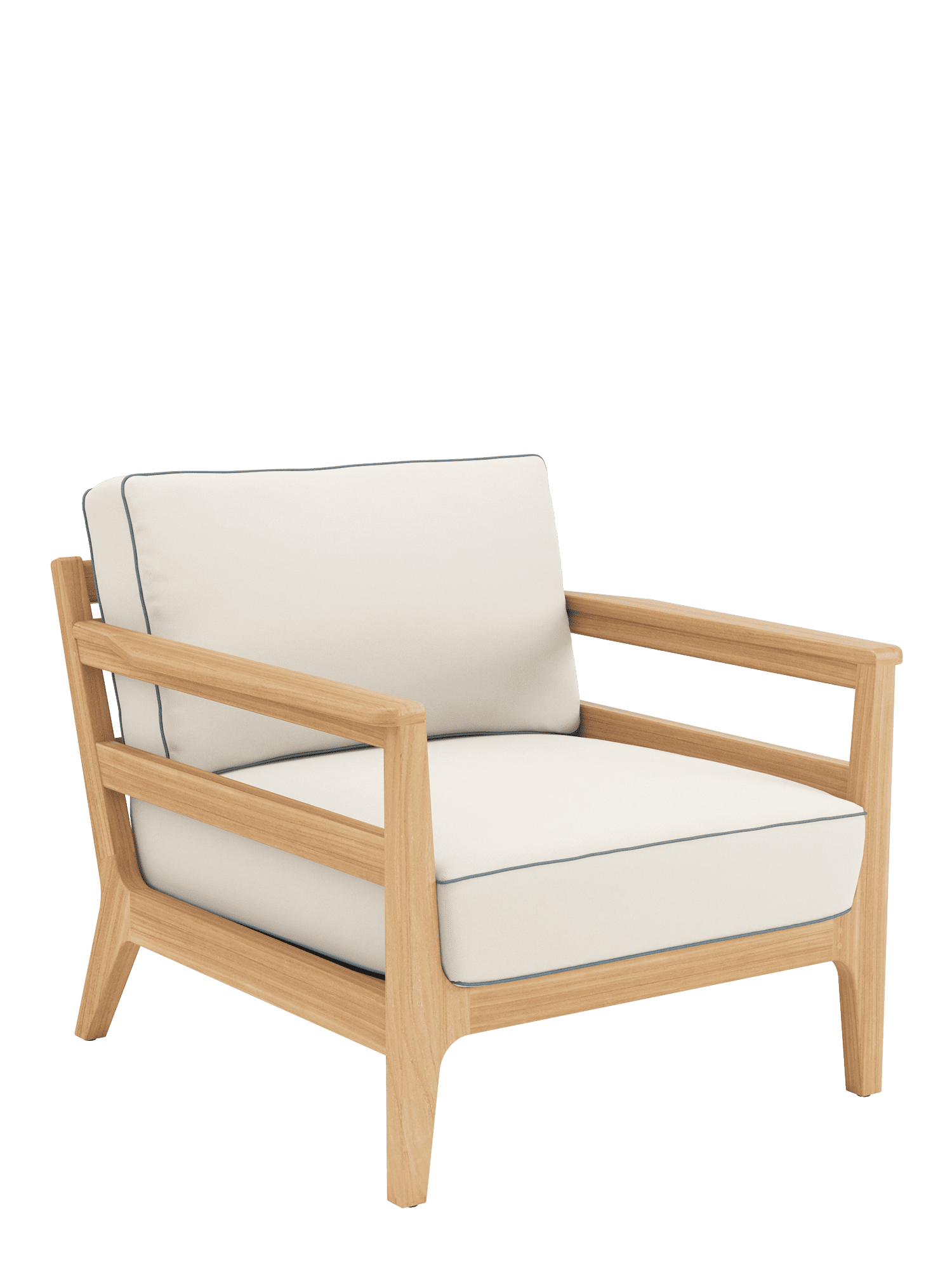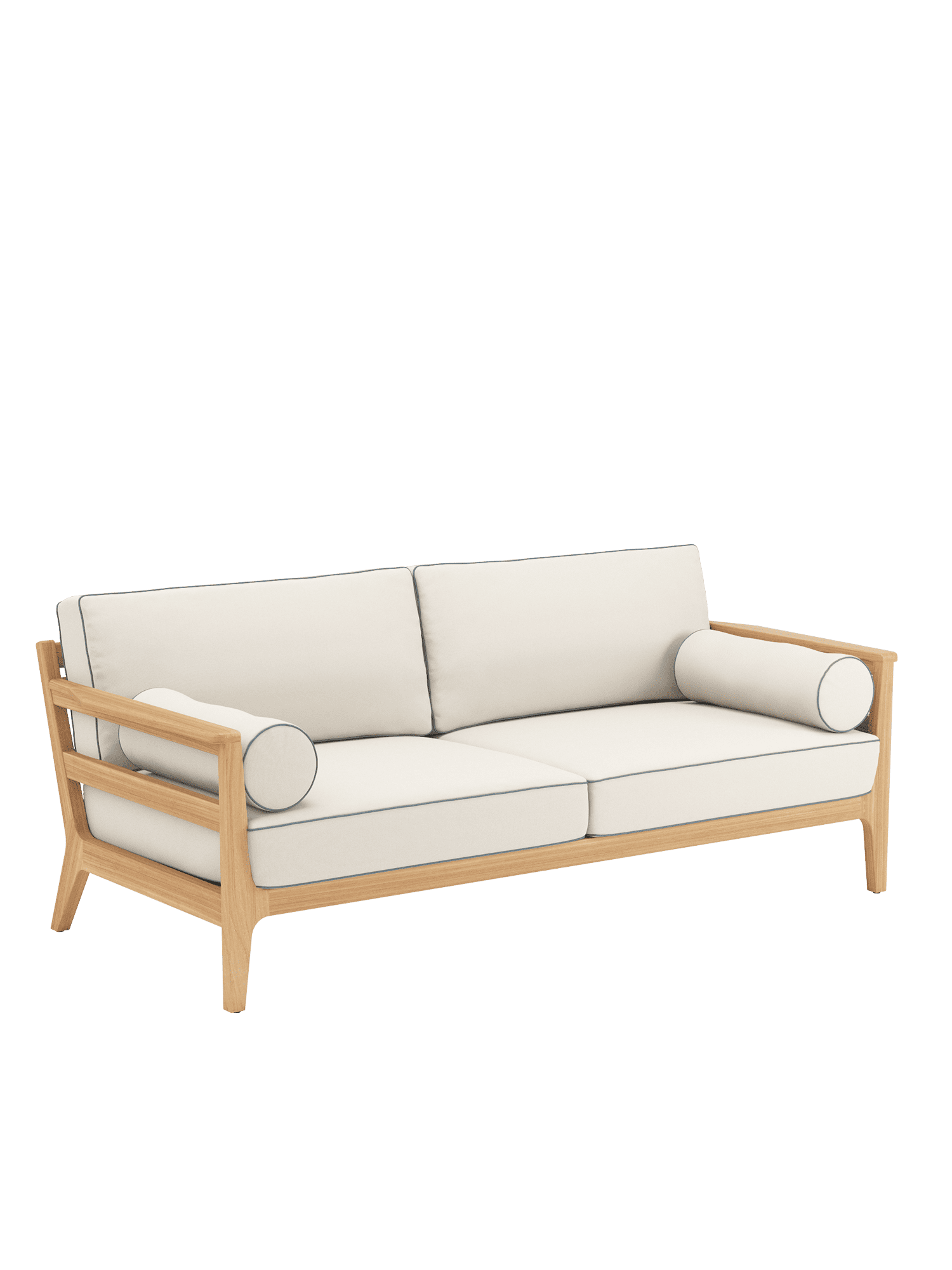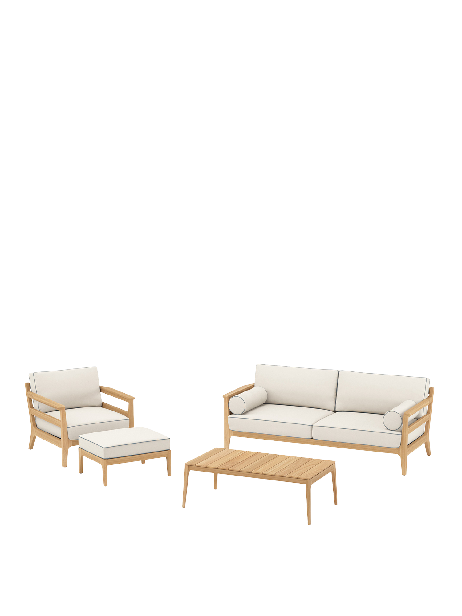 The upholstered furniture of the Newhaven collection, with frames made of high-quality teak wood, is sumptuously inviting – irrespective of its surroundings. Whether placed in the garden, on the terrace or in the conservatory, elaborate piping is a striking feature of the upholstery and always attracts attention. The coffee table makes a highly practical centrepiece for the lounge group.
