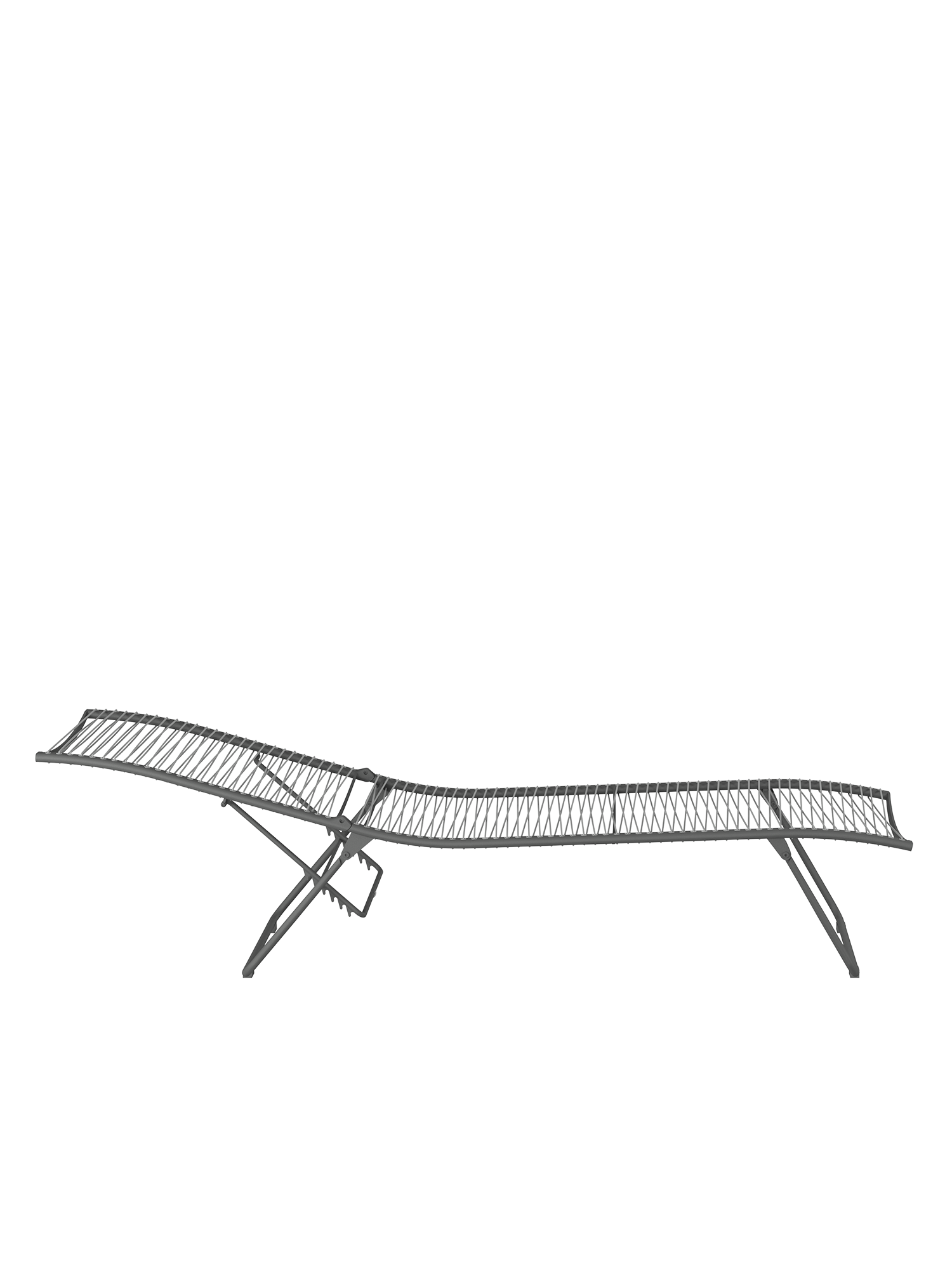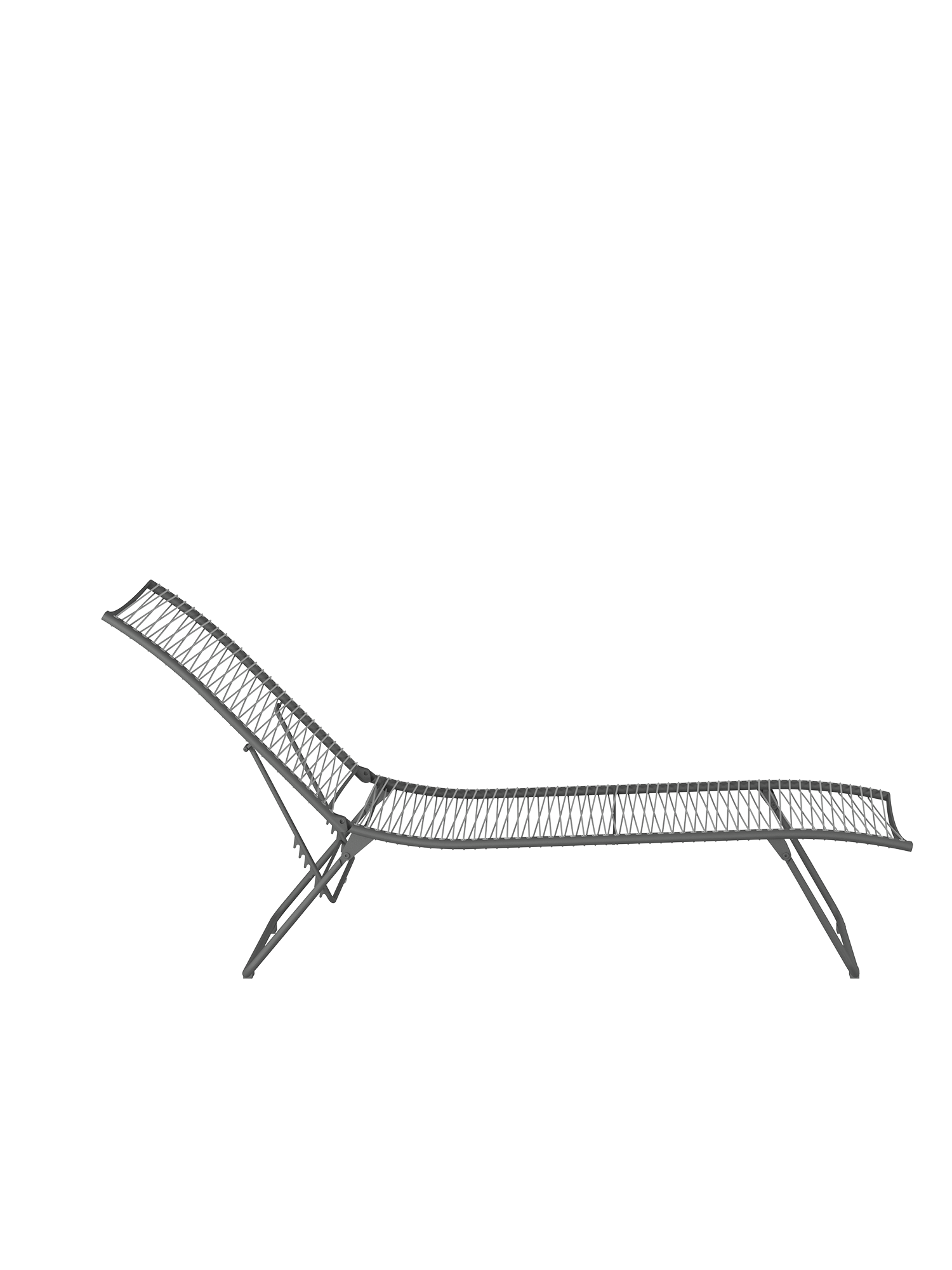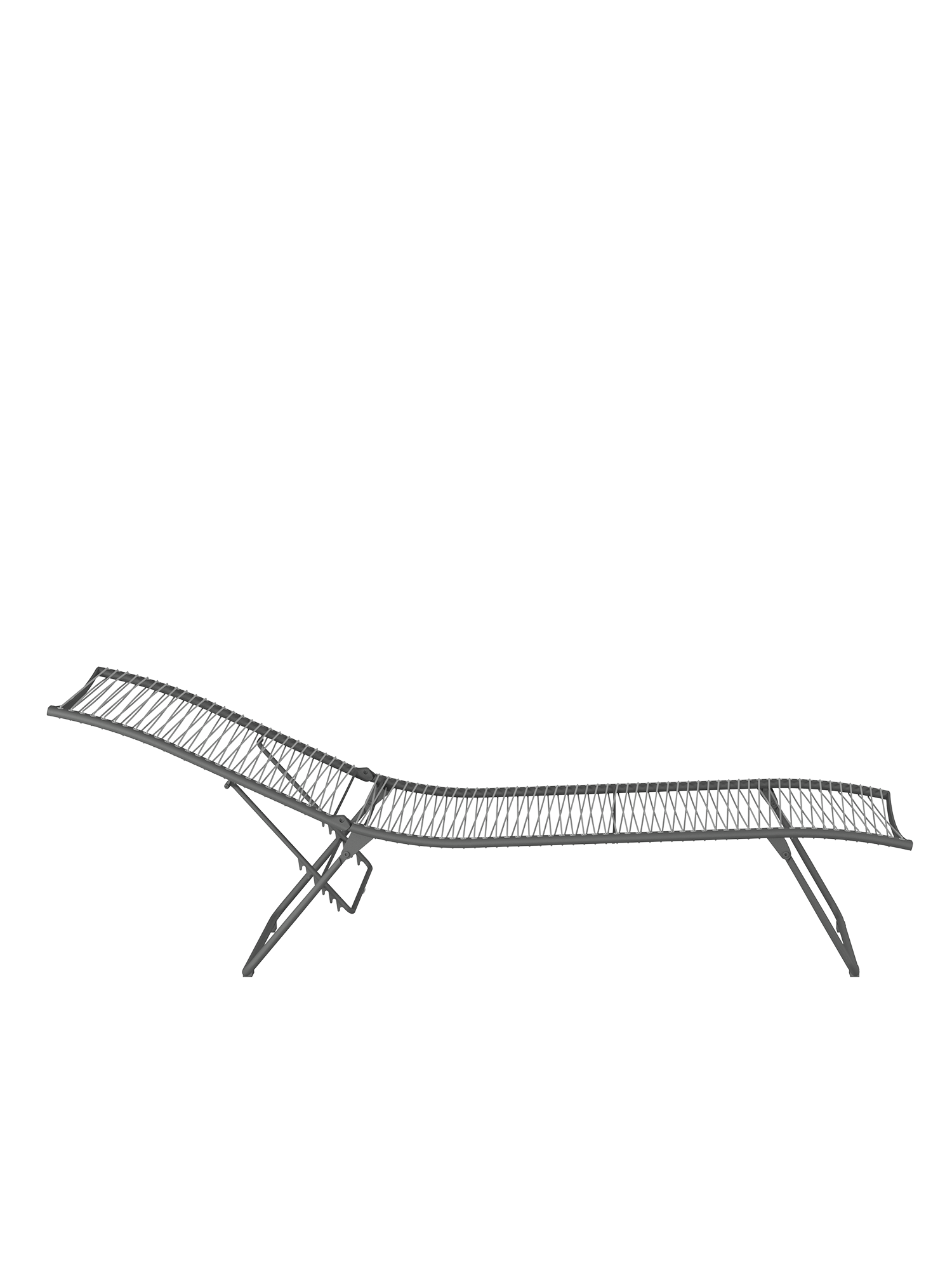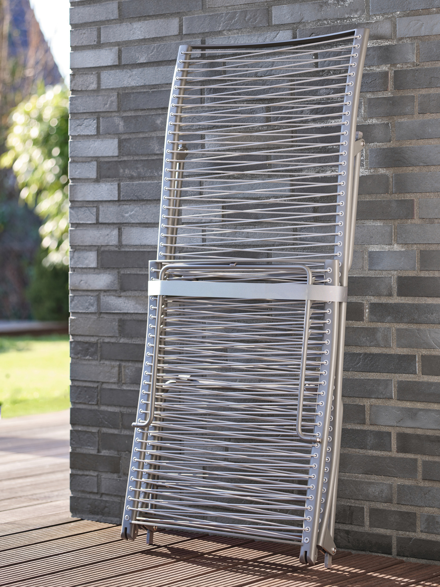 This lounger originated in the flow of a single curved line from the pen of the designer. The idea of it being foldable makes it perfect. The resilient, synthetic lacing on an elegant, powder-coated stainless steel frame comfortably adapts to the contours of the body. The backrest can be adjusted to six positions, making sunbathing face down possible.