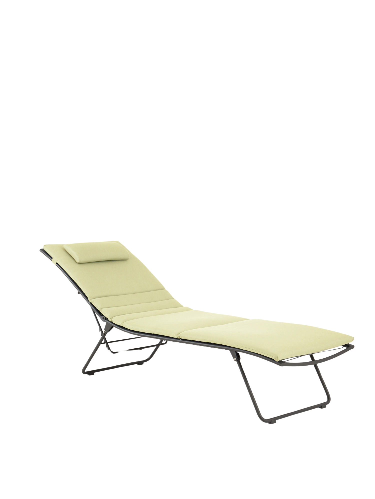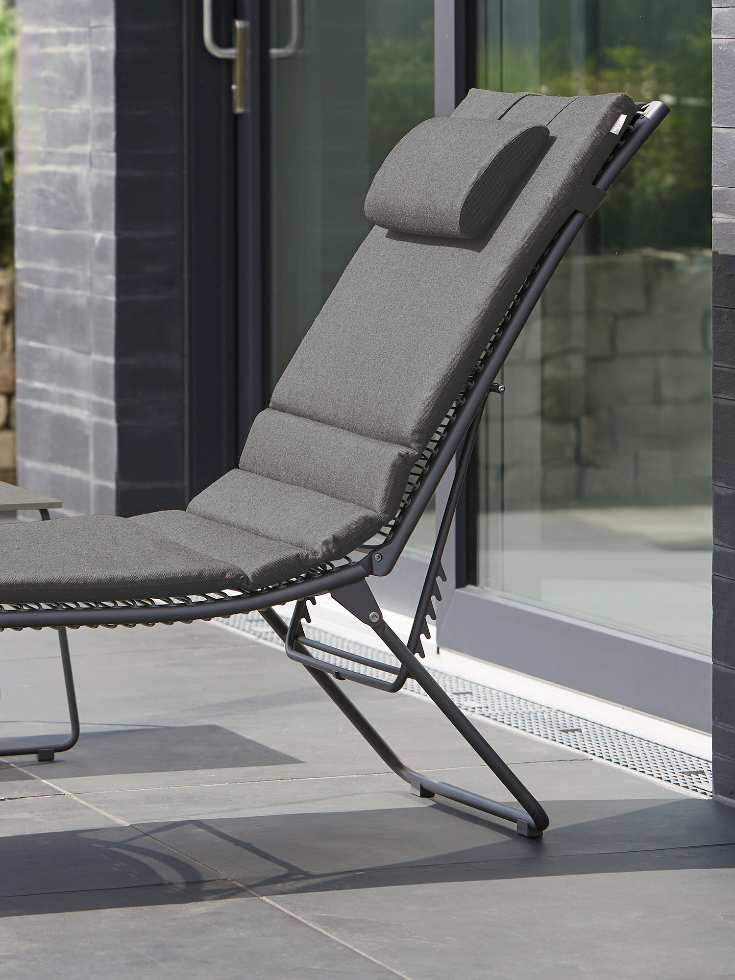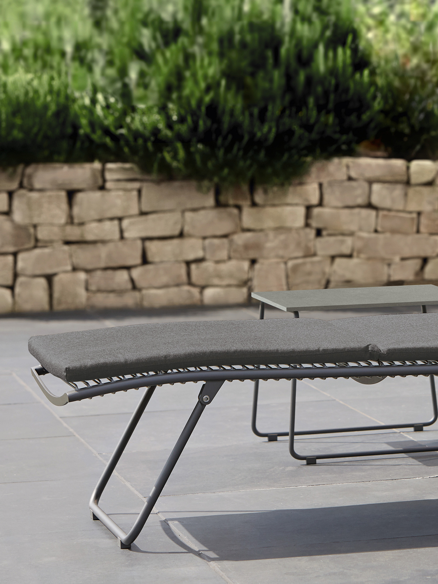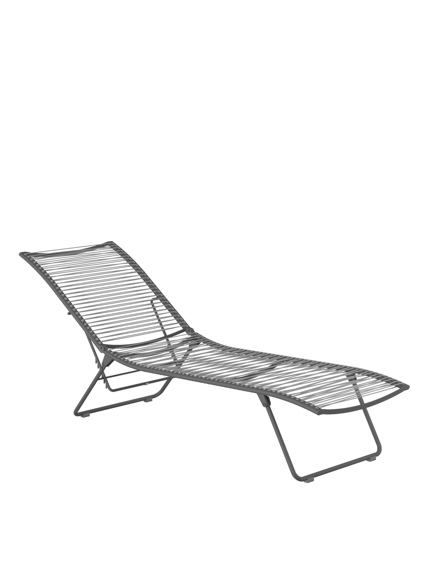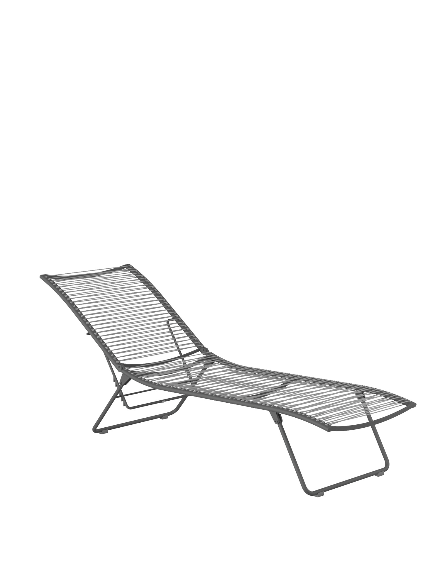 This lounger originated in the flow of a single curved line from the pen of the designer. The idea of it being foldable makes it perfect. The resilient, synthetic lacing on an elegant, powder-coated stainless steel frame comfortably adapts to the contours of the body. The backrest can be adjusted to six positions, making sunbathing face down possible.