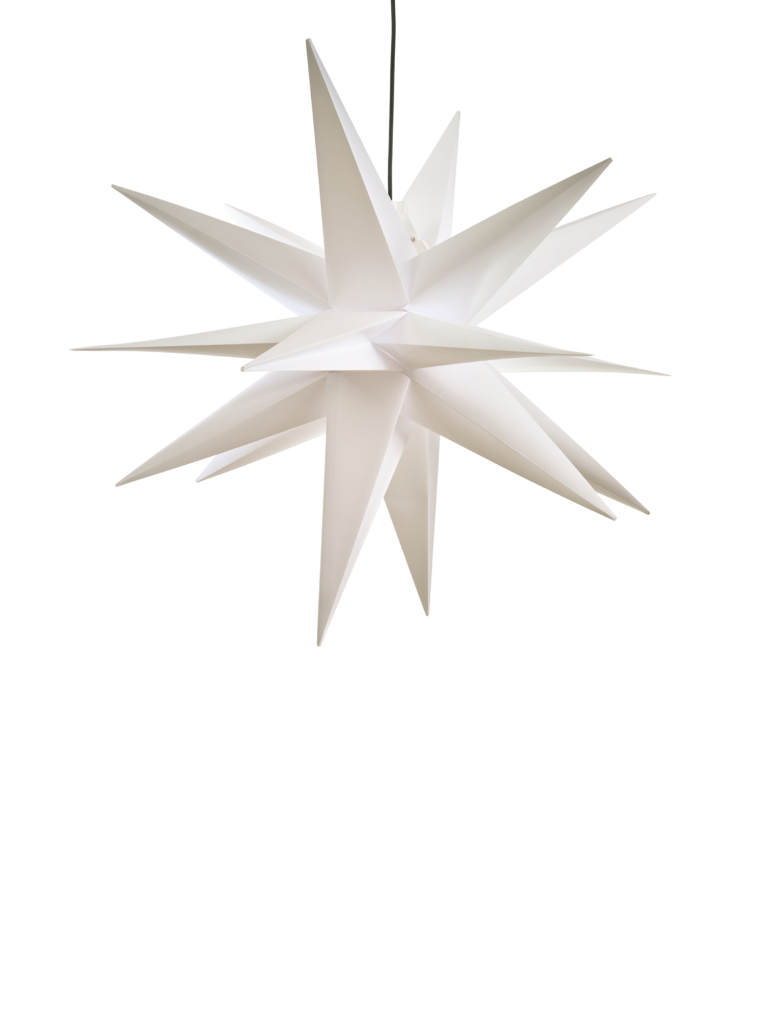 Luminous celestial bodies for festive moments: conjure up an atmospheric glow with classic stars made from weatherproof materials. Available in different sizes, they are equally lovely as eye-catchers for modern outdoor areas as well as intimate living spaces.. A transformer, 4-metre black cable and E14 socket are included. We recommend using 1 x 4.5 W LED bulb, E14, 2700 K warm white, 470 lumens, teardrop shape.