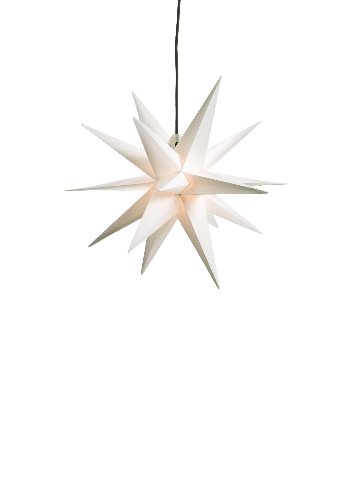 Luminous celestial bodies for festive moments: conjure up an atmospheric glow with classic stars made from weatherproof materials. Available in different sizes, they are equally lovely as eye-catchers for modern outdoor areas as well as intimate living spaces.. A transformer, 4-metre black cable and E14 socket are included. We recommend using 1 x 4.5 W LED bulb, E14, 2700 K warm white, 470 lumens, teardrop shape.