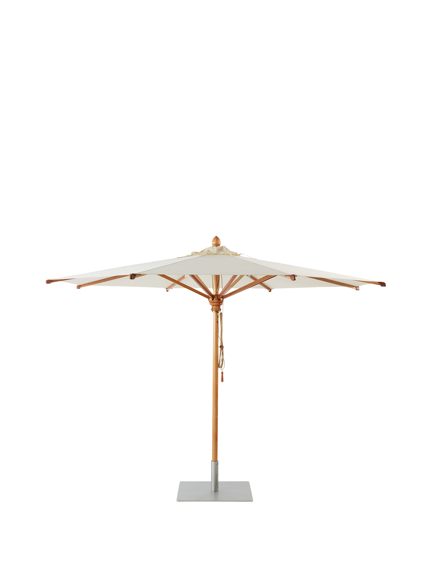 Für die Schirme der Serie Umbria ist eine Ersatzbespannung erhältlich, die Sie eigenständig austauschen können. Zum Austausch der Bespannung ziehen Sie am geschlossenen Schirm die Ledertaschen von den Streben ab. Neigen Sie den Schirm und schrauben Sie die Mastspitze ab. Dann können Sie den Stoff abziehen. Beim Wiederauflegen verfahren Sie in umgekehrter Reihenfolge.