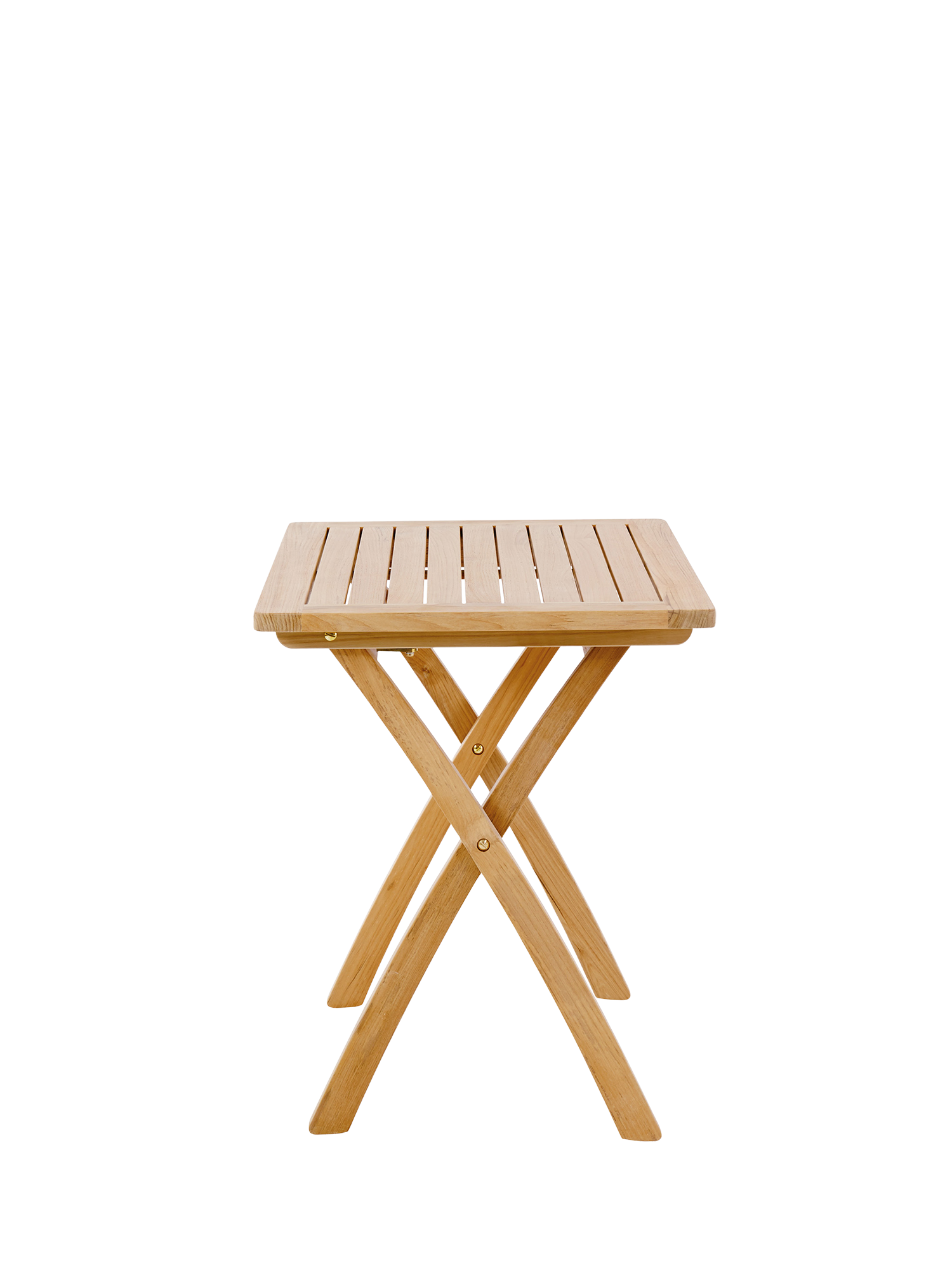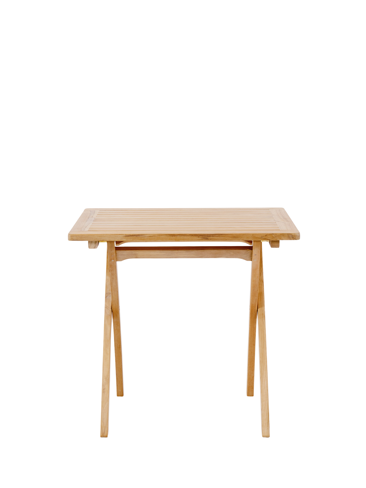 Der Folding Table aus hochwertigem Teakholz ist der ideale Tisch für gemeinsame Stunden zu zweit. An der rechteckigen Platte wird gespeist, getrunken und gespielt.