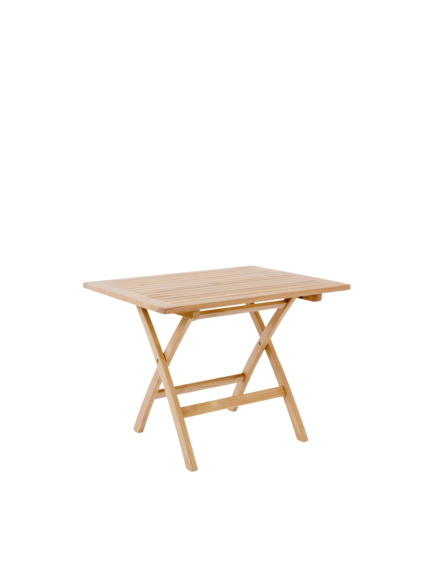 Der Folding Table aus hochwertigem Teakholz ist der ideale Tisch für gemeinsame Stunden in kleineren Runden. An der rechteckigen Platte wird gespeist, getrunken und gespielt – mit bis zu vier Personen.