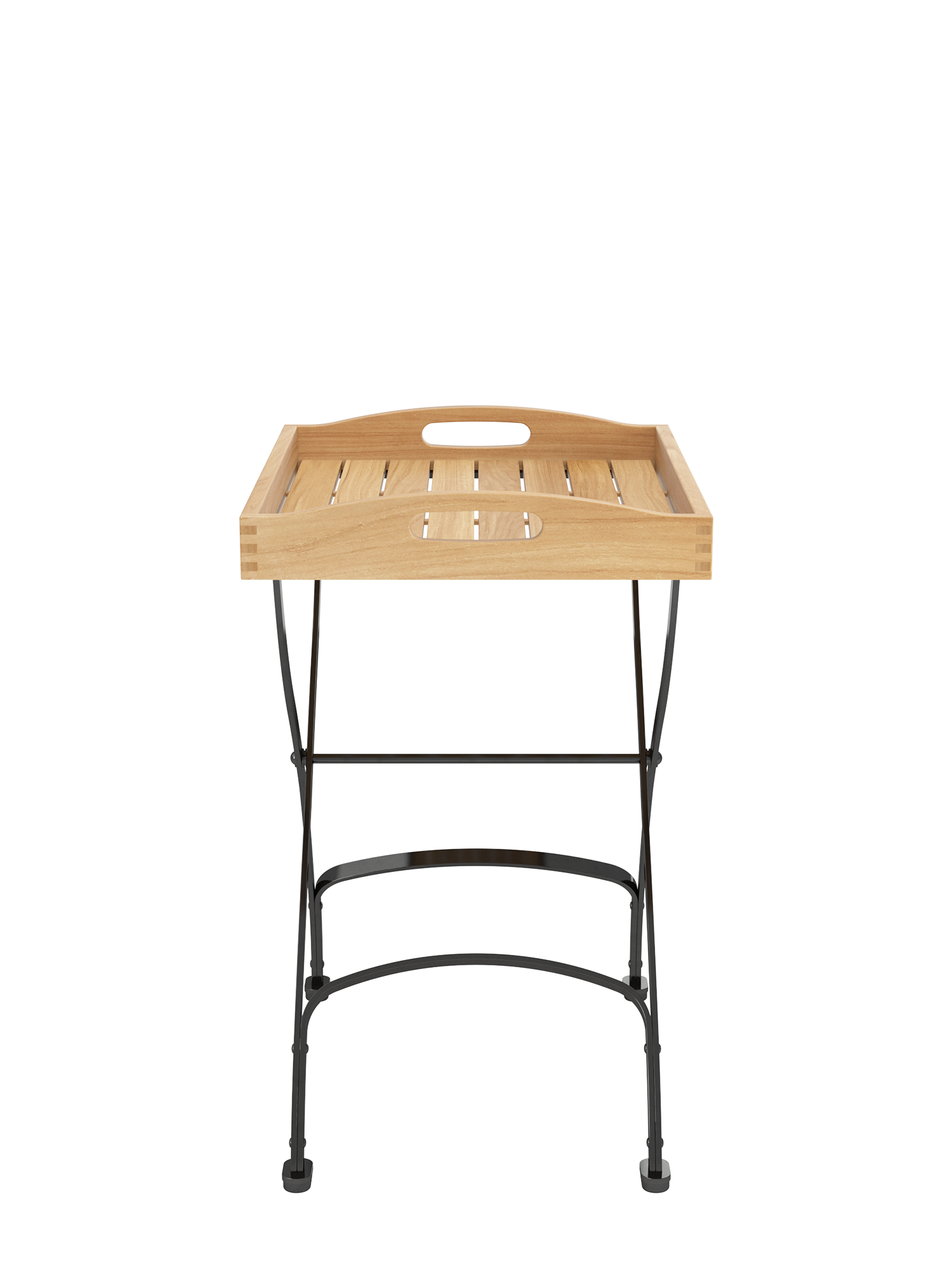 Er versieht seinen Dienst mal als Beistelltisch, mal als Portable: Der klappbare Butler’s Tray zeigt sich angenehm flexibel.