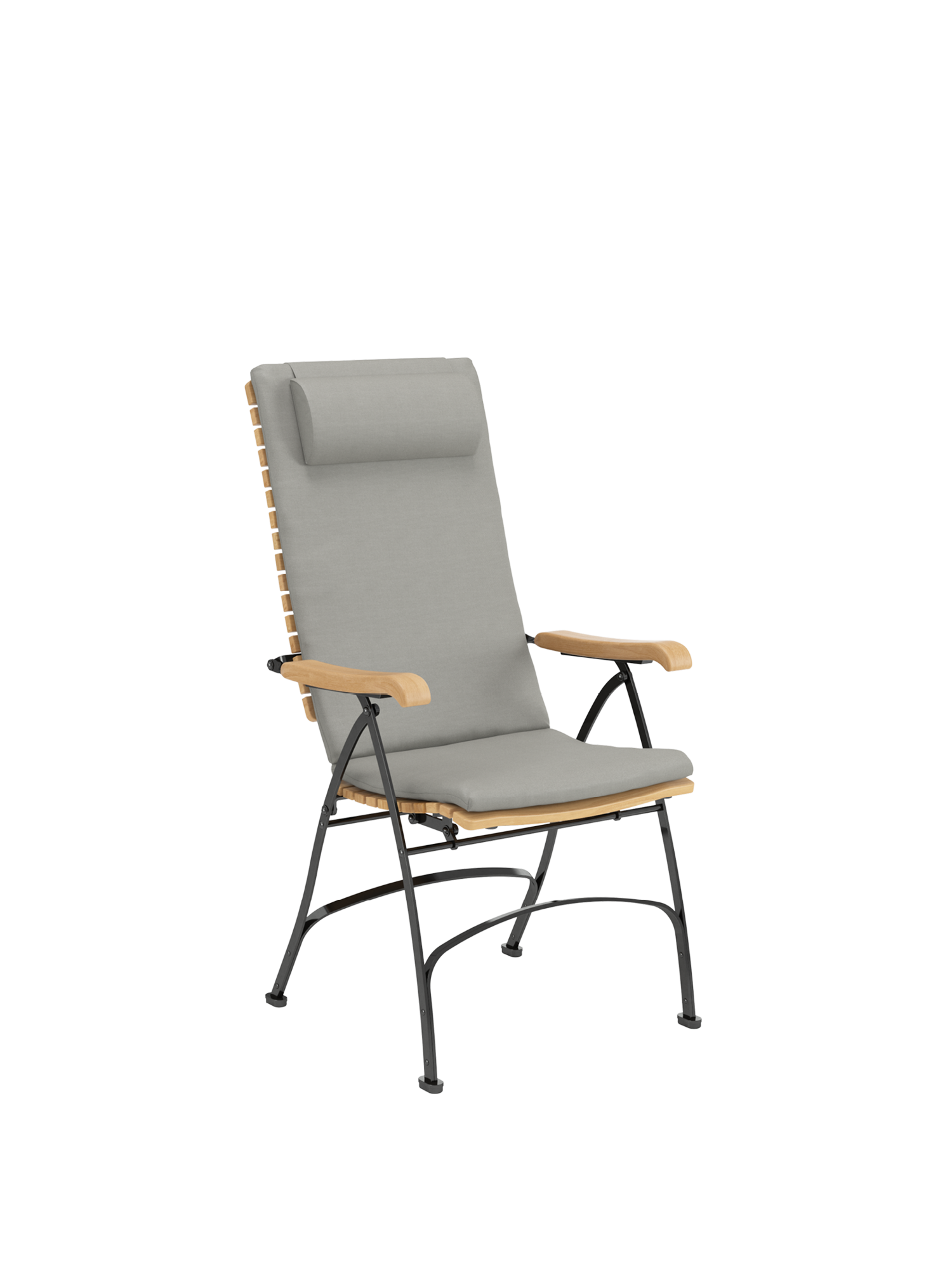 Mit extra hoher Lehne und dreifach verstellbarem Rückenteil bringt der Recliner willkommenen Komfort direkt an den Tisch. In illustrer Runde lehnt man sich nach dem Essen einfach zurück und geniesst die Gesellschaft. Armlehnen aus Plantagenteak schmeicheln der Hand und entlasten den Körper. Auflagen in verschiedenen Farbtönen erhöhen noch die Bequemlichkeit der Möbel und setzen feine Akzente.