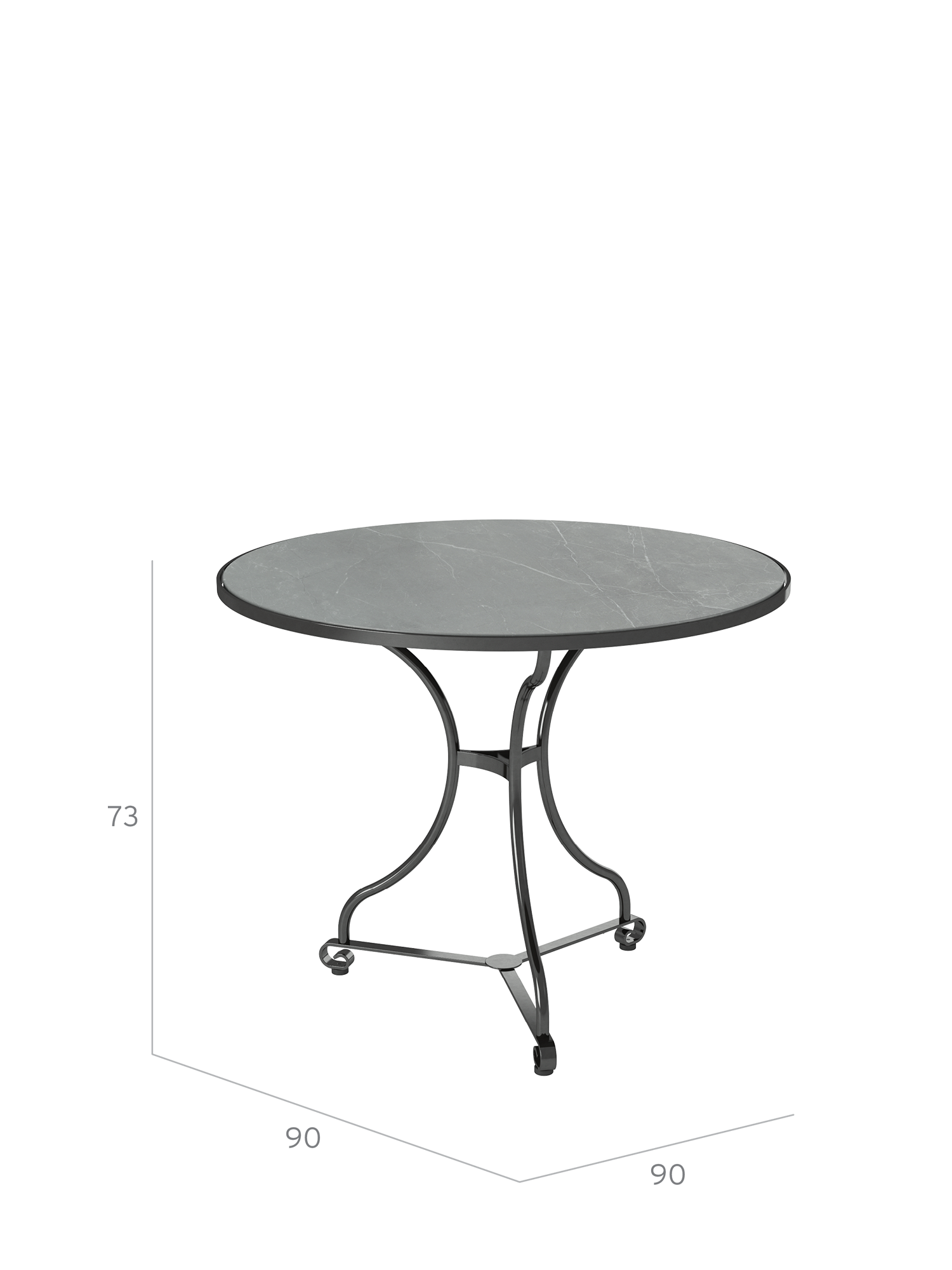 Für die Geselligkeit im kleinen Kreis oder ein Treffen in grosser Runde: Die Fontenay Tische mit einer Oberfläche aus Keramik laden mit Eleganz zur Tafel. Das Material ist frostfest, UV-beständig und unempfindlich gegen Flecken und Kratzer. Die unterschiedliche Maserung macht jeden Tisch zu einem Unikat. Alle Fontenay Tische haben ein Gestell aus verzinktem, pulverbeschichtetem Stahl, die Tischplatte wird von einem Stahlreif gefasst. Fussgleiter aus abriebfestem Kunststoff gleichen Unebenheiten aus und schützen wertvolle Böden.