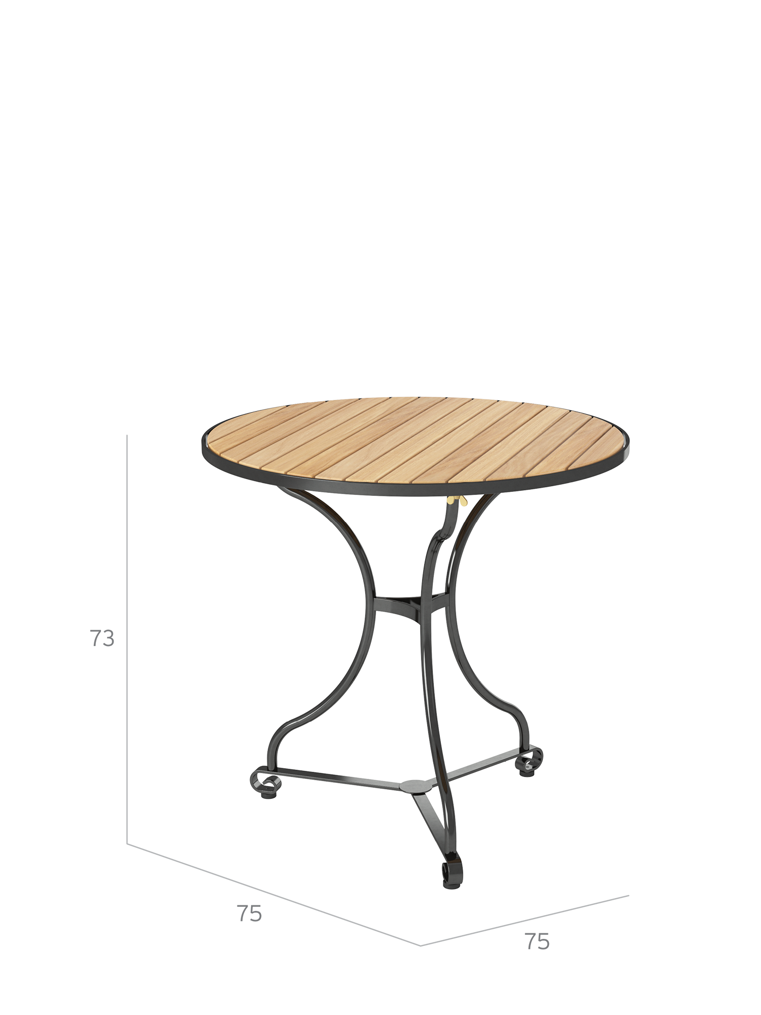 Für die Geselligkeit im kleinen Kreis: Die Fontenay Tische mit einer Oberfläche aus Plantagenteak laden mit selbstverständlicher Eleganz zur Tafelrunde. Das hochwertige Material widersteht problemlos Regen und Sonneneinstrahlung, Temperaturschwankungen und Frost. Im Laufe der Zeit entwickelt das Holz durch Witterungseinflüsse eine natürliche silbergraue Patina. Alle Fontenay Tische haben ein Gestell aus verzinktem, pulverbeschichtetem Stahl, die Tischplatte wird von einem Stahlreif gefasst. Fussgleiter aus abriebfestem Kunststoff gleichen Unebenheiten aus und schützen wertvolle Böden.