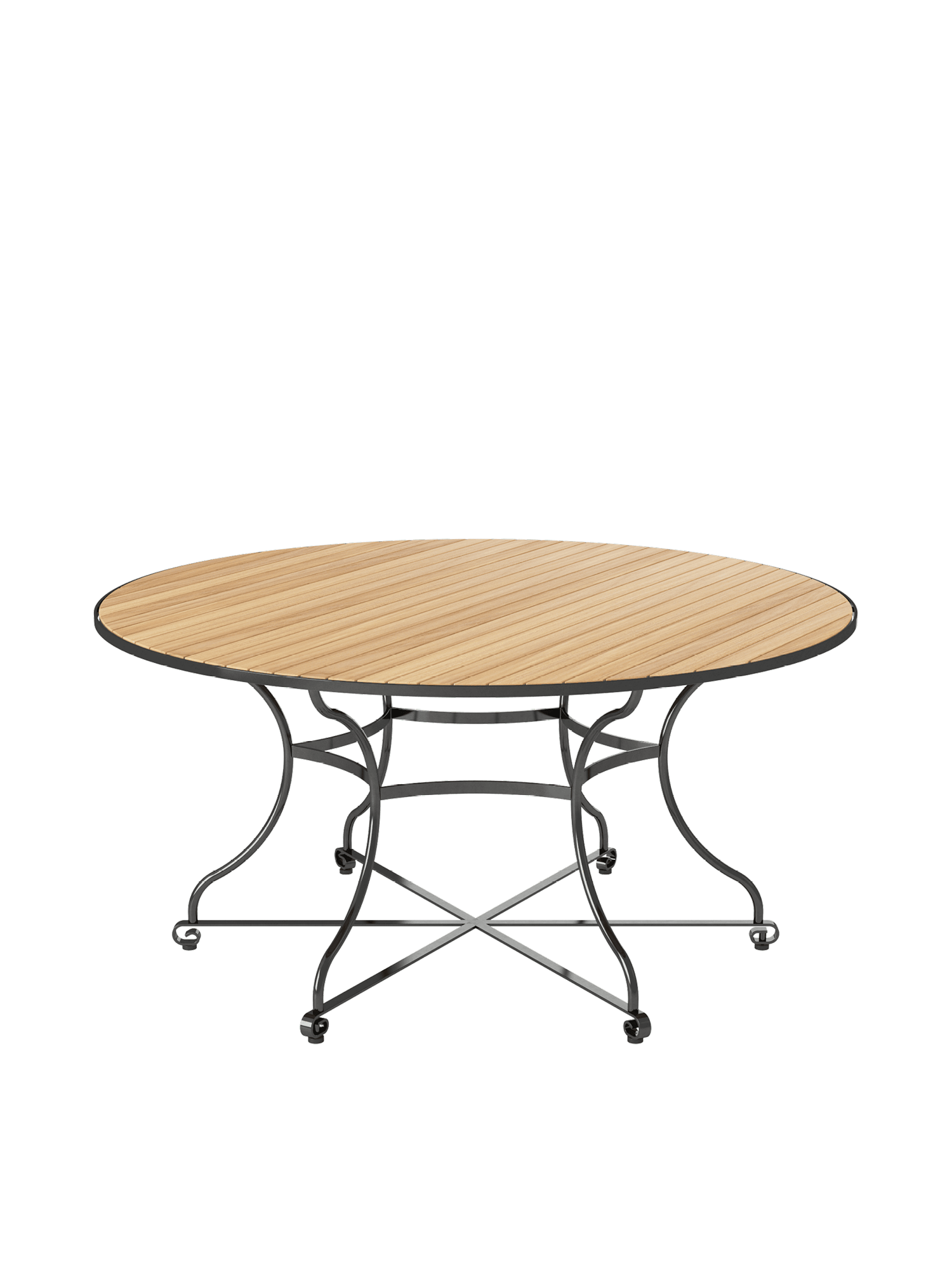 Präzise bearbeitete Leisten aus massivem Plantagenteak prägen die edle Anmutung der klassischen Gartentische der Fontenay Kollektion in verschiedenen Grössen.
