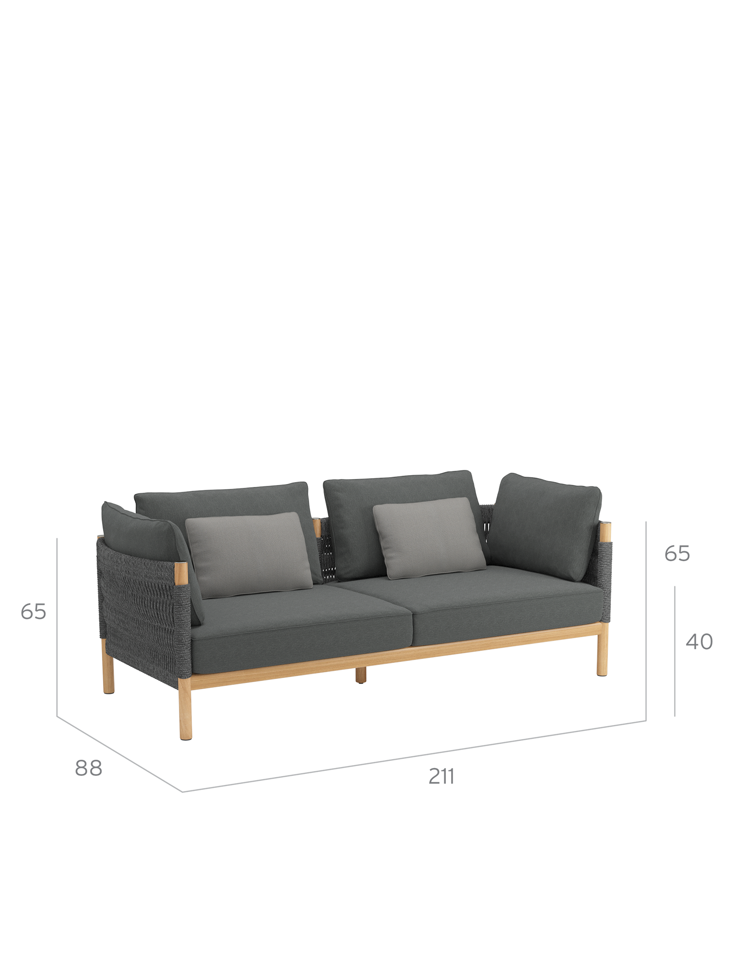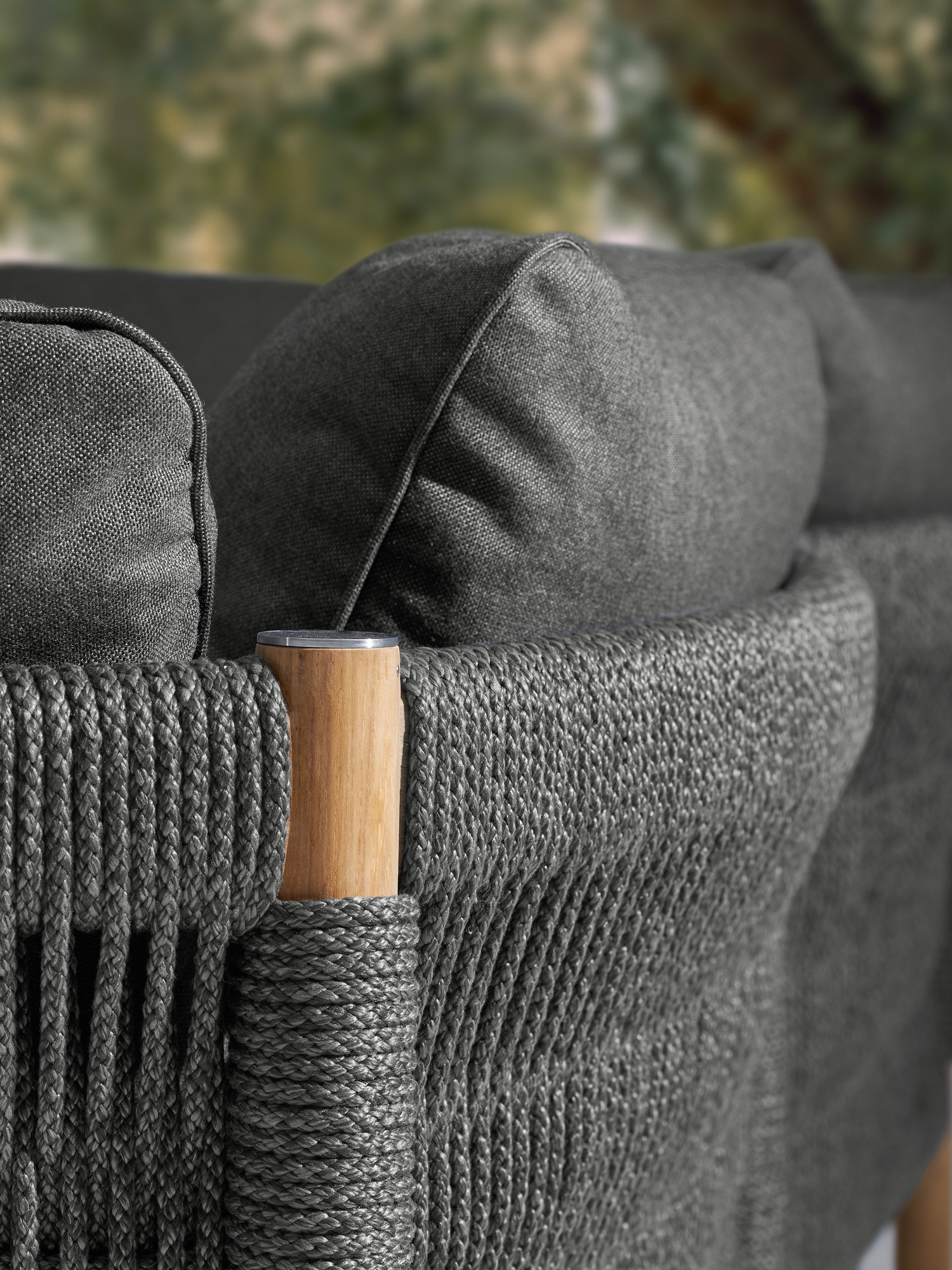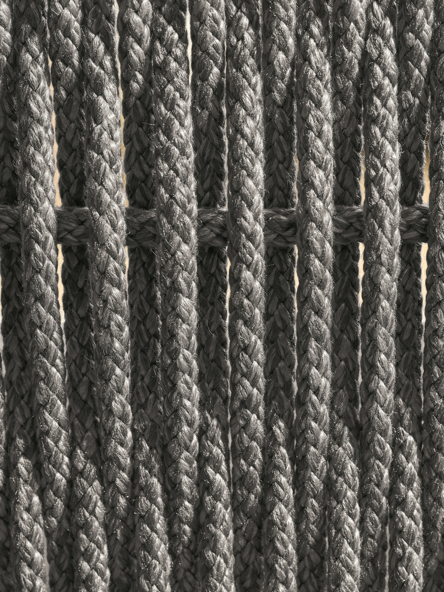 Le bois de teck y assume la partie classique dans des silhouettes finement façonnées au tour. Des capuchons en acier inoxydable brossé mat y ajoutent des touches sobres. Un cordon résistant aux intempéries en Anthracite ou Beige précieux, travaillé à la main dans un tressage aussi remarquable que souple, affiche une élégance novatrice. Le matériau de haute qualité est en polypropylène avec une âme en polyester.