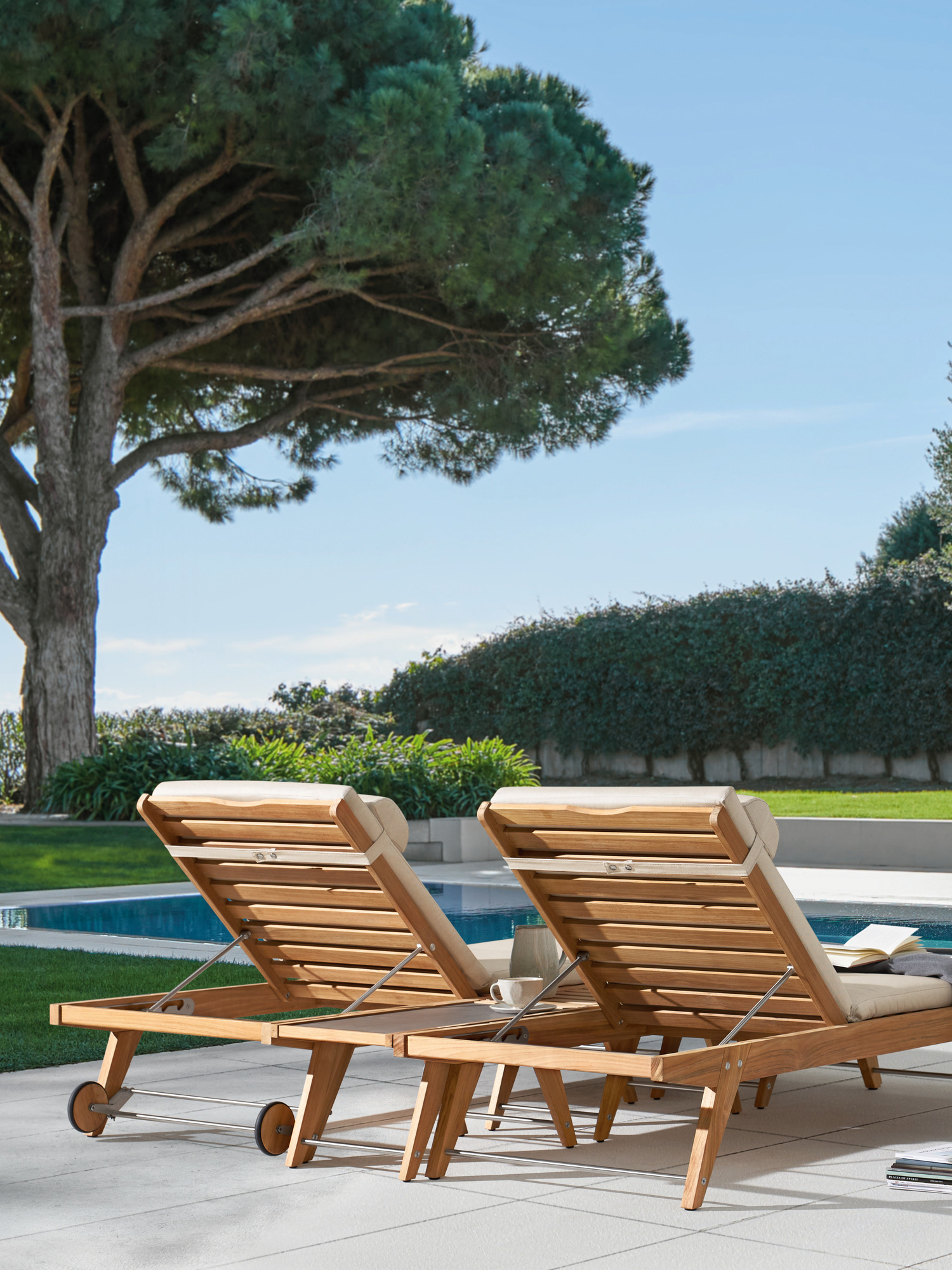 Grâce à un jeu de roulettes supplémentaires, la chaise longue Doppia peut être déplacée sans effort jusqu'à l'endroit souhaité. Les roulettes seront tout simplement emboîtées.
