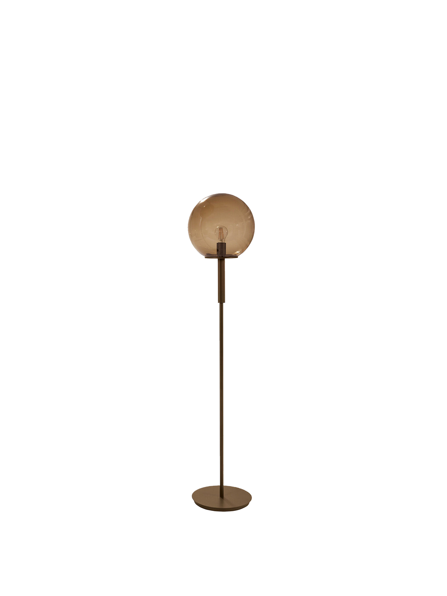 Les matériaux nobles des luminaires Lumio font référence aux formes classiques et les interprètent de manière contemporaine. L'élément rainuré sous le corps en verre s'inspire d'une colonne corinthienne, le métal de couleur bronze dans lequel il est fabriqué lui confère une modernité presque sobre. La douille et l'ampoule apparaissent délibérément dans la coupole en verre, dont le brun fumé éclaire l'espace environnant de manière évocatrice.