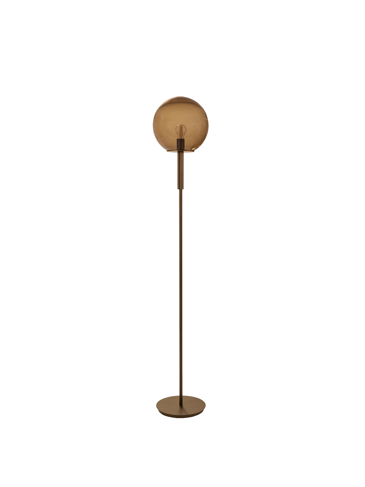 Ce lampadaire haut combine le métal et le verre dans des tons chauds de bronze et de brun. Son design marquant s'intègre dans tous les espaces de vie, entre le salon et la chambre à coucher.