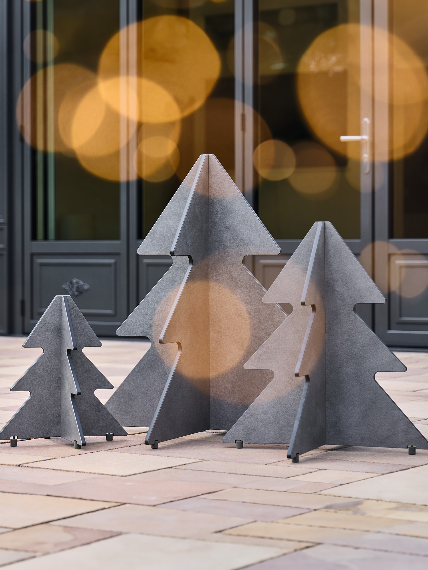 Fabriqués de manière écologique à partir de chutes issues de la production de meubles, ces sapins stylisés séduisent par leur beauté festive pendant la période de Noël, mais aussi tout le reste de l'année grâce à un astucieux mécanisme d'emboîtement. Les deux panneaux en résine synthétique peuvent être montés et démontés sans effort et se rangent avec un minimum d'encombrement.
