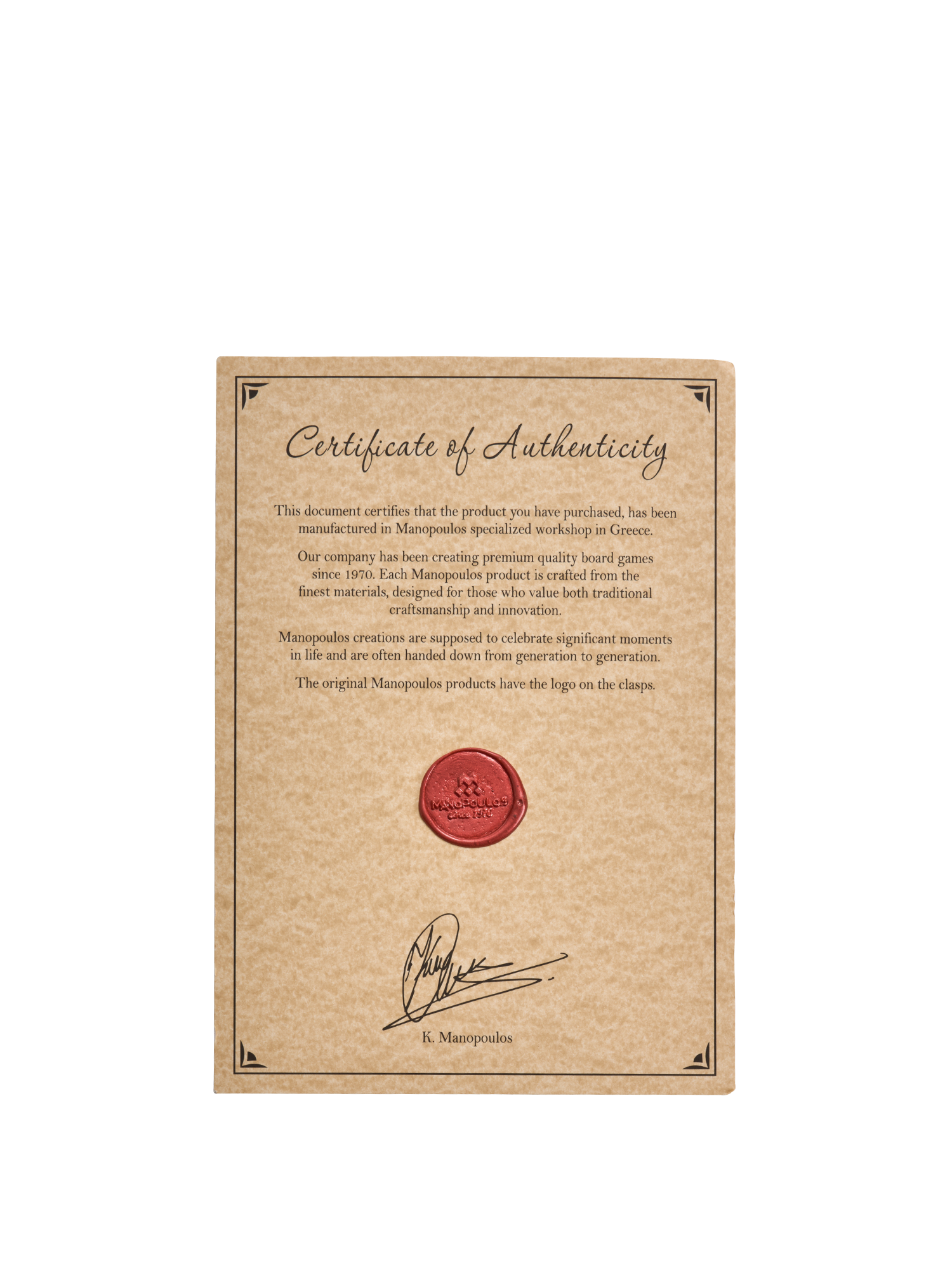 Le backgammon compte parmi les plus anciens jeux de plateau au monde. Cette version moderne, fabriquée à la main dans une manufacture grecque, utilise des matériaux naturels de haute qualité.