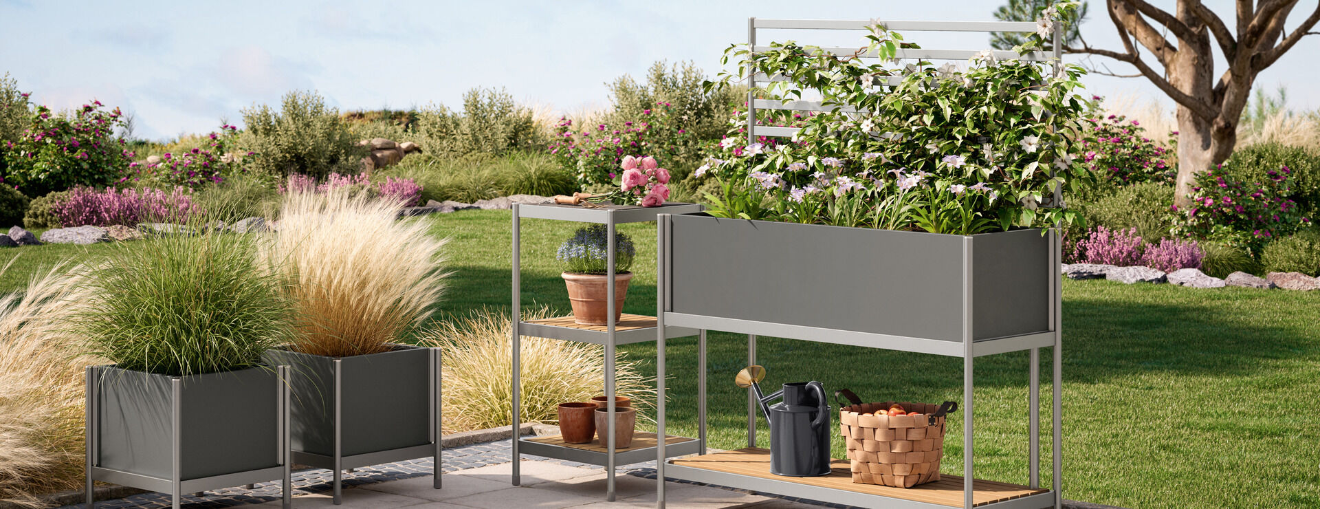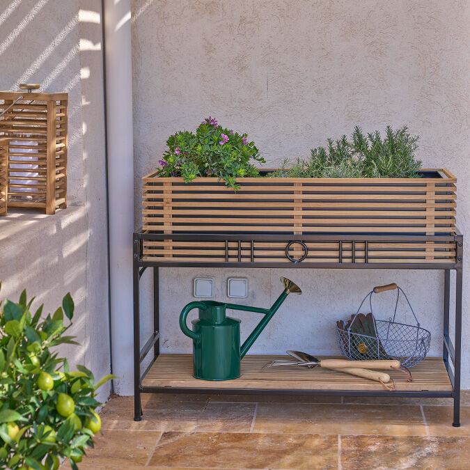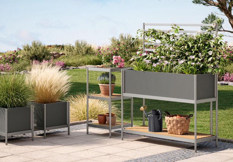 Staunässe verhindert ein integrierter Abfluss, auf dem Regalboden aus Teak finden Töpfe, Gartenwerkzeuge oder Giesskanne Platz. Unter Inspirationen haben wir einige Hinweise zu Standort, Drainage und Bepflanzung für Sie zusammengestellt. Weitere Informationen finden Sie direkt beim Produkt.