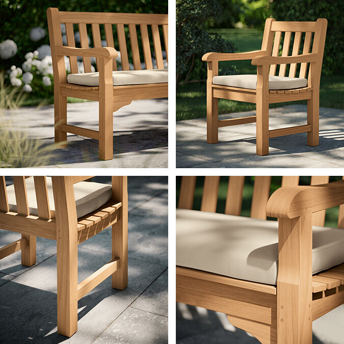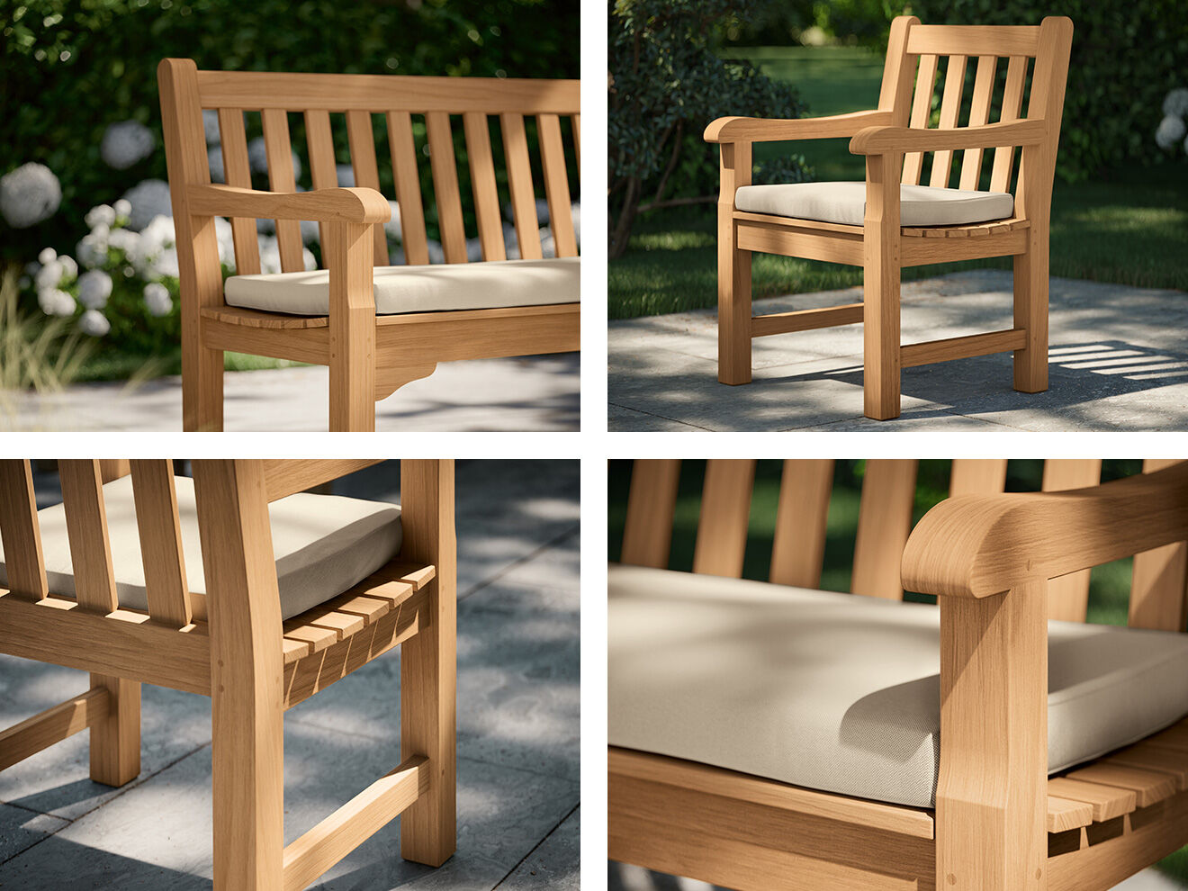 Ob Buchsbaum oder Bauerngarten, Landhauskulisse oder moderne Architektur – Summerfield Möbel gestalten jedes Umfeld mit, ohne es zu dominieren. Garpa hat den klassisch englischen Charakter mit spürbarem Komfort veredelt. Sitz- und Rückenlehnen der Stühle und Bänke passen sich vollkommen den Körperlinien an, gerundete Armlehnen schmeicheln den Händen. Das von Natur aus langlebige Material und meisterliche Handwerkskunst erweisen einer grossen Tradition gebührende Reverenz.