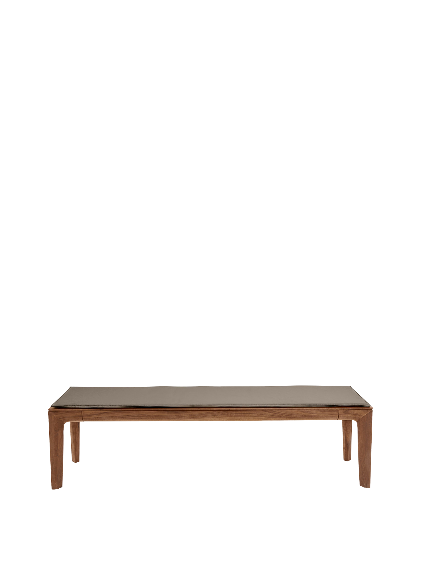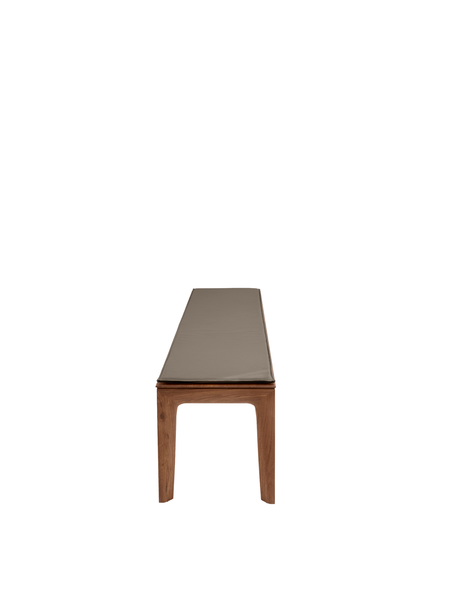 Die graubraune Lederauflage polstert die geradlinige Tavo Massivholzbank. In die Sitzfläche der Bank und die zugehörige Auflage sind Magnete eingelassen, die ein Verrutschen verhindern.