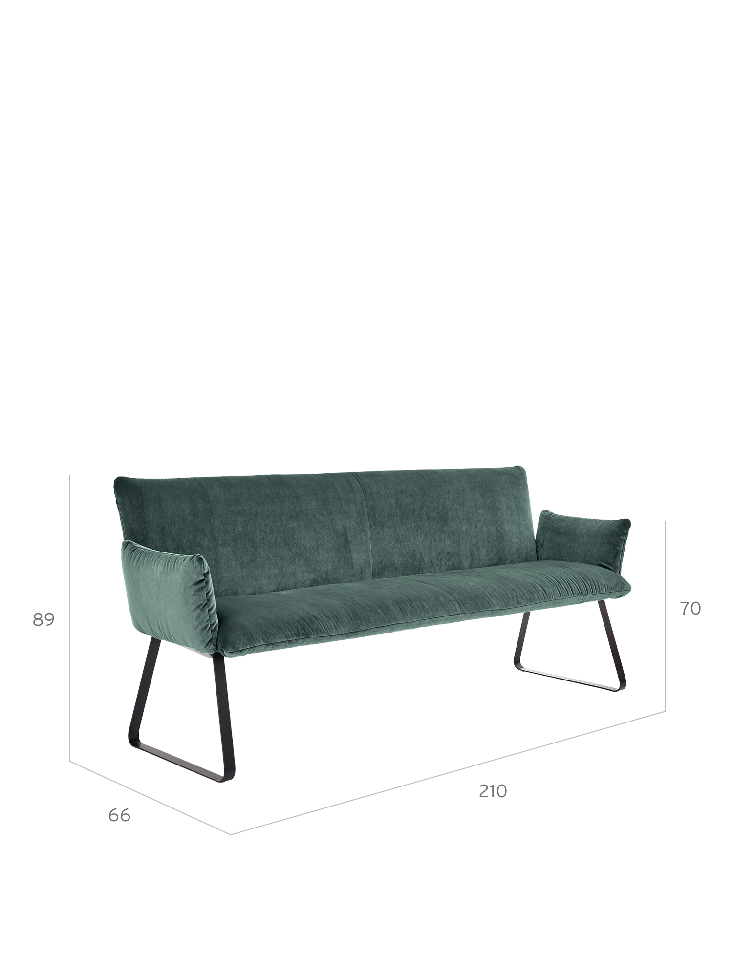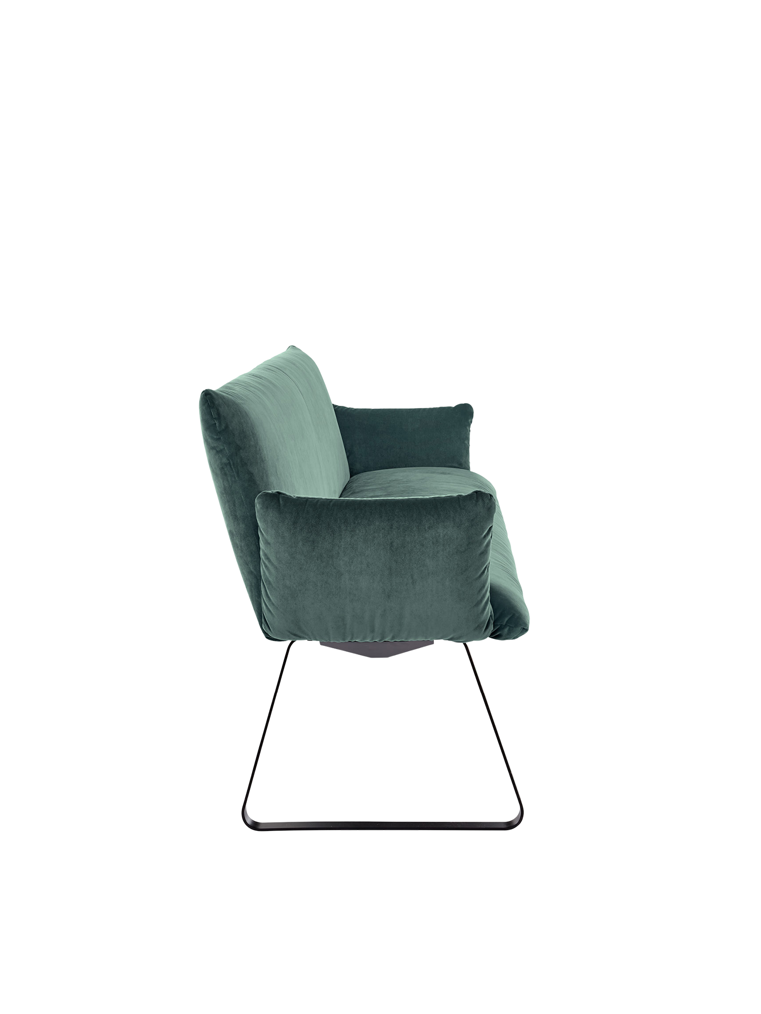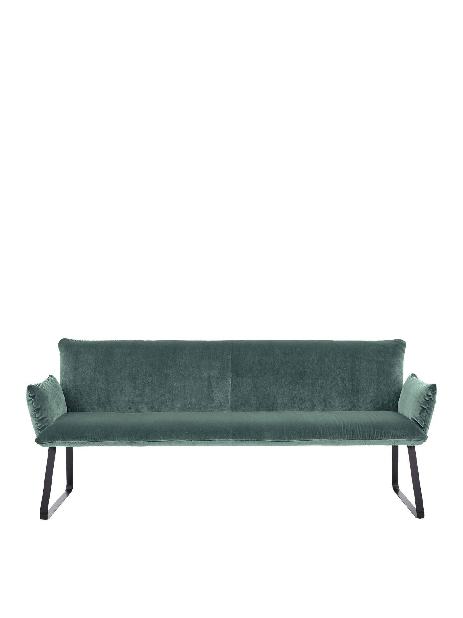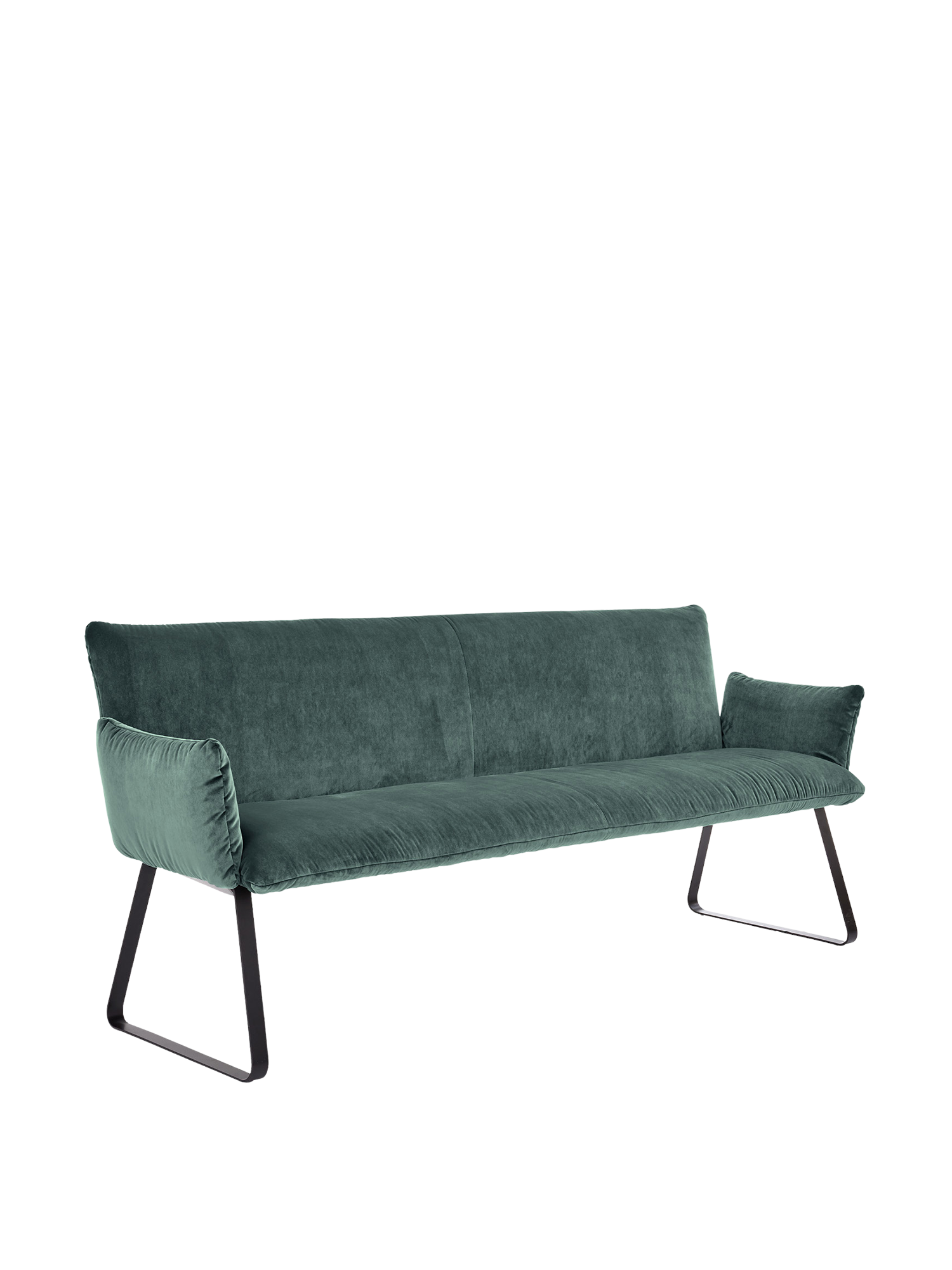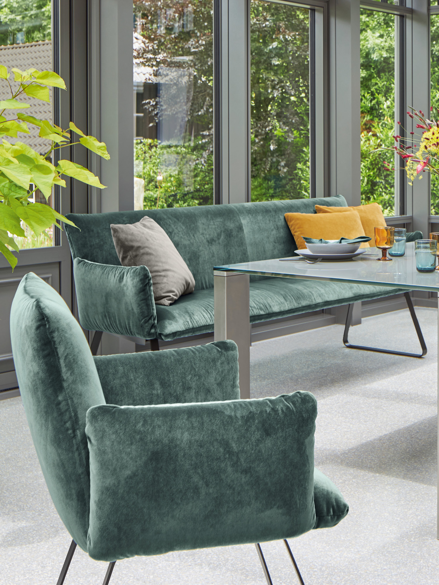 Die Mandø Armlehnstühle und Bänke machen nicht nur bei Tisch eine gute Figur. Schlanke Sitz-, Arm- und Rückenpolster unterstreichen den Eindruck zeitloser Eleganz und legerer Behaglichkeit. Im matten Schwarz des Metallgestells finden die leuchtenden Farben der Samtbezüge eine neutrale Basis. Für höchsten Komfort sorgen die perfekt geformten Rückenlehnen.