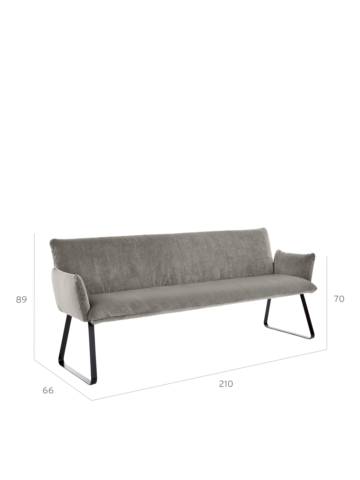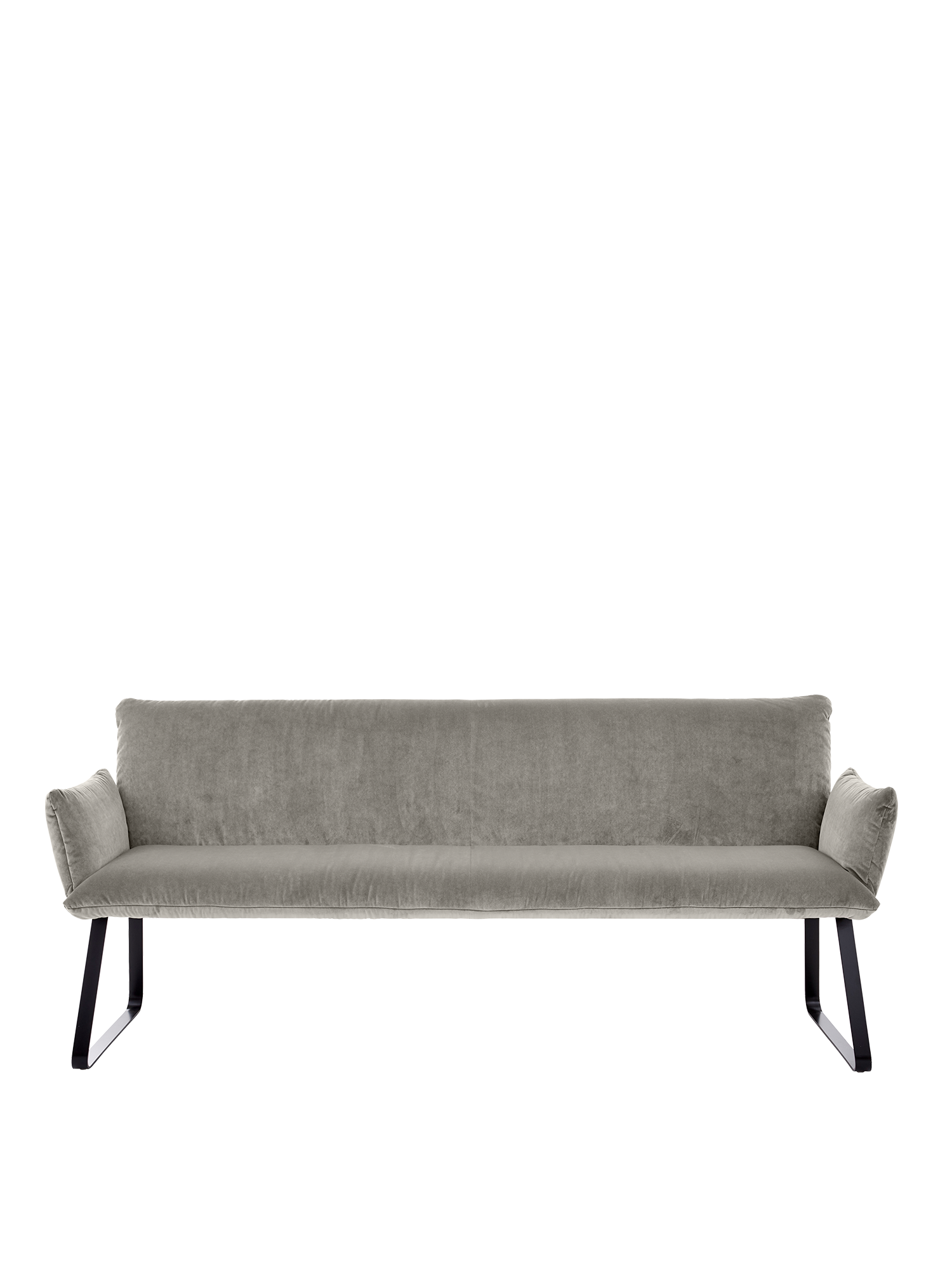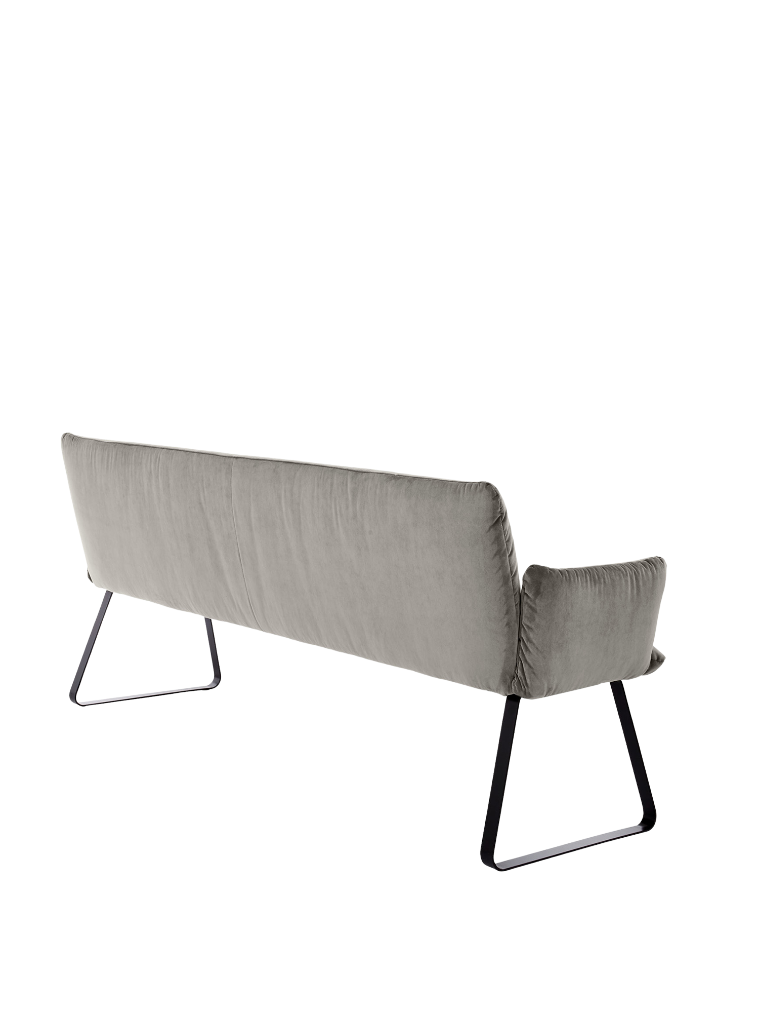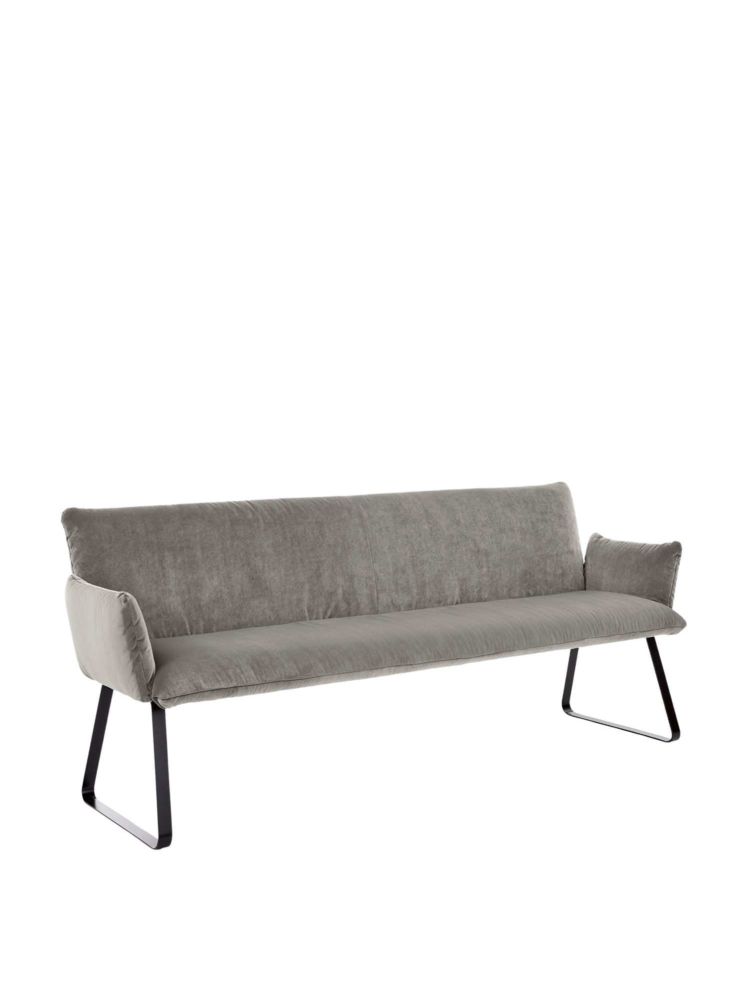 Die Mandø Armlehnstühle und Bänke machen nicht nur bei Tisch eine gute Figur. Schlanke Sitz-, Arm- und Rückenpolster unterstreichen den Eindruck zeitloser Eleganz und legerer Behaglichkeit. Im matten Schwarz des Metallgestells finden die leuchtenden Farben der Samtbezüge eine neutrale Basis. Für höchsten Komfort sorgen die perfekt geformten Rückenlehnen.