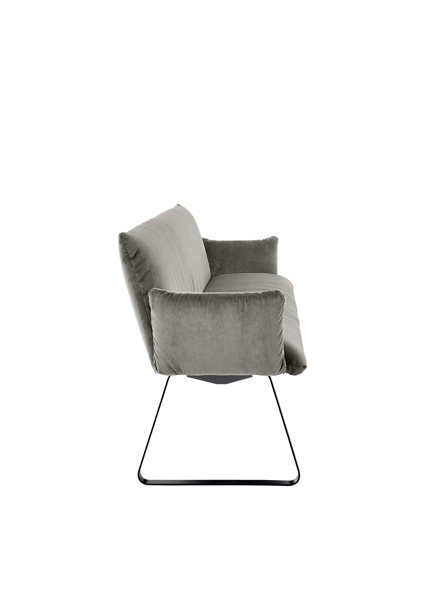 Ausgefeiltes Handwerk, vollendete Farb- und Formgebung, handverlesene Materialien und zeitgemässe Bequemlichkeit – die aussergewöhnlichen Qualitäten der minimalistischen Mandø Sitzmöbel sind in jedem Detail sicht- und spürbar. Ihr samtiger Polsterstoff aus Polyester ist pflegeleicht, die geschwungenen Kufen aus Metall sind mattschwarz pulverbeschichtet. In Kooperation mit Garpa werden die Möbel von den Meistern der Bielefelder Werkstätten in klassischer Manufakturarbeit gefertigt. Eines so perfekt wie das andere und jedes ein Unikat.