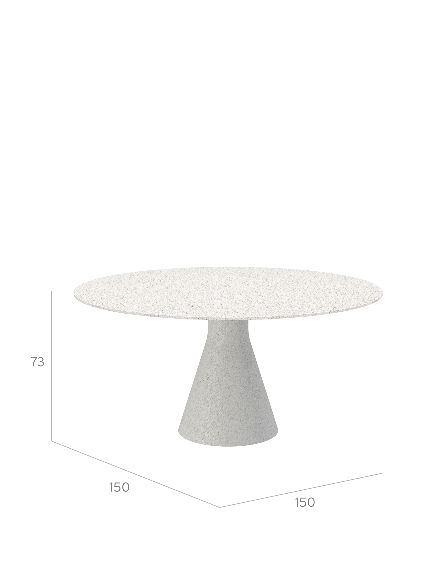 Der Namur Tisch mit einem konisch geformten Mittelfuss lässt angenehme Beinfreiheit für kleinere und grössere Runden. Gesprächsthema dürfte auch das skulpturale Design des Tisches sein. Gastgeber und Gäste behalten sich stets im Blick und geniessen die Gesellschaft – bei gekühlten Getränken oder beim Nachmittagskaffee, beim Snack zwischendurch oder beim exquisiten Abendessen.