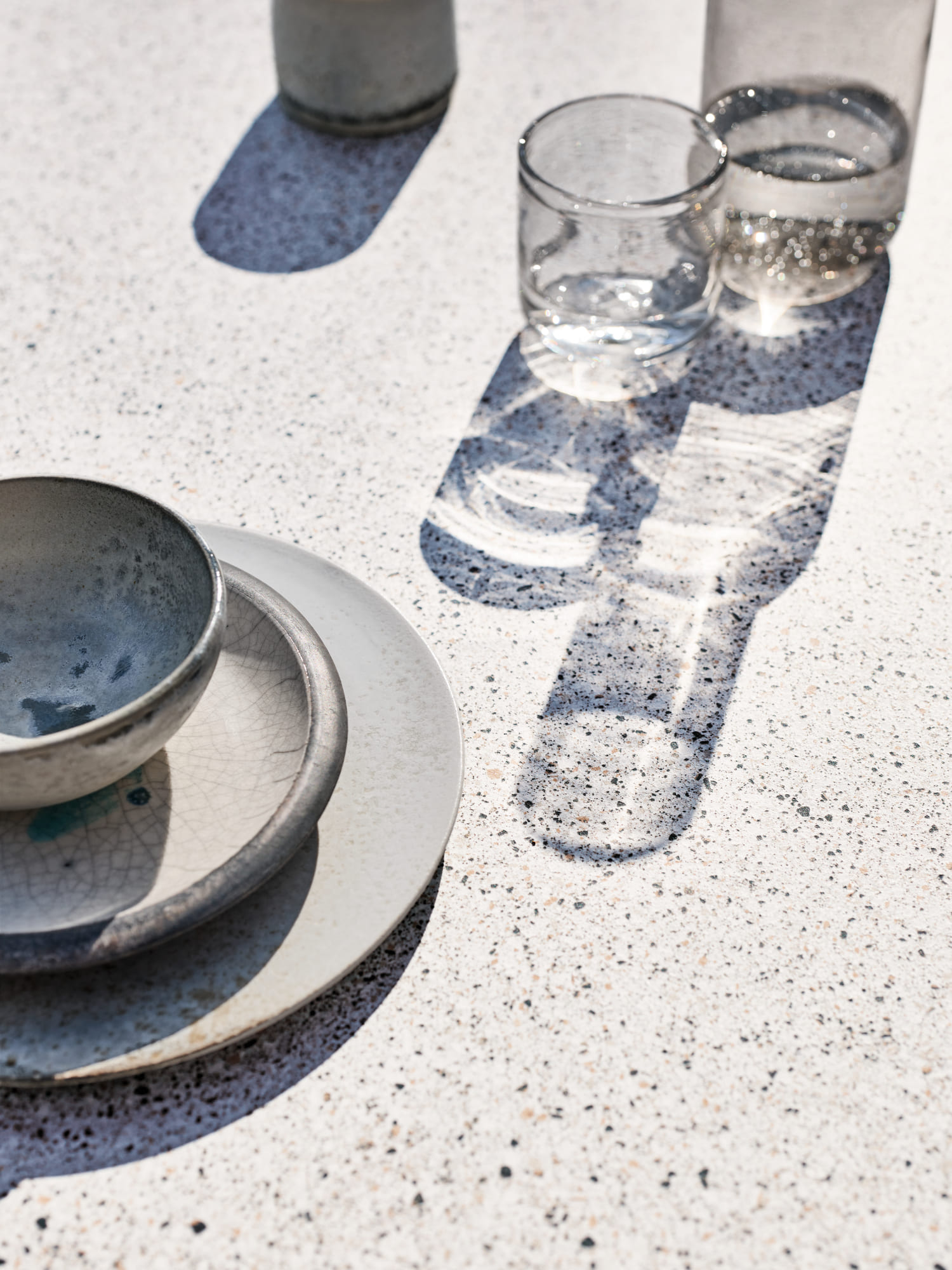 Die erlesene Materialkombination – ein Mittelfuss aus Leichtbeton trifft auf eine Keramikplatte mit Terrazzo-Mosaik – eröffnet erstaunlichen Gestaltungsspielraum. So harmonieren zahlreiche Stühle aus dem Garpa Sortiment mit dem Namur Mittelfusstisch, z. B. aus den modern anmutenden Kollektionen Derry, Temper und Pan. Auch echte Klassiker wie die Bolero Freischwinger passen hervorragend zum Namur Mittelfusstisch.