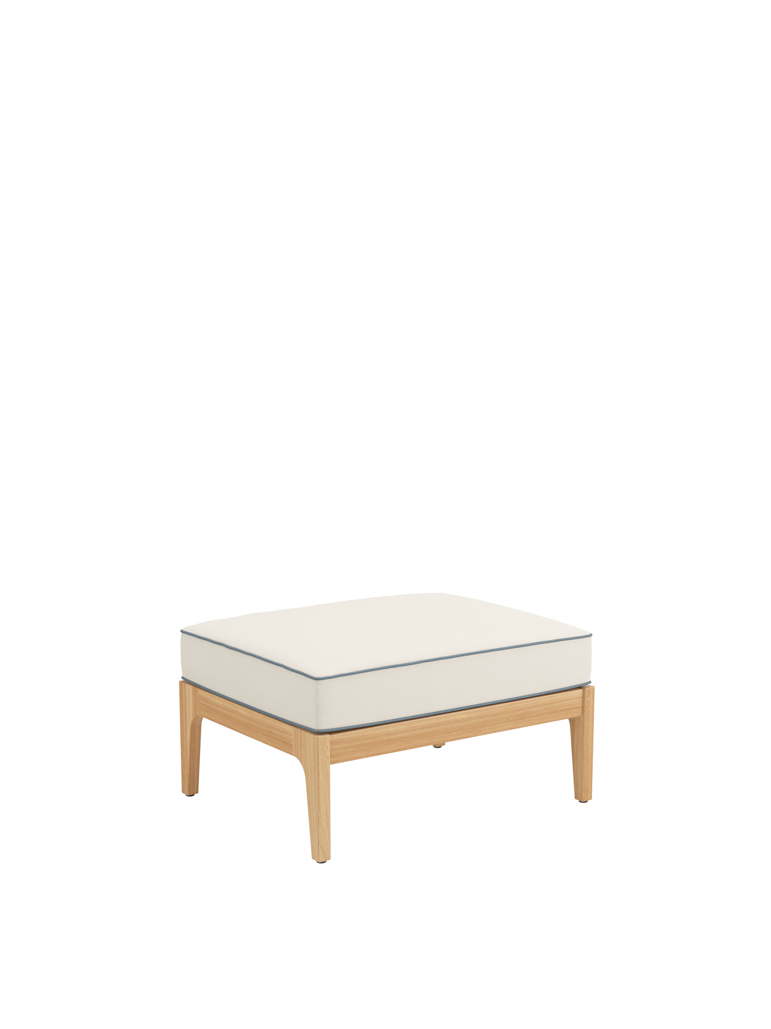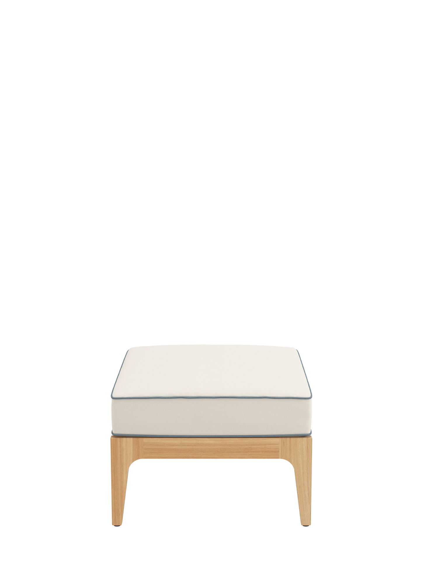 In die grosszügigen Polstermöbel im Loungeformat zieht man sich gerne zurück. Ihre Rahmen sind aus hochwertigem Plantagenteakholz gefertigt, die Sitzflächen mit einem Gewebe bespannt, das die komfortablen Polster sicher trägt. Als markantes Merkmal verleihen aufwendig verarbeitete Keder dem klassischen Refugium seine maritime Anmutung. Alle Kissen sind farbig umrandet.
